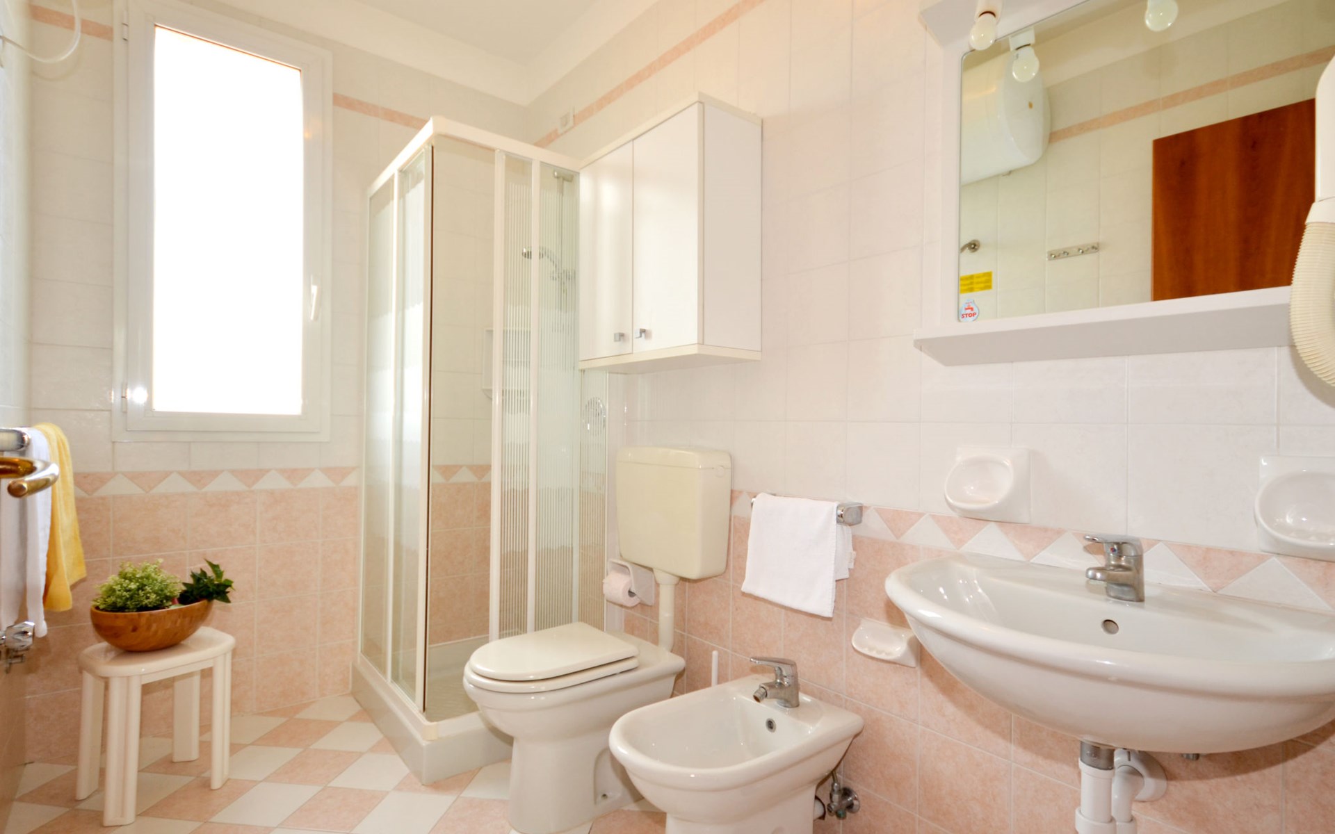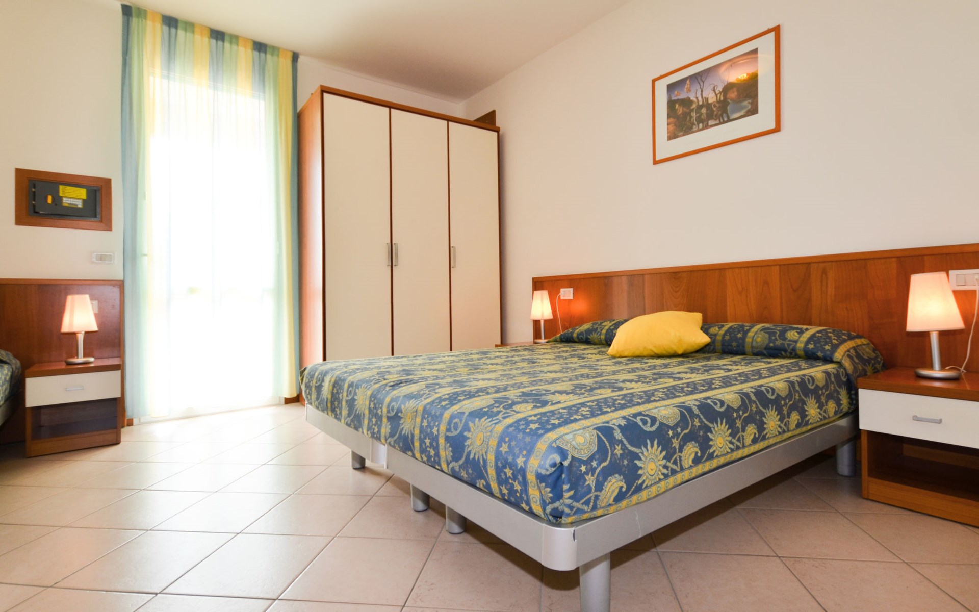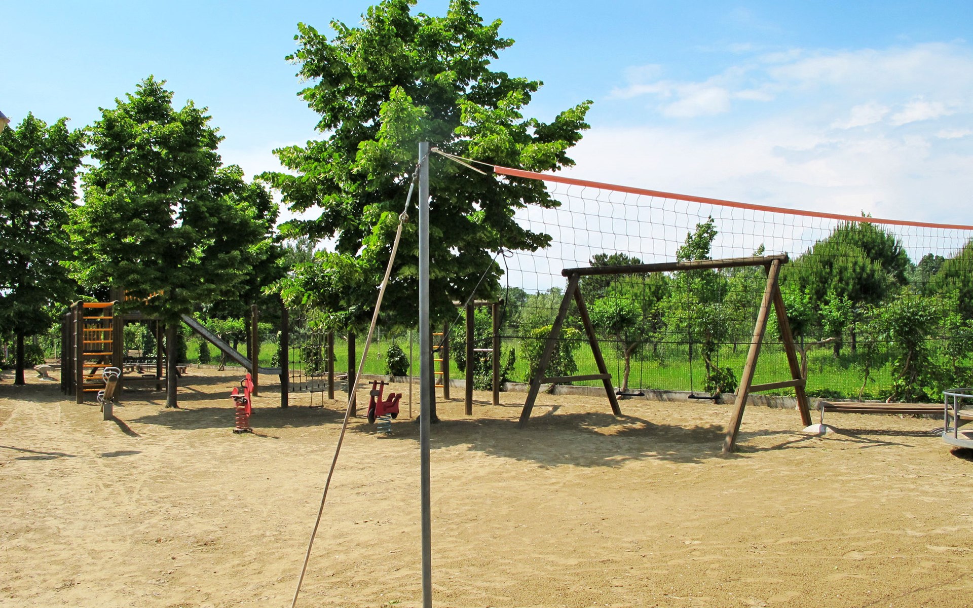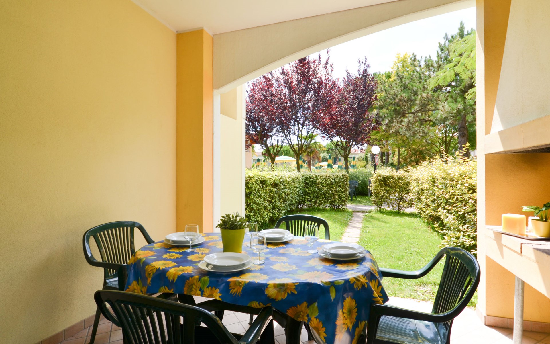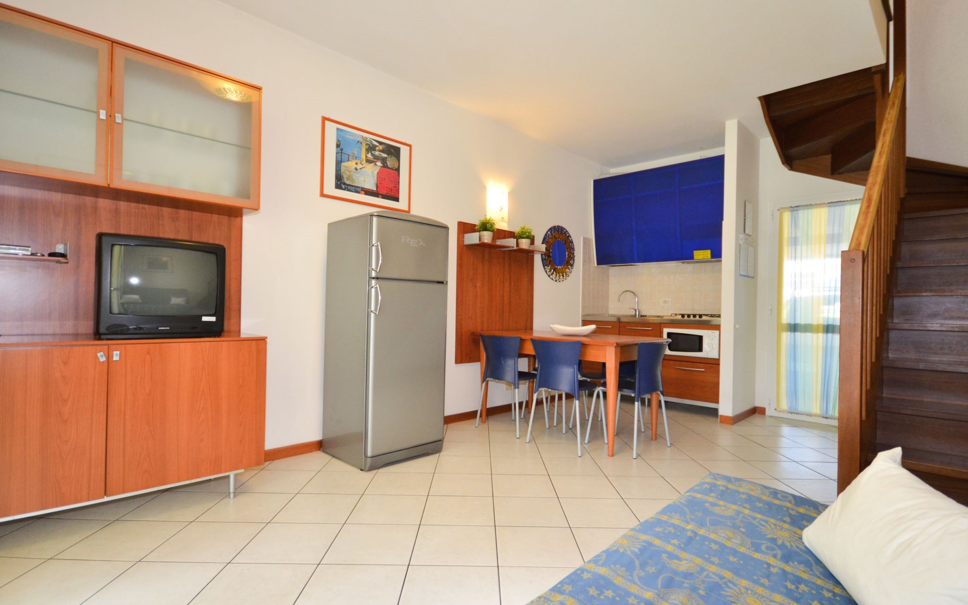 Grosse, kinderfreundliche Ferienanlage "Villaggio Marco Polo". 100 Häuser in der Residenz. Im Ortsteil Bibione-Spiaggia, 800 m vom Zentrum von Bibione, 13 km vom Zentrum von Lignano, 100 km vom Zentrum von Venezia, 650 m vom Meer. Zur Mitbenutzung: Grundstück 3 ha (eingezäunt), gepflegter Garten mit Rasen und Bäumen, 2 Schwimmbäder (25 x 12 m, 100 m2, saisonale Verfügbarkeit: 10.Mai. - 27.Sep.). Kinderbecken, Aussendusche, Beachvolleyball, Kinderspielplatz. In der Anlage: Bar, Wireless LAN, Waschmaschine, Wäschetrockner (zur Mitbenutzung, extra), Fahrradverleih. Parkplatz beim Haus auf dem Grundstück, Gemeinschaftsgarage. Lebensmittelgeschäft 800 m, Bushaltestelle 400 m, Bahnstation "Latisana (Milano-Venezia-Triest)" 21 km, Sandstrand 650 m, Thermalbad "Bibione Thermae" 650 m. Golfplatz (18 Loch) 9 km. Nahe gelegene Sehenswürdigkeiten: Oasi Naturalistica Val Grande - Bibione. Bitte beachten: Kinderbetreuung in der Saison (inkl.). Der Besitzer akzeptiert keine Gruppen. Strandservice: Von ca. Anfang Mai bis ca. Ende September sind jeweils 1 Liegestuhl, 1 Sonnenliege und 1 Sonnenschirm pro Wohnung im Mietpreis enthalten. Shuttleservice: Von ca. 23.05.-11.09. kostenloser Shuttlebus zum Strandabschnitt 'Un Nuovo Posto al Sole' bei den Thermen (täglich im 30-Minuten-Rhythmus, von 8-19 h). Bar geöffnet von ca. 23.05.-18.09.