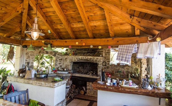 Im Außenbereich steht den Gästen eine große, traditionell eingerichtete Sommerküche zur Verfügung, die alles bietet, was für die Zubereitung von Mahlzeiten benötigt wird, einschließlich Grill und Herd. Das Highlight des Außenbereichs ist zweifelsohne der Balkon, der mit einem Tisch und zwei Stühlen ausgestattet ist. Er ist der ideale Ort, um sich zu entspannen und den Blick auf den umliegenden Kiefernwald zu genießen und bietet eine wirklich ruhige Kulisse für Ihren Aufenthalt.