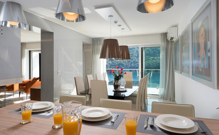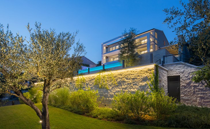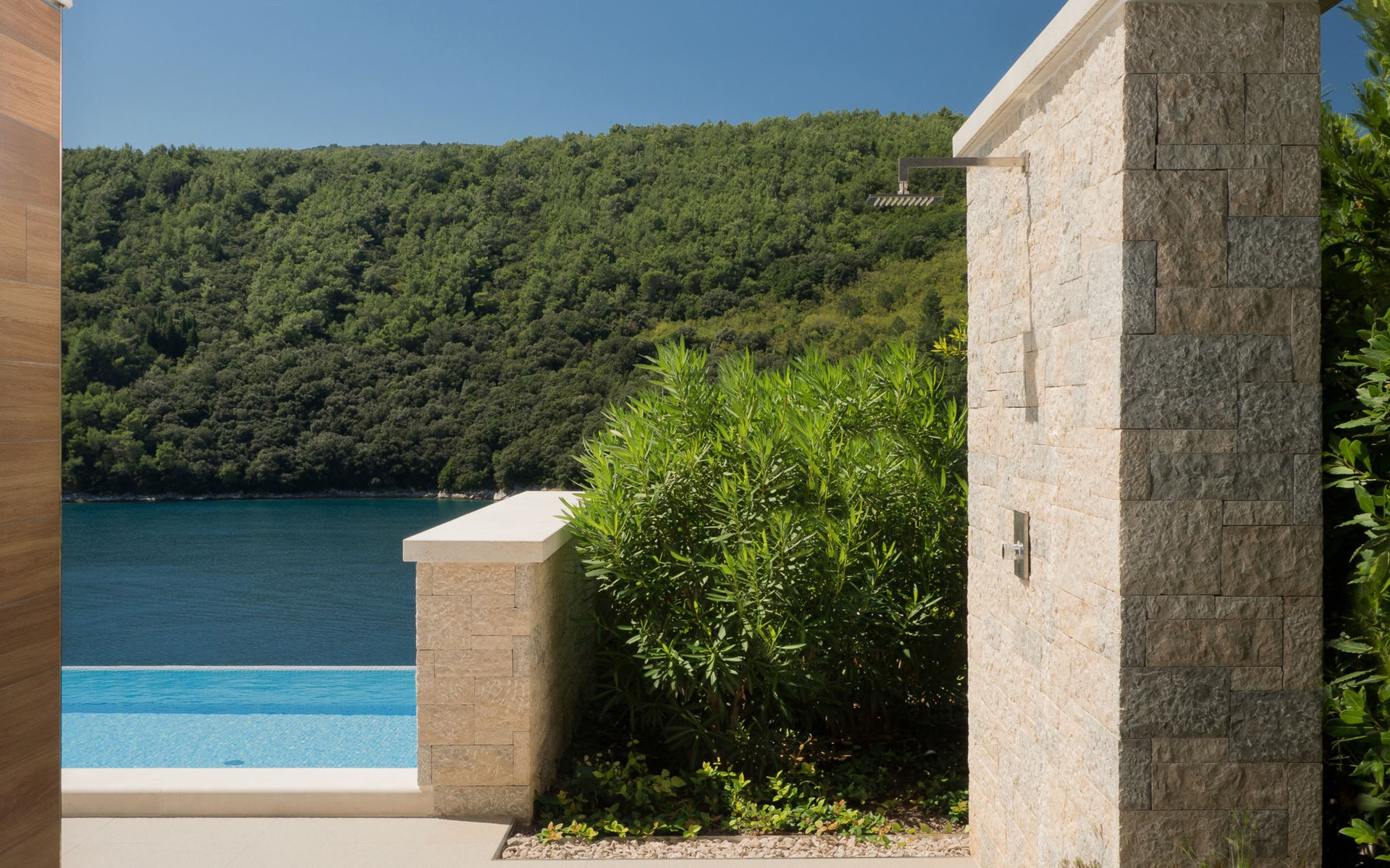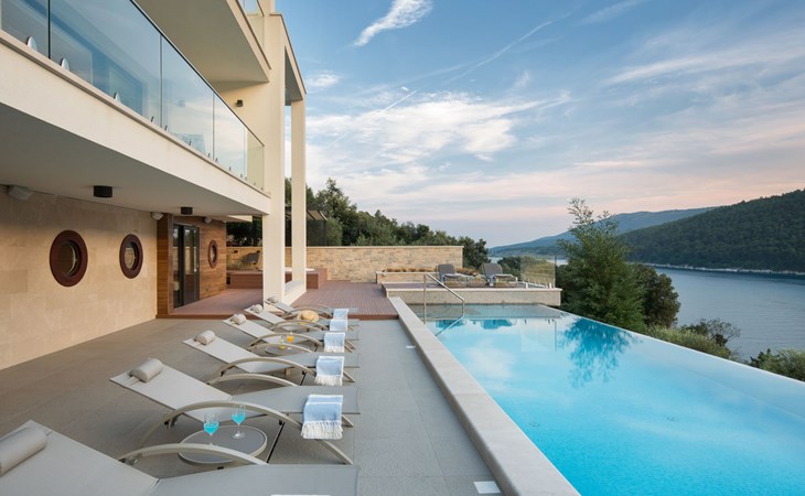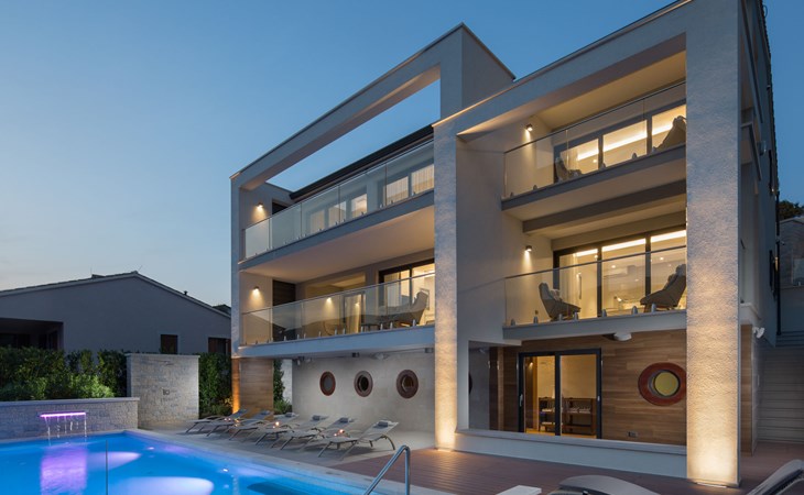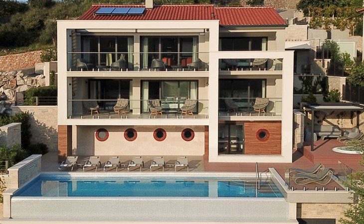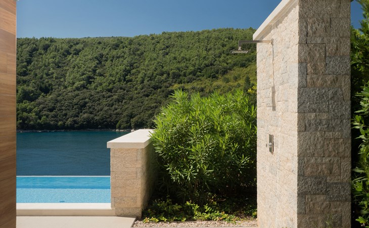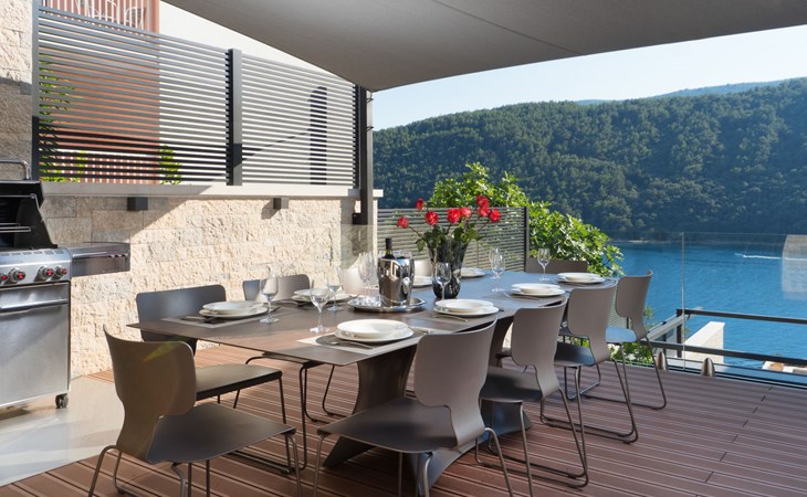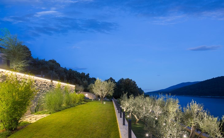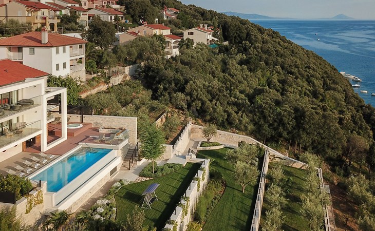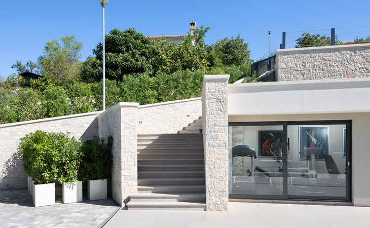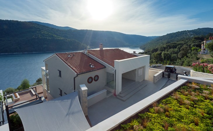 Prtlog (Duga Luka) 5 km von Labin: Moderne, luxuriöse Villa "Vlastelini II", auf 2 Stockwerken, Baujahr 2018. Ruhige, sonnige Lage, 30 m vom Meer, 30 m vom Strand, direkter Zugang zum Strand. Zur Alleinbenutzung: Grundstück 2'500 m2 (eingezäunt), schöner, gepflegter Garten Pflanzen und Bäumen, Schwimmbad eckig, beheizt (12 x 4 m, 50 m2, 140 cm tief, saisonale Verfügbarkeit: 21.Mar. - 31.Okt.) mit Innentreppe. WC im Poolbereich, Aussendusche, Sprudelbad, Terrasse (25 m2), Gartenmöbel. Im Hause: Internetzugang, Sauna, Fitnessraum, Billard, Zentralheizung, Alarmanlage, Waschmaschine, Wäschetrockner. Koch möglich (extra). Parkplatz (für 4 Autos) beim Haus auf dem Grundstück. E-Ladestation. Supermarkt 5 km, Restaurant 5 km, Bushaltestelle 5.2 km, Kieselstrand, Felsstrand 30 m. Wanderwege ab Haus 100 m, Radweg 150 m. Bitte beachten: Jugendgruppen nur auf Anfrage. Private Bootsanlegestelle, auf Anfrage. Schwimmbad mit Gegenstromanlage und mit Wasserfall. Schwimmbad beheizt (extra). Es ist notwendig 7 Tage im Voraus bekannt zu geben, ob die Schwimmbadheizung eingeschaltet werden soll. Von Gruppen junger Leute wird ein doppeltes Pfand verlangt bei der Ankunft. Massage (extra) auf Anfrage.