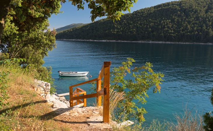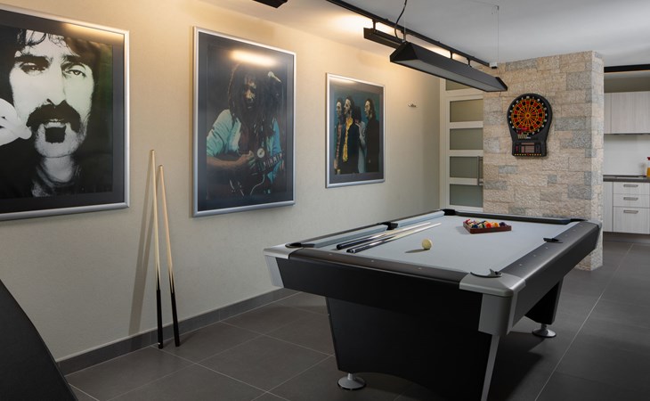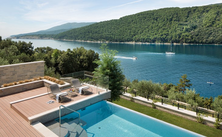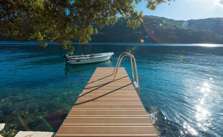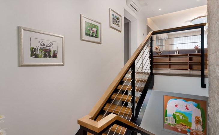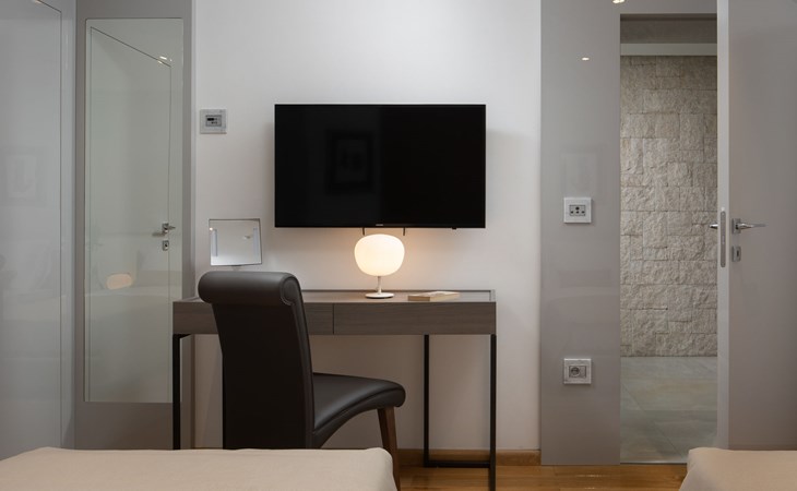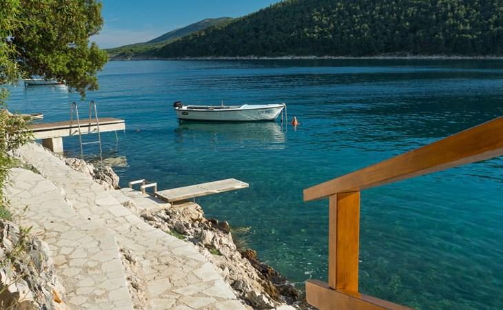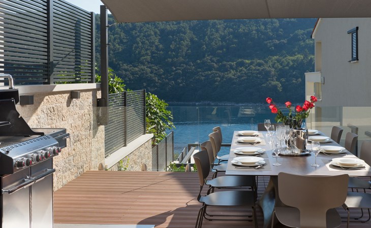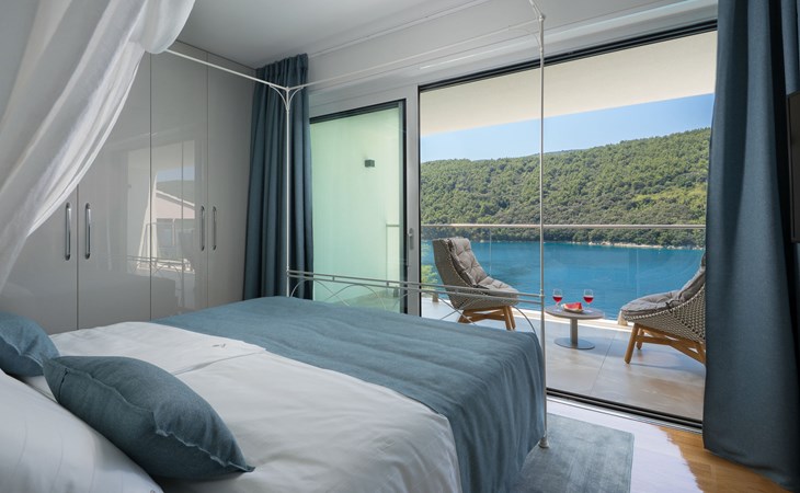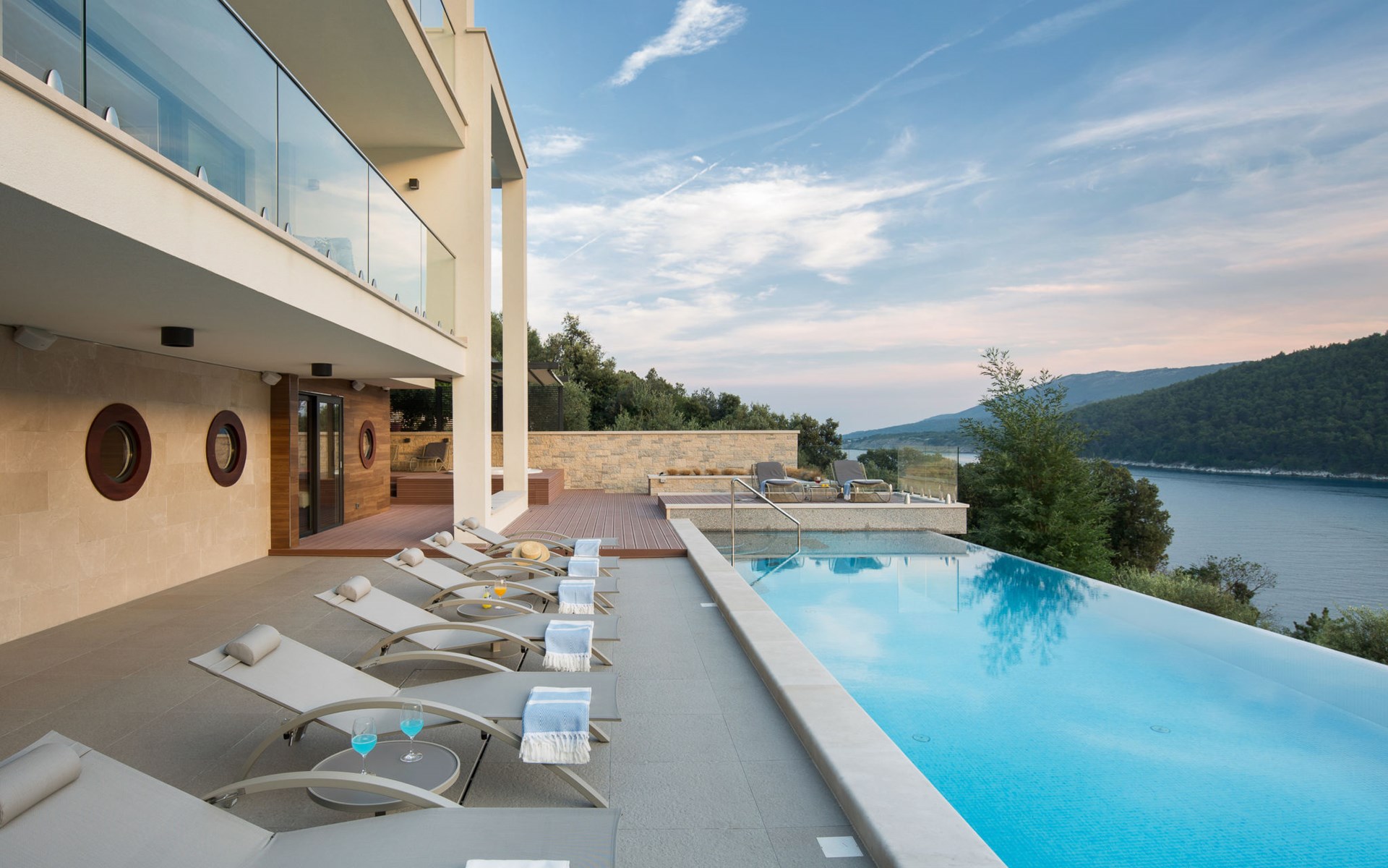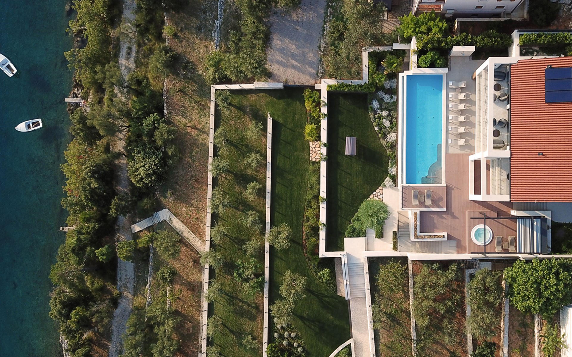 Prtlog (Duga Luka) 5 km von Labin: Moderne, luxuriöse Villa "Vlastelini II", auf 2 Stockwerken, Baujahr 2018. Ruhige, sonnige Lage, 30 m vom Meer, 30 m vom Strand, direkter Zugang zum Strand. Zur Alleinbenutzung: Grundstück 2'500 m2 (eingezäunt), schöner, gepflegter Garten Pflanzen und Bäumen, Schwimmbad eckig, beheizt (12 x 4 m, 50 m2, 140 cm tief, saisonale Verfügbarkeit: 21.Mar. - 31.Okt.) mit Innentreppe. WC im Poolbereich, Aussendusche, Sprudelbad, Terrasse (25 m2), Gartenmöbel. Im Hause: Internetzugang, Sauna, Fitnessraum, Billard, Zentralheizung, Alarmanlage, Waschmaschine, Wäschetrockner. Koch möglich (extra). Parkplatz (für 4 Autos) beim Haus auf dem Grundstück. E-Ladestation. Supermarkt 5 km, Restaurant 5 km, Bushaltestelle 5.2 km, Kieselstrand, Felsstrand 30 m. Wanderwege ab Haus 100 m, Radweg 150 m. Bitte beachten: Jugendgruppen nur auf Anfrage. Private Bootsanlegestelle, auf Anfrage. Schwimmbad mit Gegenstromanlage und mit Wasserfall. Schwimmbad beheizt (extra). Es ist notwendig 7 Tage im Voraus bekannt zu geben, ob die Schwimmbadheizung eingeschaltet werden soll. Von Gruppen junger Leute wird ein doppeltes Pfand verlangt bei der Ankunft. Massage (extra) auf Anfrage.