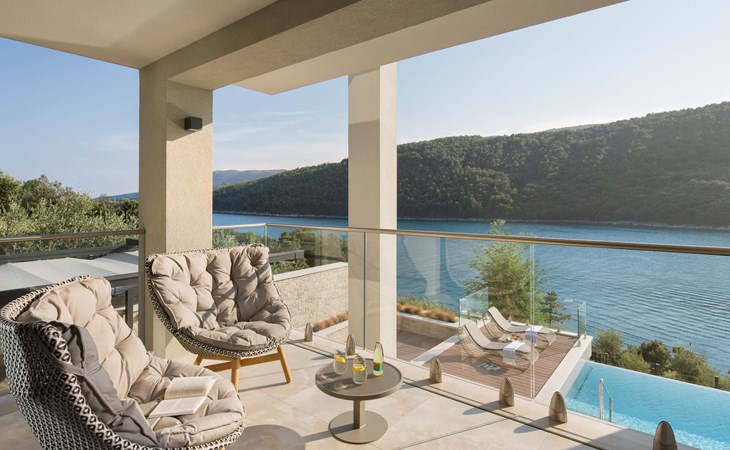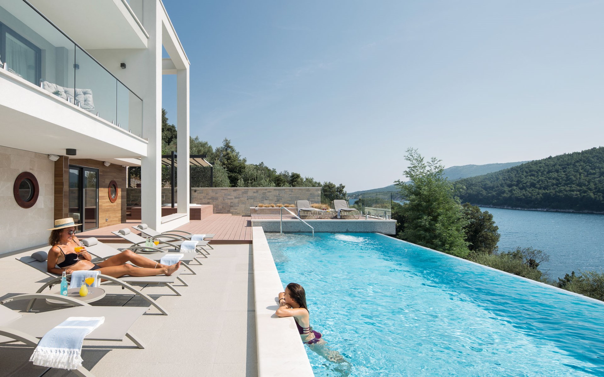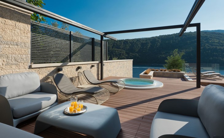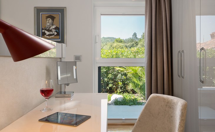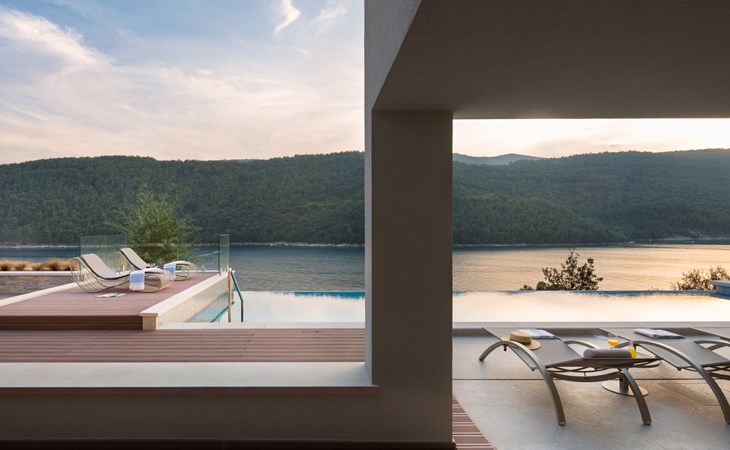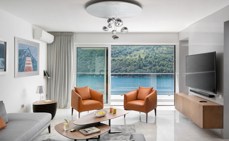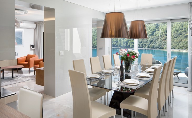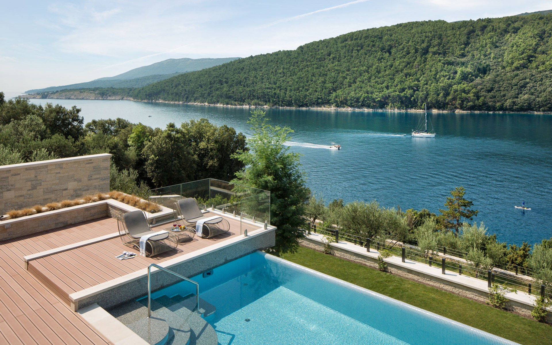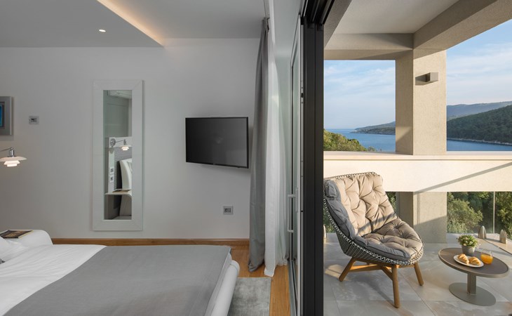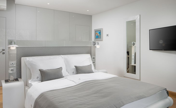 Prtlog (Duga Luka) 5 km von Labin: Moderne, luxuriöse Villa "Vlastelini II", auf 2 Stockwerken, Baujahr 2018. Ruhige, sonnige Lage, 30 m vom Meer, 30 m vom Strand, direkter Zugang zum Strand. Zur Alleinbenutzung: Grundstück 2'500 m2 (eingezäunt), schöner, gepflegter Garten Pflanzen und Bäumen, Schwimmbad eckig, beheizt (12 x 4 m, 50 m2, 140 cm tief, saisonale Verfügbarkeit: 21.Mar. - 31.Okt.) mit Innentreppe. WC im Poolbereich, Aussendusche, Sprudelbad, Terrasse (25 m2), Gartenmöbel. Im Hause: Internetzugang, Sauna, Fitnessraum, Billard, Zentralheizung, Alarmanlage, Waschmaschine, Wäschetrockner. Koch möglich (extra). Parkplatz (für 4 Autos) beim Haus auf dem Grundstück. E-Ladestation. Supermarkt 5 km, Restaurant 5 km, Bushaltestelle 5.2 km, Kieselstrand, Felsstrand 30 m. Wanderwege ab Haus 100 m, Radweg 150 m. Bitte beachten: Jugendgruppen nur auf Anfrage. Private Bootsanlegestelle, auf Anfrage. Schwimmbad mit Gegenstromanlage und mit Wasserfall. Schwimmbad beheizt (extra). Es ist notwendig 7 Tage im Voraus bekannt zu geben, ob die Schwimmbadheizung eingeschaltet werden soll. Von Gruppen junger Leute wird ein doppeltes Pfand verlangt bei der Ankunft. Massage (extra) auf Anfrage.