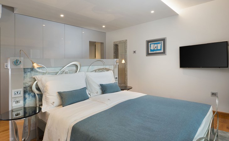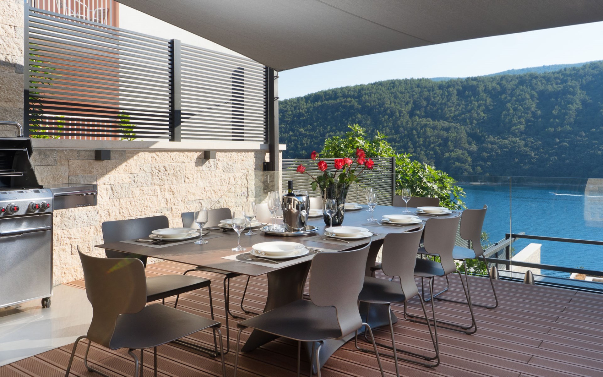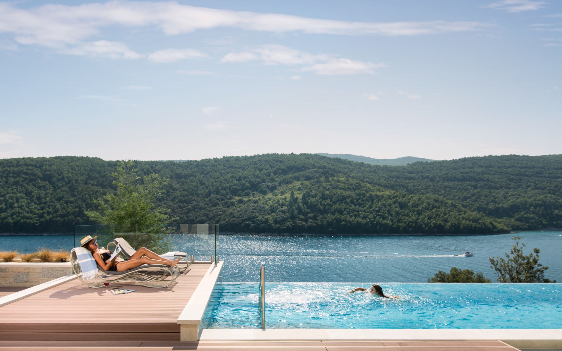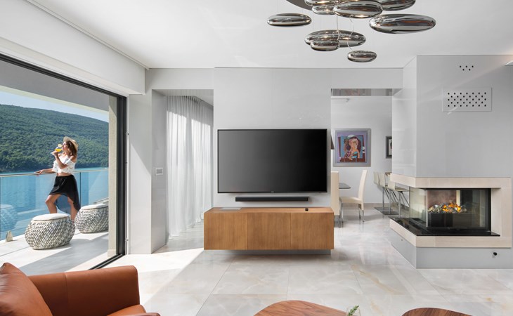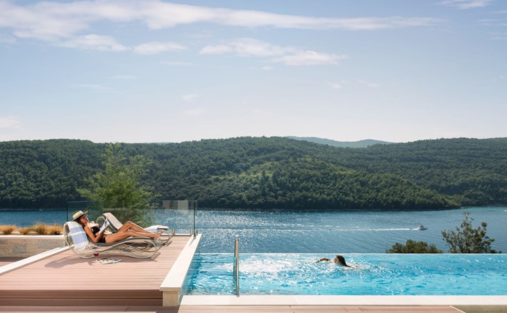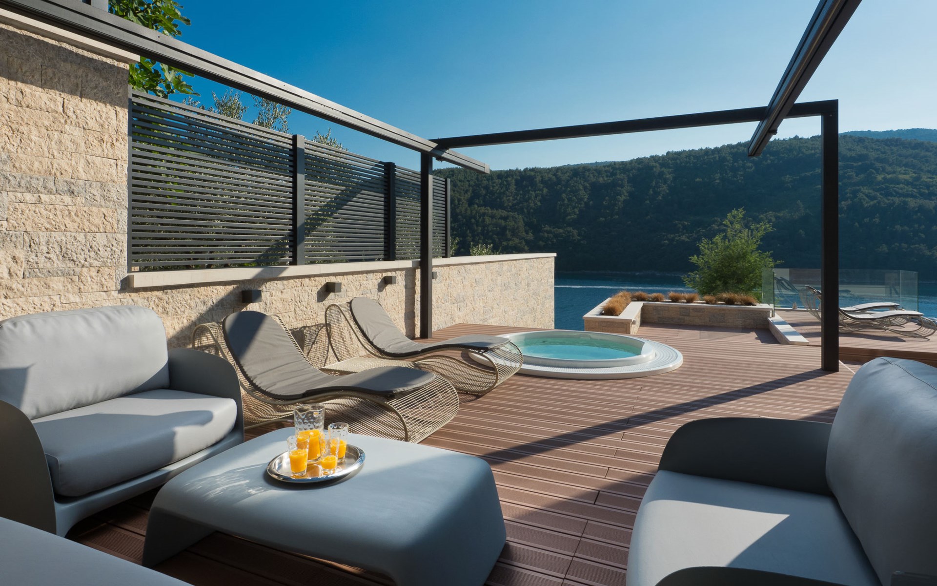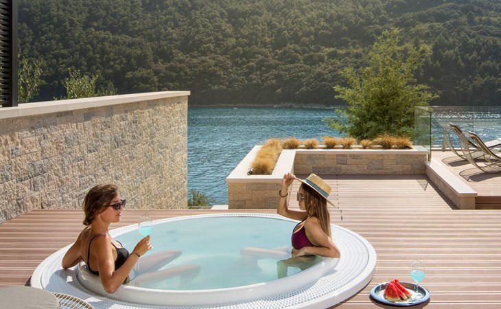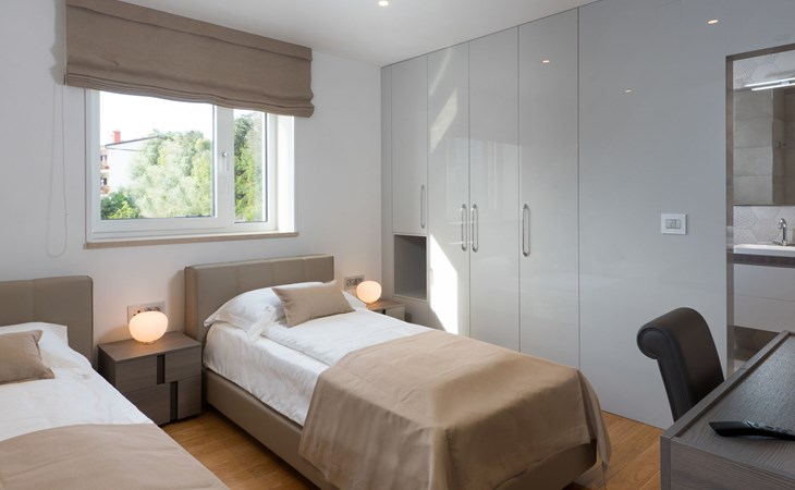 Prtlog (Duga Luka) 5 km von Labin: Moderne, luxuriöse Villa "Vlastelini II", auf 2 Stockwerken, Baujahr 2018. Ruhige, sonnige Lage, 30 m vom Meer, 30 m vom Strand, direkter Zugang zum Strand. Zur Alleinbenutzung: Grundstück 2'500 m2 (eingezäunt), schöner, gepflegter Garten Pflanzen und Bäumen, Schwimmbad eckig, beheizt (12 x 4 m, 50 m2, 140 cm tief, saisonale Verfügbarkeit: 21.Mar. - 31.Okt.) mit Innentreppe. WC im Poolbereich, Aussendusche, Sprudelbad, Terrasse (25 m2), Gartenmöbel. Im Hause: Internetzugang, Sauna, Fitnessraum, Billard, Zentralheizung, Alarmanlage, Waschmaschine, Wäschetrockner. Koch möglich (extra). Parkplatz (für 4 Autos) beim Haus auf dem Grundstück. E-Ladestation. Supermarkt 5 km, Restaurant 5 km, Bushaltestelle 5.2 km, Kieselstrand, Felsstrand 30 m. Wanderwege ab Haus 100 m, Radweg 150 m. Bitte beachten: Jugendgruppen nur auf Anfrage. Private Bootsanlegestelle, auf Anfrage. Schwimmbad mit Gegenstromanlage und mit Wasserfall. Schwimmbad beheizt (extra). Es ist notwendig 7 Tage im Voraus bekannt zu geben, ob die Schwimmbadheizung eingeschaltet werden soll. Von Gruppen junger Leute wird ein doppeltes Pfand verlangt bei der Ankunft. Massage (extra) auf Anfrage.