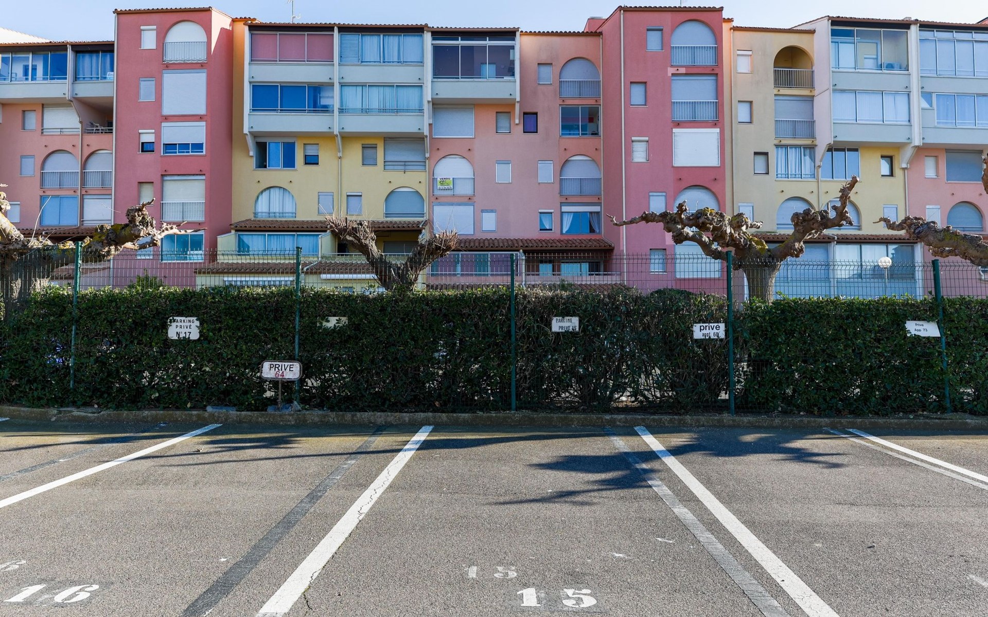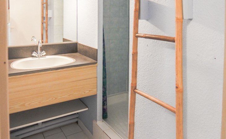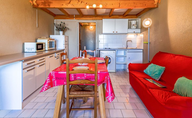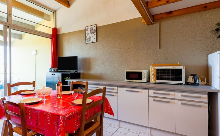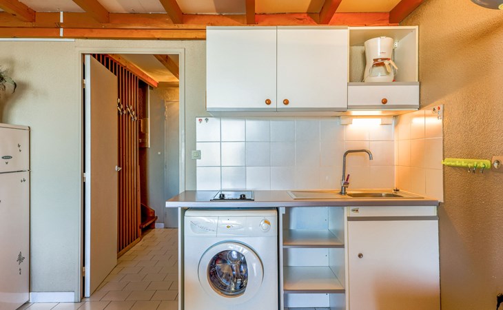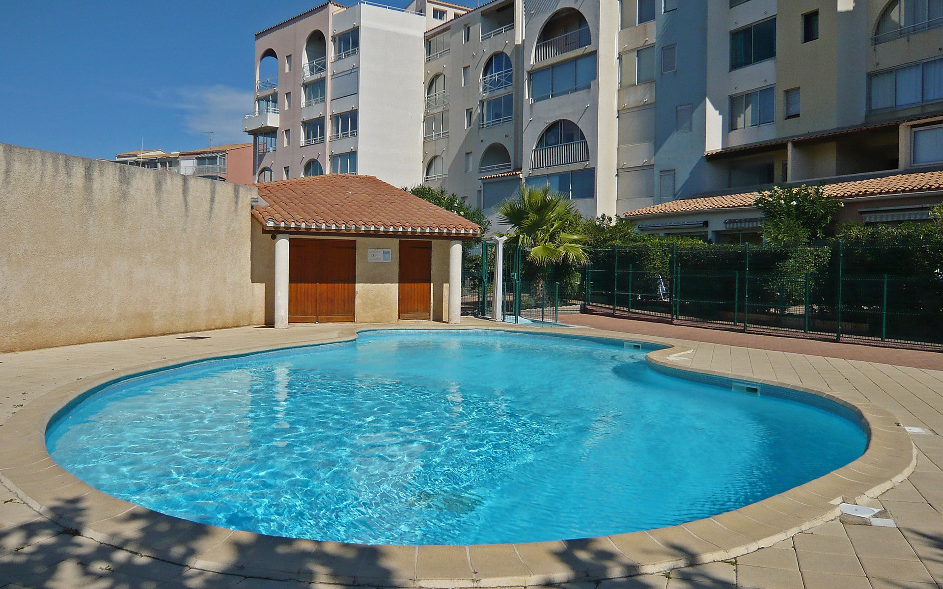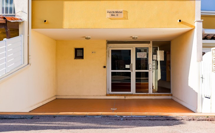 Residenz "Port Saint Michel". Im Ortsteil L'Avant Port, im Ort, 800 m vom Zentrum, 400 m vom Meer. Zur Mitbenutzung: Garten (eingezäunt), Schwimmbad (11 x 4 m, 100 - 180 cm tief, saisonale Verfügbarkeit: 11.Mai. - 15.Sep.). Im Hause: Fahrstuhl. Parkplatz auf dem Grundstück. Einkaufsgeschäft 400 m, Lebensmittelgeschäft 100 m, Restaurant, Bar 800 m, Bushaltestelle "Ile des Pêcheurs" 100 m, Sandstrand 800 m, Badebucht 400 m. Golfplatz (27 Loch) 3 km.