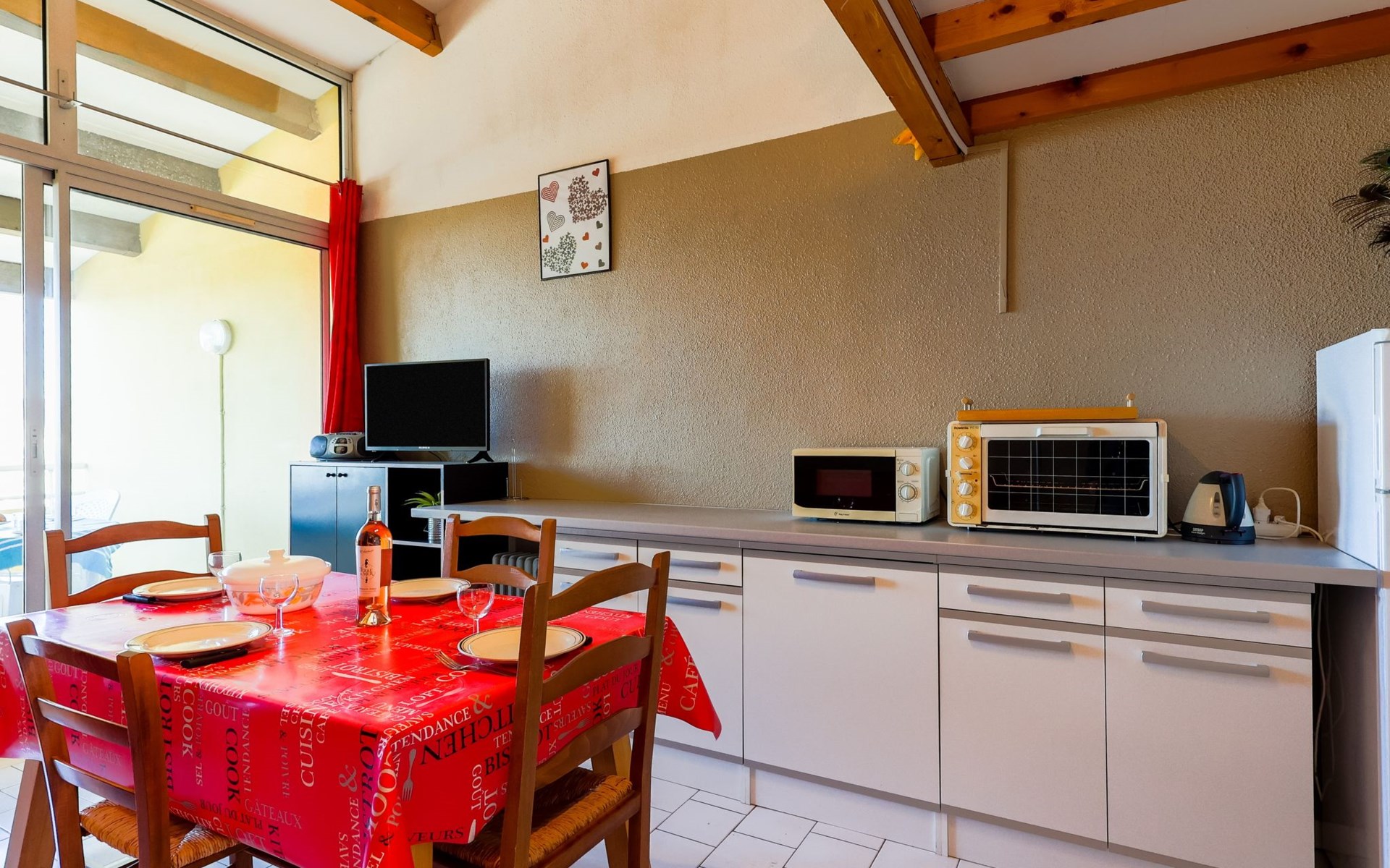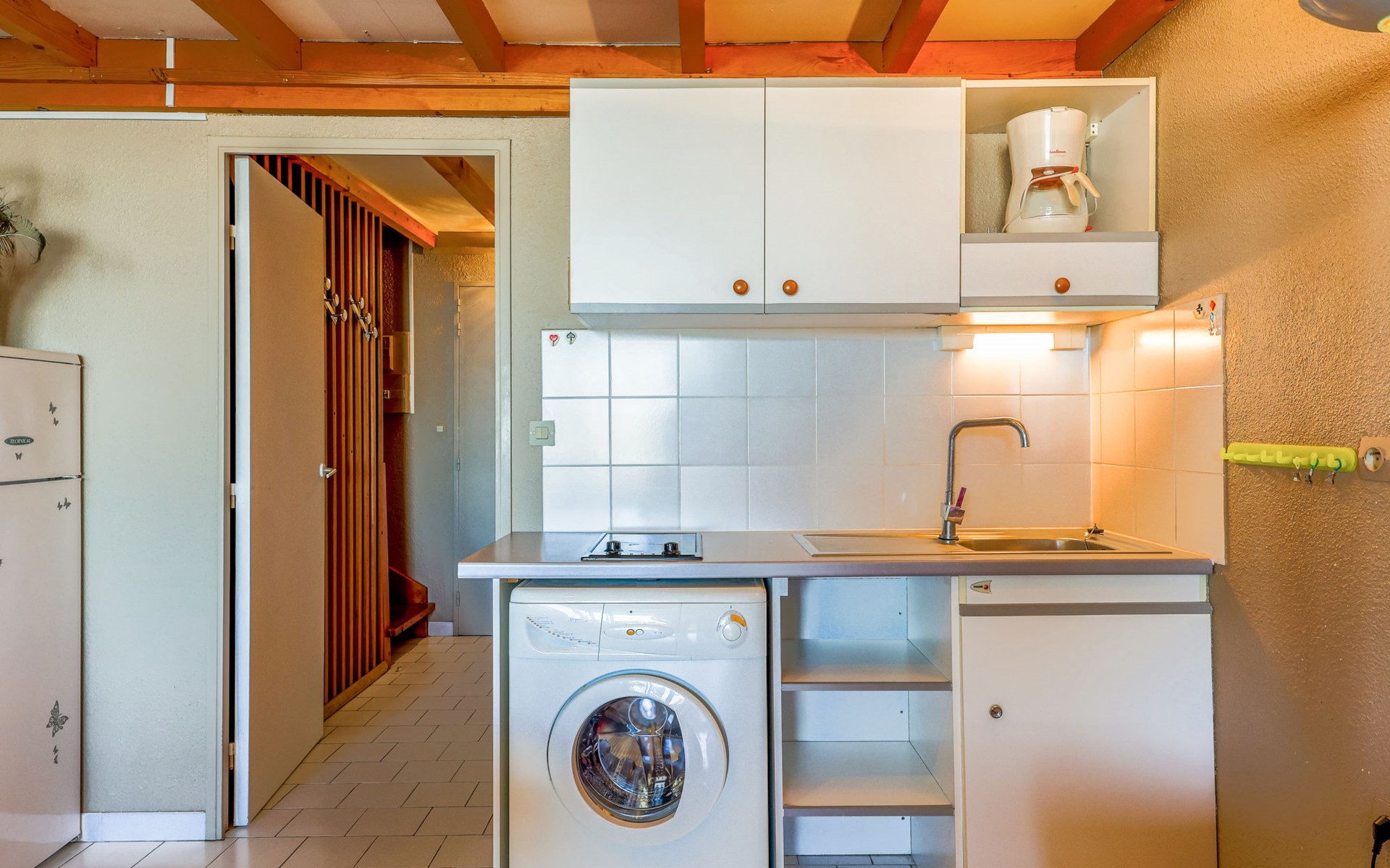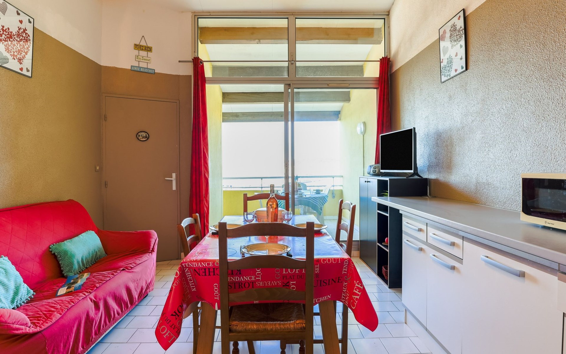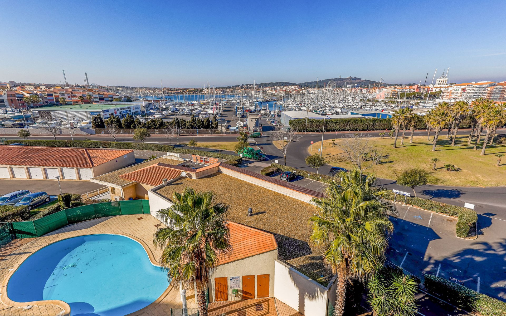 Residenz "Port Saint Michel". Im Ortsteil L'Avant Port, im Ort, 800 m vom Zentrum, 400 m vom Meer. Zur Mitbenutzung: Garten (eingezäunt), Schwimmbad (11 x 4 m, 100 - 180 cm tief, saisonale Verfügbarkeit: 11.Mai. - 15.Sep.). Im Hause: Fahrstuhl. Parkplatz auf dem Grundstück. Einkaufsgeschäft 400 m, Lebensmittelgeschäft 100 m, Restaurant, Bar 800 m, Bushaltestelle "Ile des Pêcheurs" 100 m, Sandstrand 800 m, Badebucht 400 m. Golfplatz (27 Loch) 3 km.