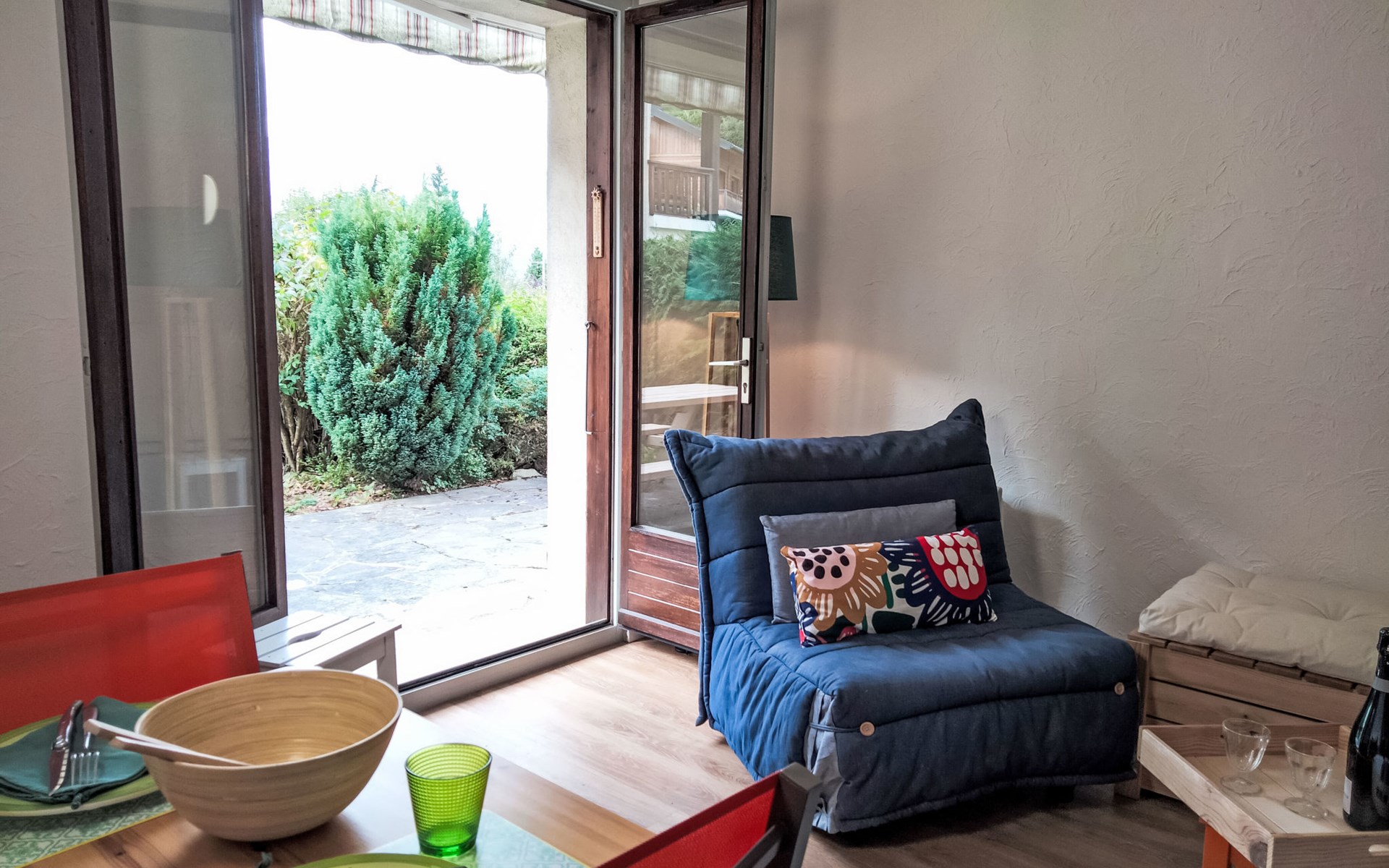 Residenz "Les cimes blanches". Am Ortsrand, 2.9 km vom Zentrum von de Saint-Gervais, am Hang. Im Winter bitte Schneeketten mitbringen. Parkplatz (beschränkte Anzahl). Lebensmittelgeschäft 2.9 km, Restaurant 1 km, Bäckerei 2.2 km, Freibad 3.6 km, Thermalbad "Les thermes de St Gervais" 8.1 km. Skisportanlagen 2.2 km, Skibushaltestelle 500 m, Eisfeld 2.9 km. Bekannte Skigebiete sind gut erreichbar: Evasion Mont Blanc 2.2 km. Bitte beachten: Fahrzeug empfohlen.