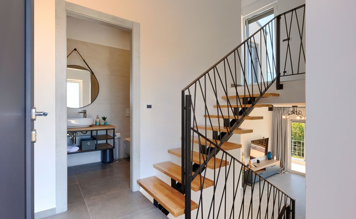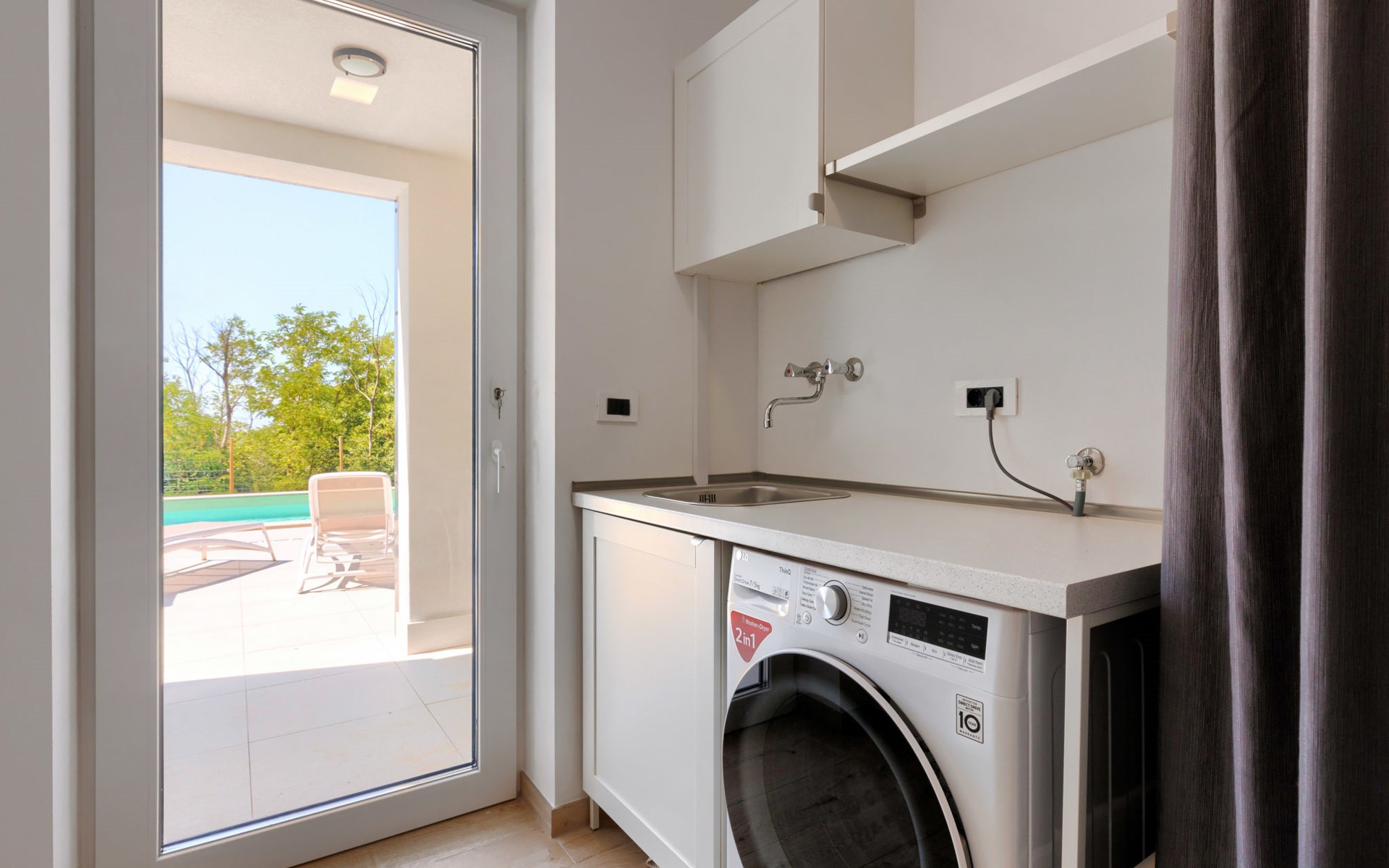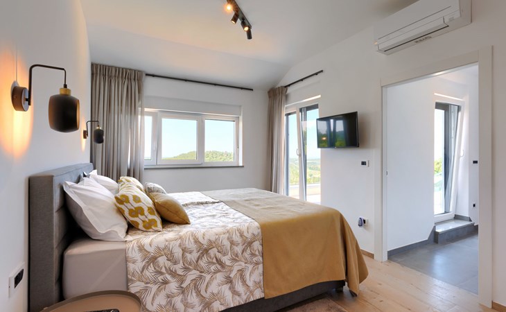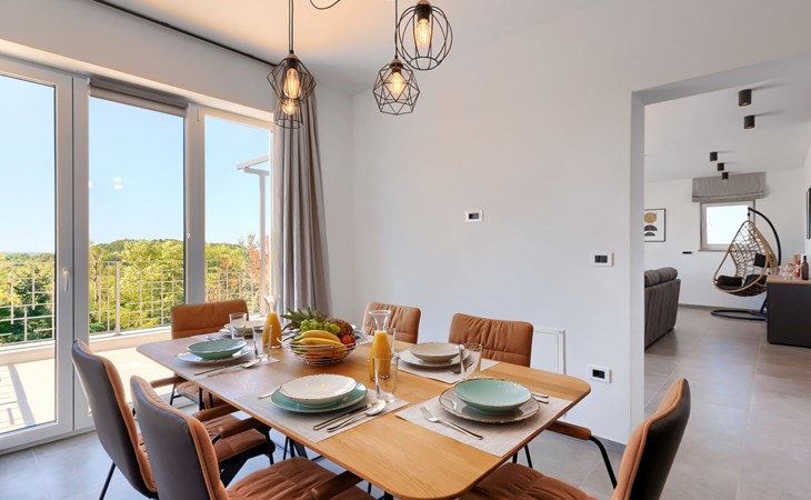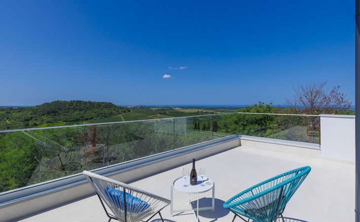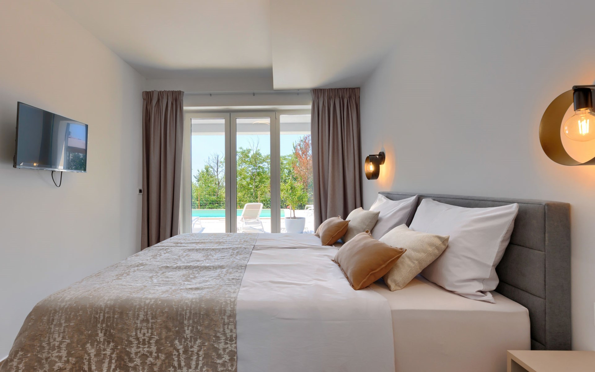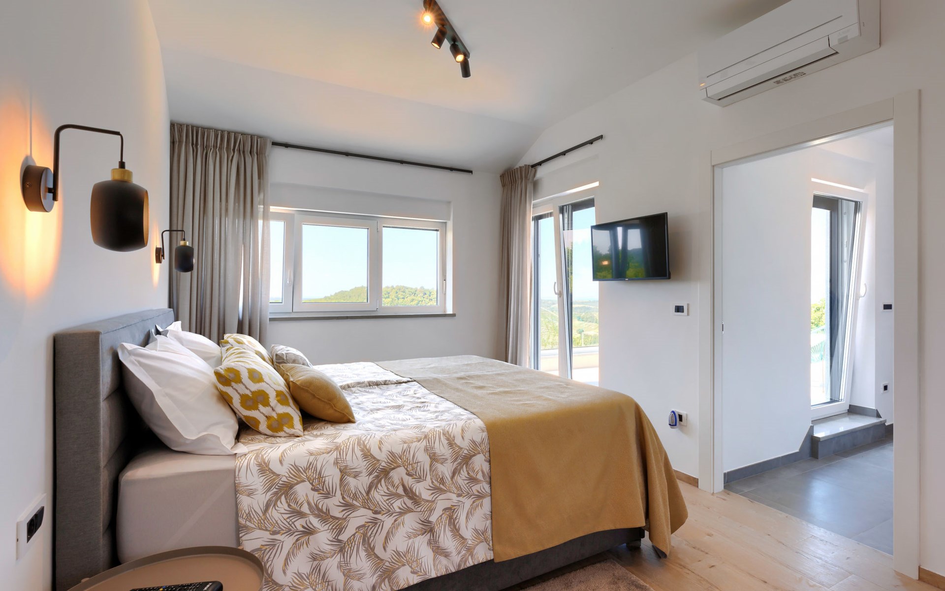 Schönes Einfamilienhaus "Villa Sonja". Ausserhalb des Ortes, 1 km vom Zentrum von Buje, sonnige Lage, 12 km vom Meer. Zur Alleinbenutzung: Grundstück 500 m2, Garten mit Rasen, Schwimmbad eckig (8 x 4 m, 150 cm tief, saisonale Verfügbarkeit: 01.Mai. - 31.Okt.) mit Innentreppe und Salzelektrolyse-Reinigungssystem. Aussendusche, Tischtennis, Grill, Kinderspielplatz (Rutschbahn, Schaukel), Poolpflege durch den Besitzer/Gärtner. Im Hause: Internetzugang, Trampolin, Waschmaschine, Wäschetrockner. Parkplatz (für 2 Autos) beim Haus auf dem Grundstück. Einkaufsgeschäft 1 km, Supermarkt 1 km, Restaurant 2 km, Bushaltestelle 800 m, Kieselstrand 12 km, Felsstrand 12 km. Golfplatz (18 Loch) 18 km, Wanderwege ab Haus 200 m, Radweg 250 m. Der Besitzer akzeptiert keine Jugendgruppen. Das veranstalten von Feiern ist nicht gestattet.