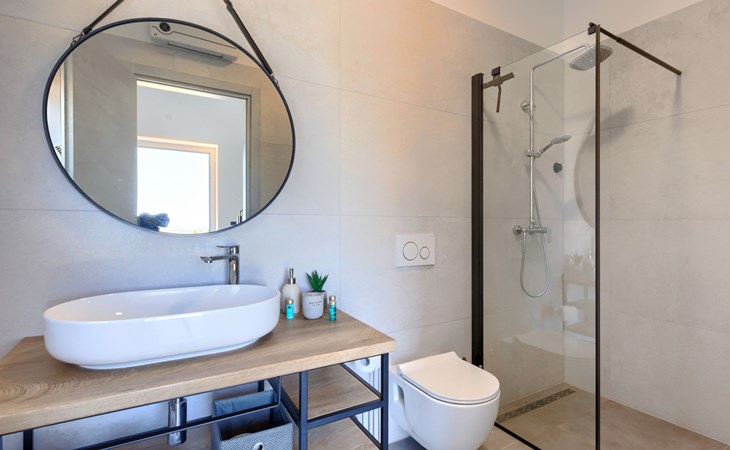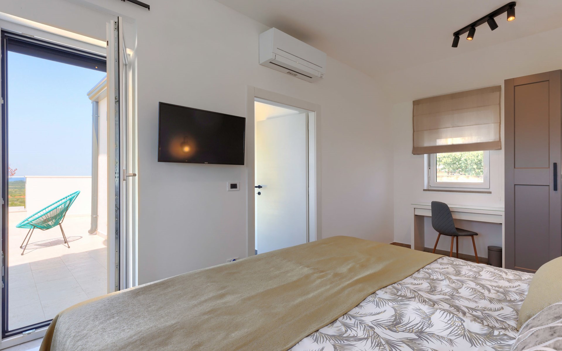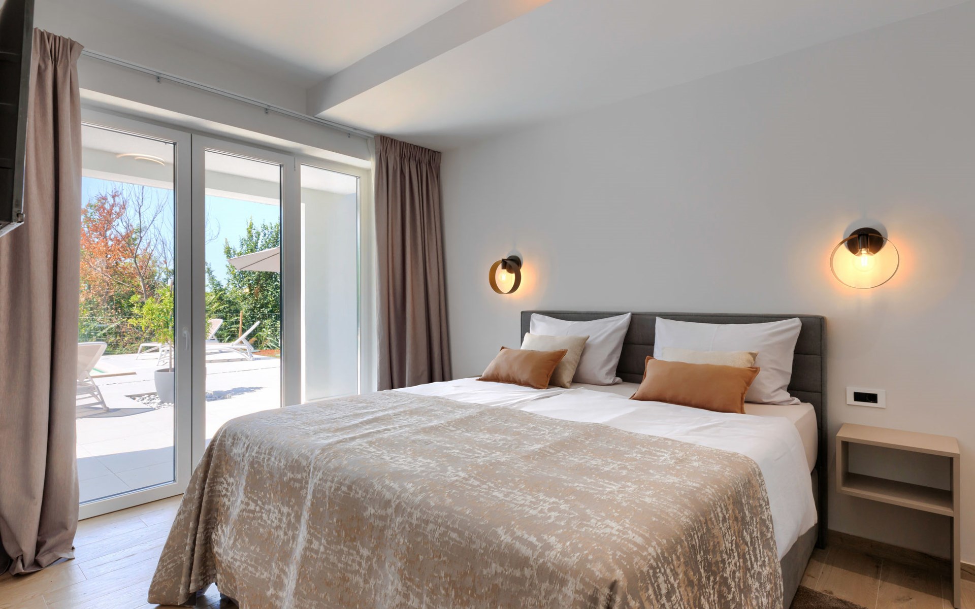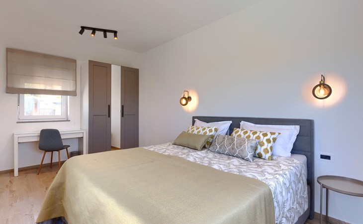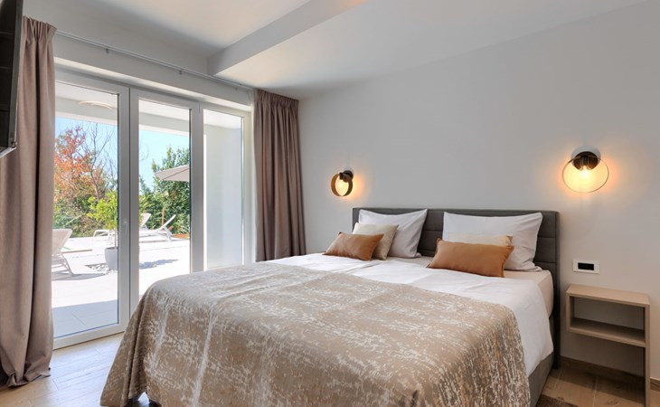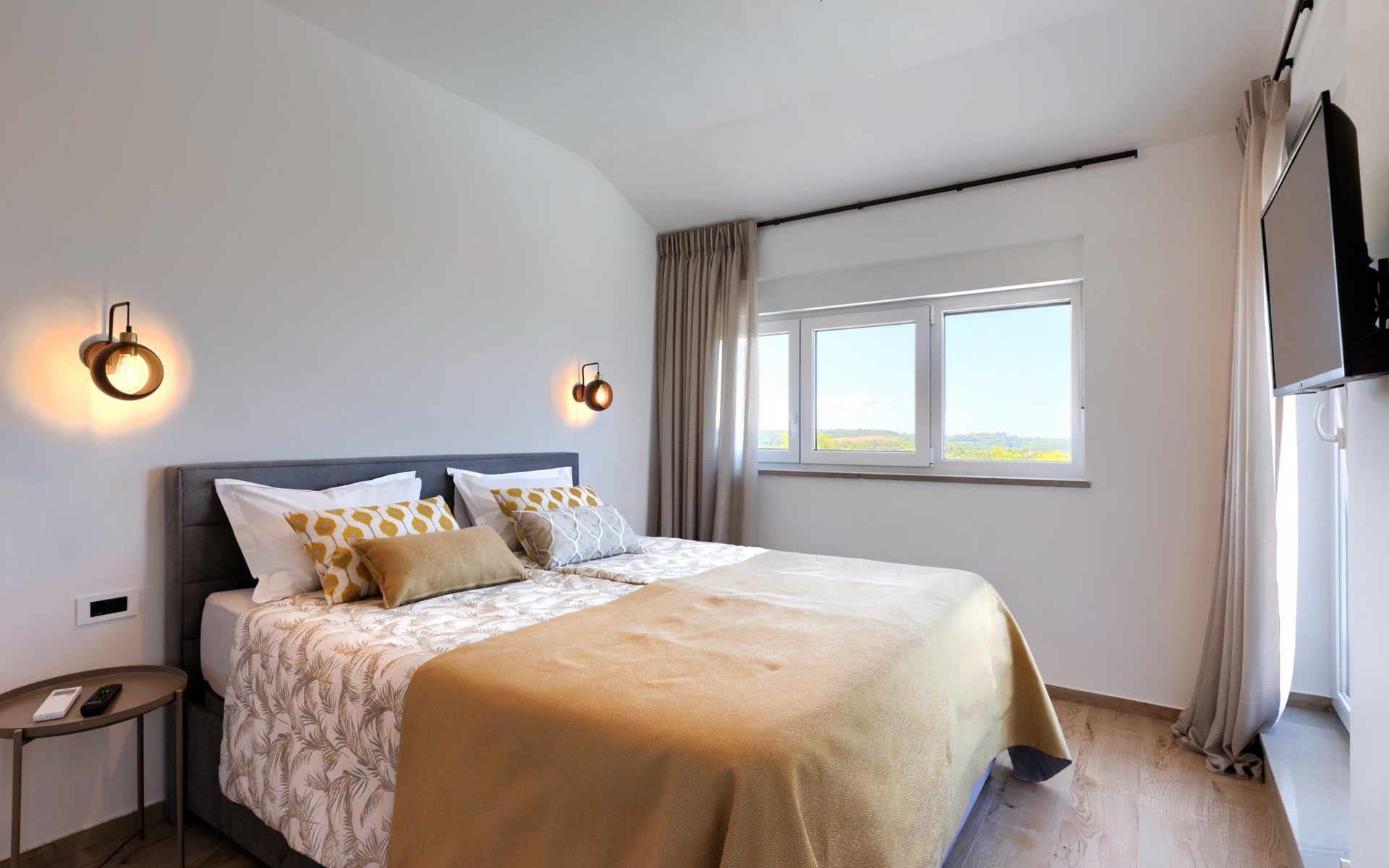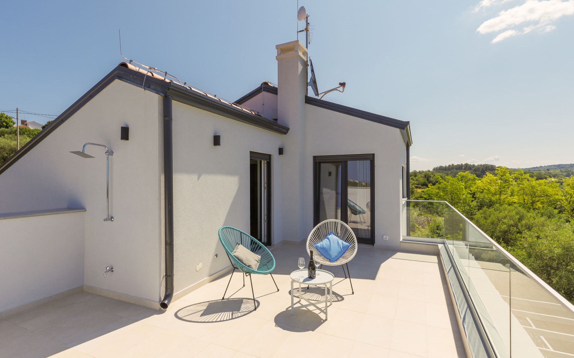 Schönes Einfamilienhaus "Villa Sonja". Ausserhalb des Ortes, 1 km vom Zentrum von Buje, sonnige Lage, 12 km vom Meer. Zur Alleinbenutzung: Grundstück 500 m2, Garten mit Rasen, Schwimmbad eckig (8 x 4 m, 150 cm tief, saisonale Verfügbarkeit: 01.Mai. - 31.Okt.) mit Innentreppe und Salzelektrolyse-Reinigungssystem. Aussendusche, Tischtennis, Grill, Kinderspielplatz (Rutschbahn, Schaukel), Poolpflege durch den Besitzer/Gärtner. Im Hause: Internetzugang, Trampolin, Waschmaschine, Wäschetrockner. Parkplatz (für 2 Autos) beim Haus auf dem Grundstück. Einkaufsgeschäft 1 km, Supermarkt 1 km, Restaurant 2 km, Bushaltestelle 800 m, Kieselstrand 12 km, Felsstrand 12 km. Golfplatz (18 Loch) 18 km, Wanderwege ab Haus 200 m, Radweg 250 m. Der Besitzer akzeptiert keine Jugendgruppen. Das veranstalten von Feiern ist nicht gestattet.