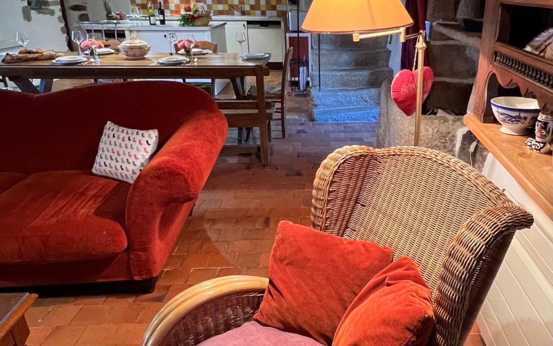 Man muss sich vorstellen was das kleine Leinenweber Haus in über 500 Jahren so alles erlebt hat - als wir zum ersten Mal vor Ort waren und das Kleinod ansehen durften waren wir begeistert - ein Haus aus dem Mittelalter, dass renoviert wurde aber seinen rustikalen Charme nicht nur im kleinen Innenhof ausstrahlt sondern auch innen - rustikal gemütlich - die alte Granittreppe „über die Jahrhunderte rund getreten“ - die neuen Stützbalken aus Eiche, einen Antike Granit-Futtertrog im Haus und der Mannshohe Originale offene Kamin - den man bei eintreten nicht nur sofort bewundert – sondern den leichten Geruch des offenen Feuers sofort in die Nase bekommt! Solch eine kleine Perle im Programm für Ferienhäuser zu haben - ist fast eine Ehre.