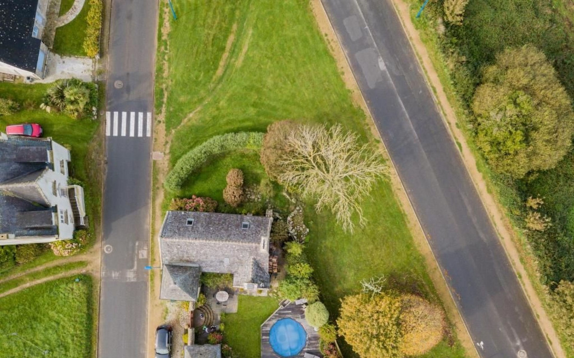 - komplett eingefriedet (mit Mauer, Zaun oder Hecke)
