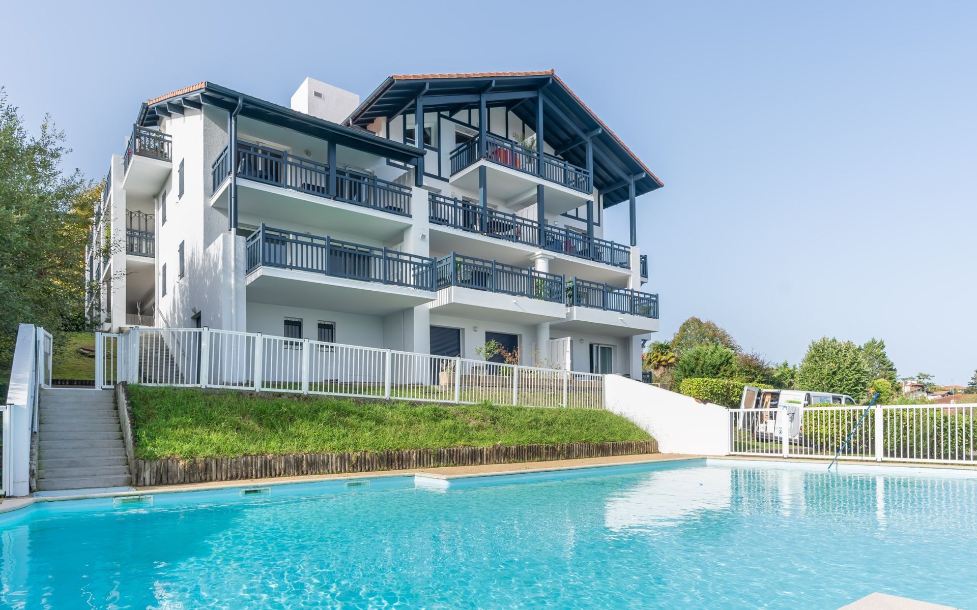 Guéthary 1 km von Bidart: Residenz "Kantaldi". Im Ort, 400 m vom Zentrum von Guethary, 500 m vom Meer, 500 m vom Strand. Zur Mitbenutzung: Schwimmbad eingezäunt (15 x 7 m, 120 - 175 cm tief, saisonale Verfügbarkeit: 01.Jun. - 01.Sep.). Im Hause: Fahrstuhl. Einkaufsgeschäft 200 m, Lebensmittelgeschäft 500 m, Supermarkt 3 km, Restaurant 250 m, Bäckerei, Café, Fußgängerzone 200 m, Zentrum zu Fuss in 2 Minuten erreichbar, Bushaltestelle 100 m, Bahnstation "Guethary" 500 m, Sandstrand "Guethary plage" 500 m. Surfschule 600 m. Nahe gelegene Sehenswürdigkeiten: Marché nocturne 100 m, Aquarium de Biarritz 18 km. Wandergebiete: La rhune 32 km. Die Schlüsselübergabe findet bei der Agentur Interhome in Bidart statt, 2 km.