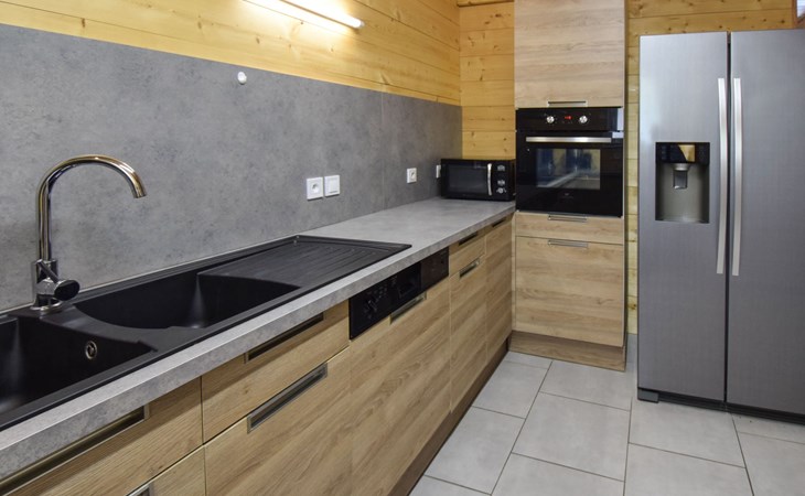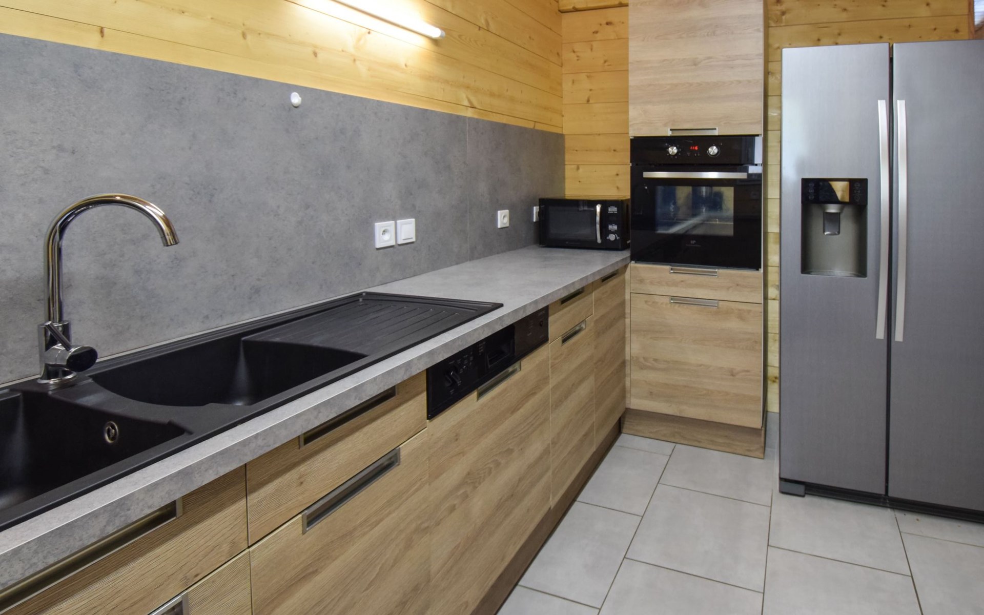 Chalet mit viel Komfort und 100 m² Wohnfläche für 12 Personen mit: ausgestatteter Küche (amerikanischer Kühlschrank, vier Mikrowellen, Mikrowellenherde, Glaskeramik-Platten, Spülbecken, Spülbecken...), Salon (2 Canapés), ein Stück Leben mit LED-TV 120 cm, 4 Zimmer, 2 Salons, 2 WC.