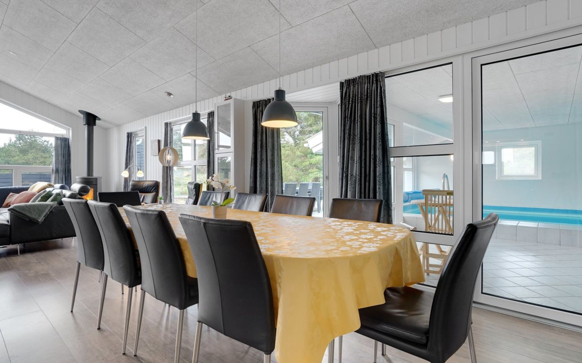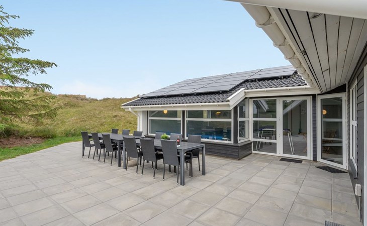 Einfamilienhaus, Baujahr 1992. 800 m vom Meer. Zur Alleinbenutzung: naturbelassenes Grundstück 2'200 m2, Hallenbad (3 x 7 m, 2'8.1 m2, 120 - 120 cm tief). Terrasse (51 m2), Kinderspielplatz (Schaukel). Im Hause: Sauna, Waschmaschine, Wäschetrockner. Parkplatz beim Haus. E-Ladestation. Lebensmittelgeschäft 600 m. Der Besitzer akzeptiert keine Jugendgruppen.
