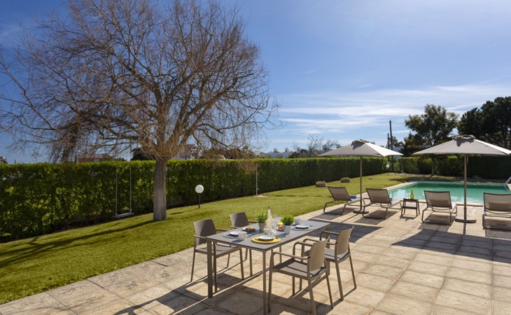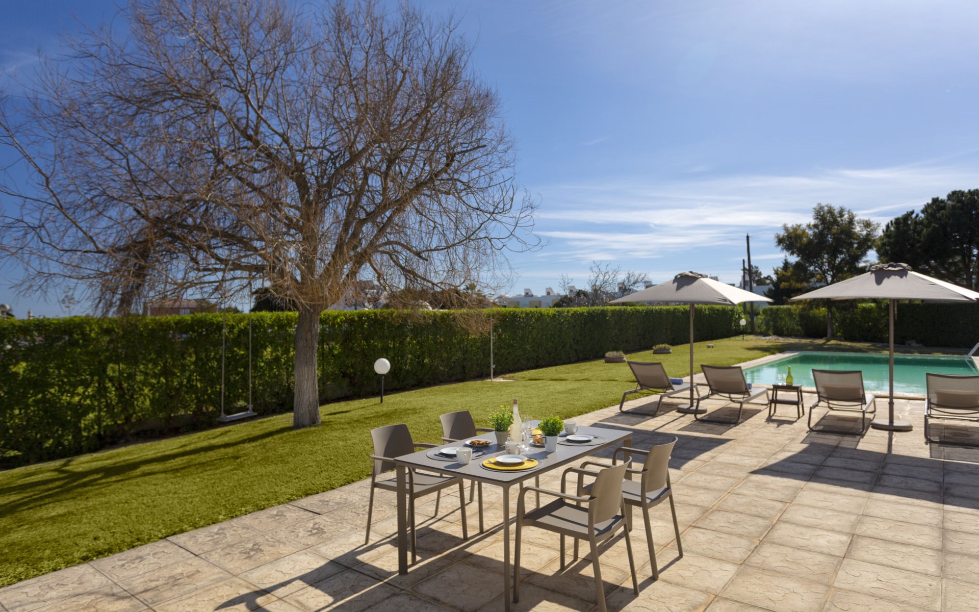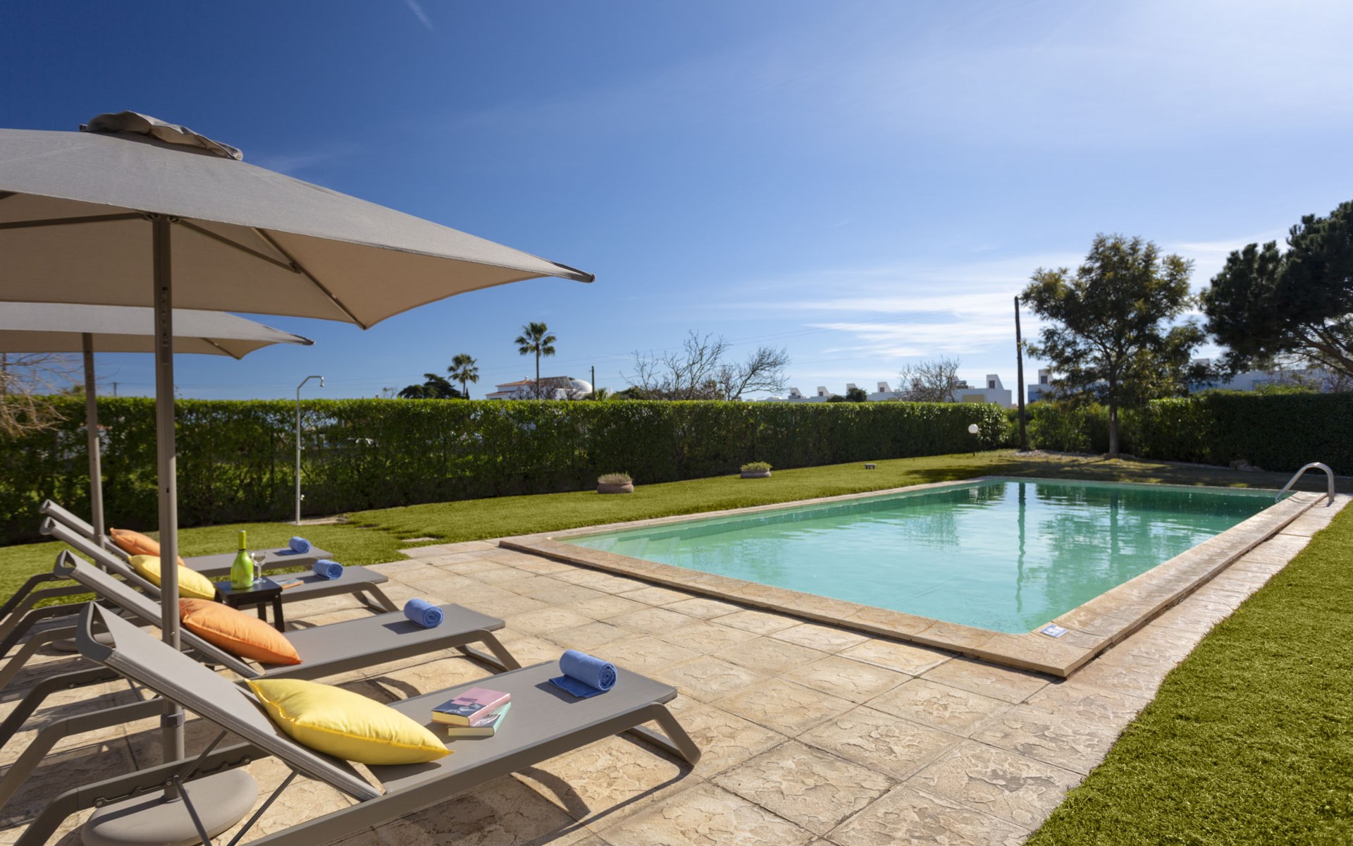 Sehr schöne, gemütliche, freistehende Villa "Almond Tree", auf 2 Stockwerken, umgeben von Bäumen und Feldern. Ausserhalb des Ortes, 3.4 km vom Zentrum von Armação de Pera, ruhige Lage im Villenviertel, 1.3 km vom Meer. Zur Alleinbenutzung: naturbelassenes Grundstück 2'520 m2 (eingezäunt) mit Rasen und Pflanzen, wunderschöner Garten zum Entspannen, Schwimmbad eckig (5 x 12 m, 100 - 200 cm tief, saisonale Verfügbarkeit: 01.Jan. - 31.Dez.) mit Salzelektrolyse-Reinigungssystem. Aussendusche, Terrasse, Gartenmöbel, Grill (Schaukel), Poolpflege durch den Besitzer/Gärtner. Im Hause: Wireless LAN, Billard, Klimaanlage. Parkplatz (für 4 Autos). Lebensmittelgeschäft 800 m, Supermarkt 1.1 km, Einkaufszentrum 13 km, Restaurant 650 m, Bar 850 m, Bäckerei 1.1 km, Café 800 m, Fußgängerzone 2.6 km, Zentrum zu Fuss in 40 Minuten erreichbar, Bushaltestelle "Estrada Armação De Pera" 1.2 km, Bahnstation "Alcantarilha" 12.3 km, Sandstrand "Praia da Nossa Senhora da Rocha" 1.3 km, Felsstrand "Praia da Cova Redonda" 1.3 km, Tauchzentrum 3.4 km. Jacht-Hafen 13.9 km, Golfplatz (18 Loch) 9.5 km, Surfschule 3.8 km, Tennishalle 16.6 km, Minigolf 1.5 km, Reitstall 1.3 km, Sportzentrum 16.2 km. Nahe gelegene Sehenswürdigkeiten: Zoomarine 8.5 km, Algarve Shopping 11.5 km, Slide & Splash 9.5 km, Albufeira 17 km, Castelo de Silves 17.8 km, Krazy World 16.5 km. Wandergebiete: Monchique Passeios na Serra 40.1 km. Bitte beachten: Fahrzeug empfohlen. Objekt geeignet für 12 Erwachsene. Der Besitzer akzeptiert keine Jugendgruppen. Be- und Entladen am Ferienhaus möglich. Kleiner Fußballplatz auf dem Grundstück des Hauses für Familienspaß.