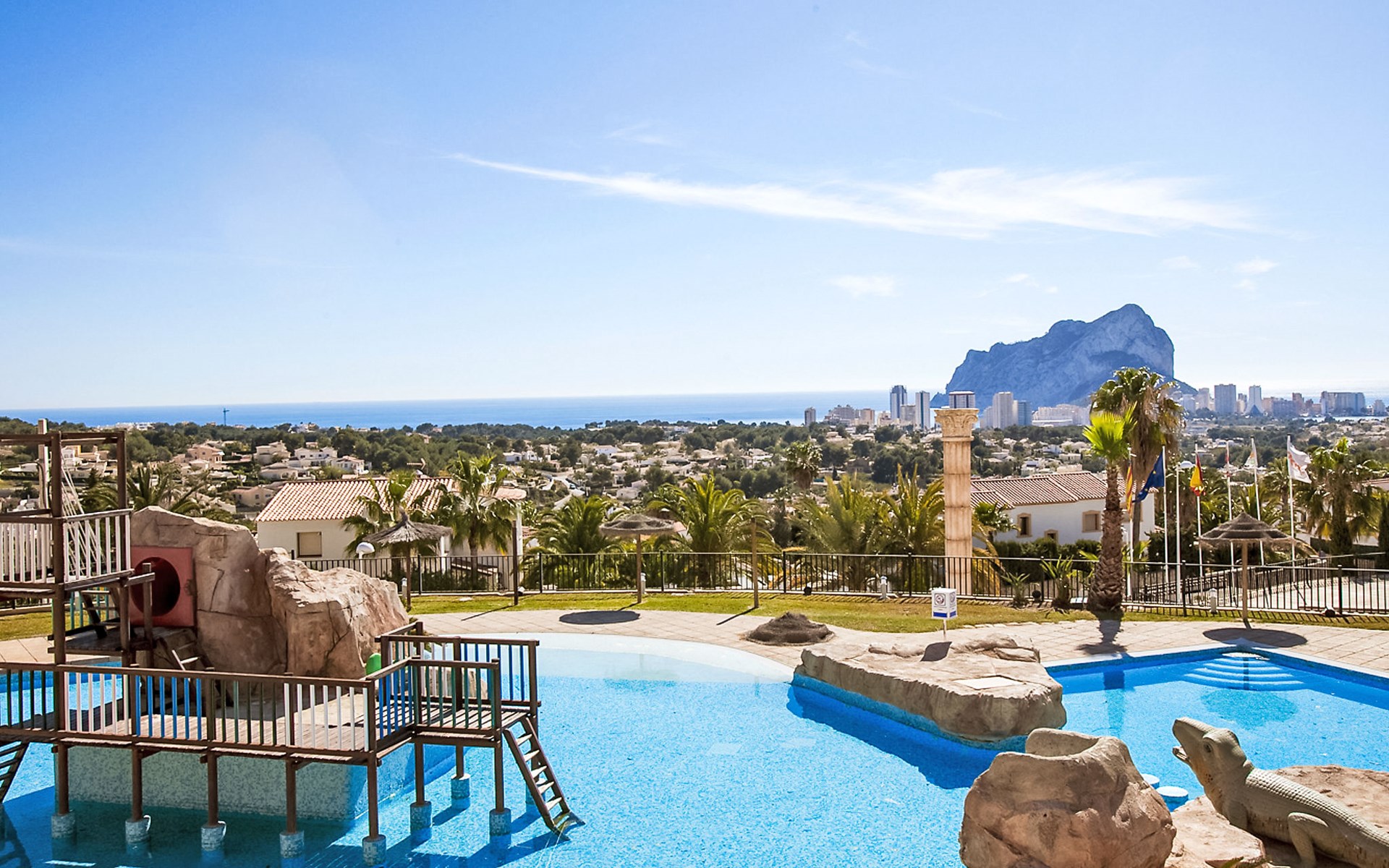 Imperial Park: Modernes Reihenhaus "Imperial Park". 3.3 km vom Zentrum von Calpe, belebte, sonnige, erhöhte Lage, 2.5 km vom Meer, 2.5 km vom Strand. Zur Mitbenutzung: grosser, gepflegter terrassierter Garten (eingezäunt), Naturgarten, 3 Schwimmbäder (saisonale Verfügbarkeit: 01.Jan. - 31.Dez. Öffnungszeiten Schwimmbad: 10:00-20:00) mit Innentreppe. Ungleichmässige Schwimmbadform, Kinderbecken, Aussendusche, Sitzplatz, Pergola, Gartenmöbel. Im Hause: Empfang, Fahrstuhl. Einkaufsgeschäft 2 km, Supermarkt 2 km, Restaurant 50 m, Bar 200 m, Café 50 m, Bushaltestelle 1.3 km, Sandstrand "Playa De La Fosa" 3 km, Tauchzentrum 1.5 km. Sporthafen 2.5 km, Jacht-Hafen 2.5 km, Golfplatz (18 Loch) 10 km, Surfschule 2.5 km, Segelschule 2.5 km, Tennis 2.8 km, Minigolf 3 km. Nahe gelegene Sehenswürdigkeiten: Aqualandia, Mundomar, Terra Mítica, Terra Natura, y Benidorm Palace (Benidorm). Bitte beachten: Fahrzeug empfohlen. Öffnungszeiten der Rezeption 10:00-15:00 Uhr. Geeignet für Familien. Bitte beachten: Bewachte Residenz. Weitere Unterkünfte sind buchbar. Alle Häuser/Wohnungen sind individuell eingerichtet. Die Nachbarschaft ist sehr lärmempfindlich. Ruhe und gutes Benehmen wird erwartet.