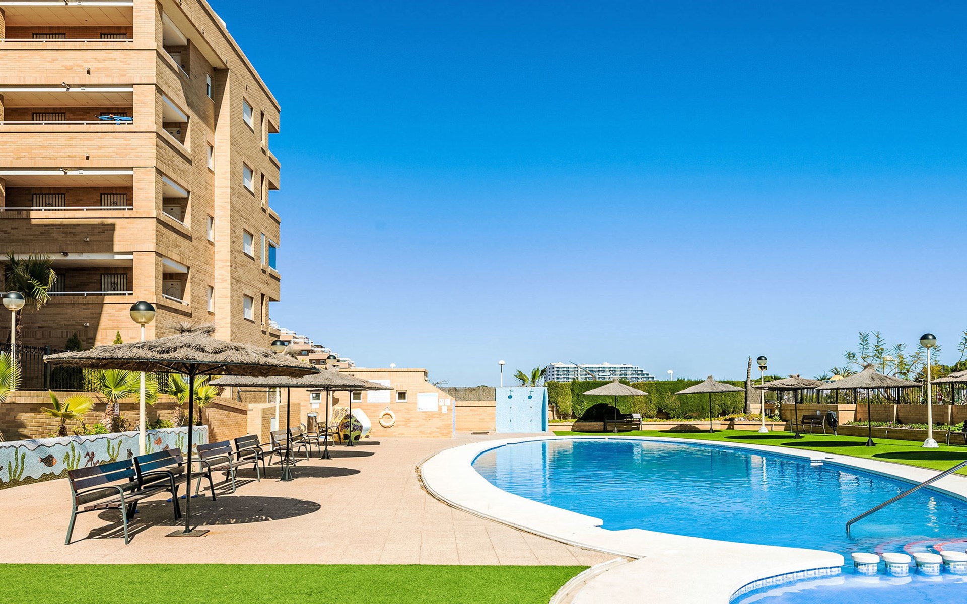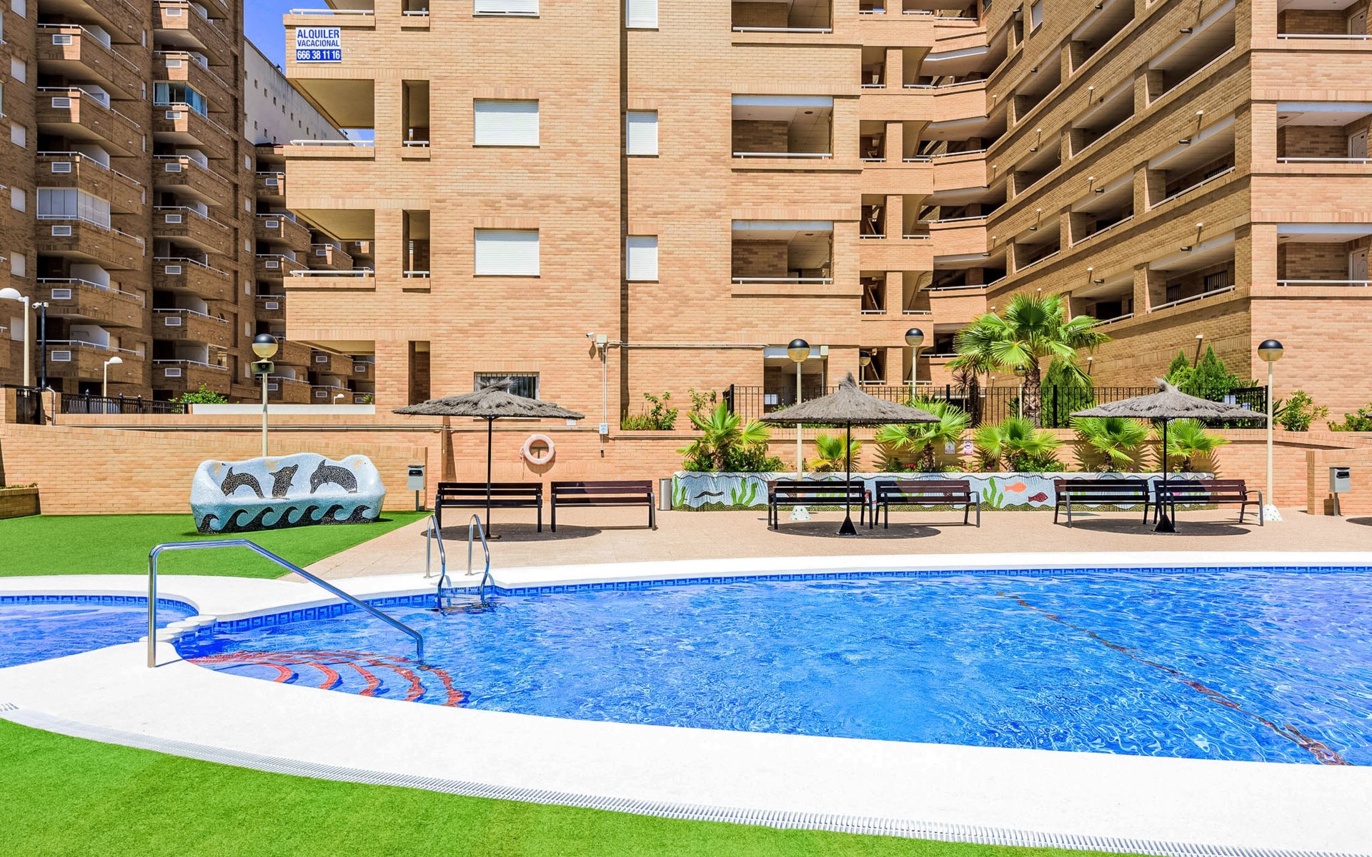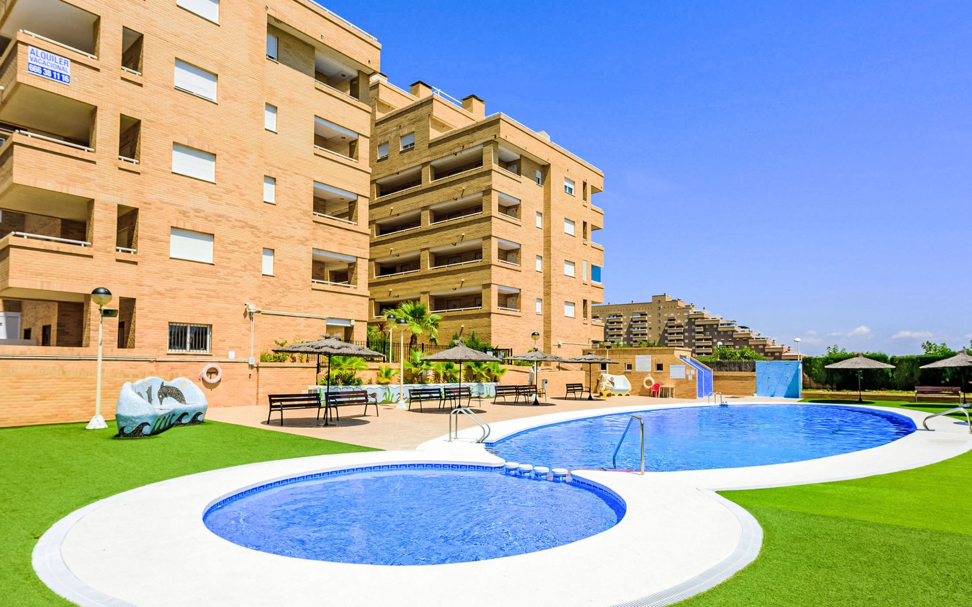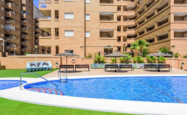 Oropesa del Mar: Gemütliches, komfortables Appartementhaus "Costa Azahar II". Im Ort Oropesa del Mar, im Bezirk Marina d'Or, ruhige, sonnige Lage, 300 m vom Meer, 300 m vom Strand. Zur Mitbenutzung: Schwimmbad (20 x 10 m, 70 - 240 cm tief, saisonale Verfügbarkeit: 01.Jun. - 01.Okt.). Kinderbecken, Aussendusche. In der Anlage: Fahrstuhl. Supermarkt 500 m, Restaurant 800 m, Bushaltestelle "Av Barcelona" 500 m, Bahnstation "Oropesa del Mar" 3 km, Sandstrand 600 m. Nahe gelegene Sehenswürdigkeiten: Valencia 99 km.