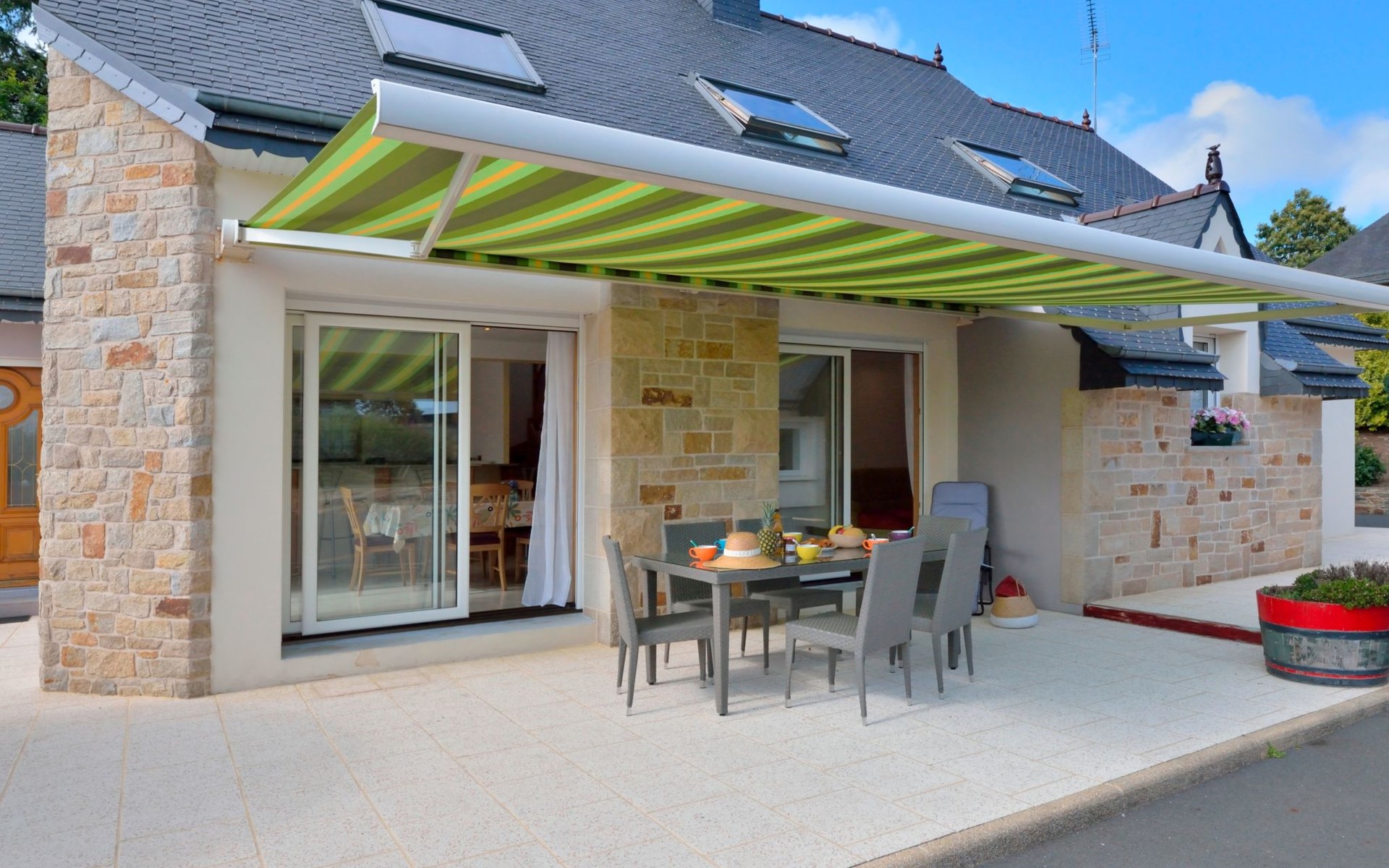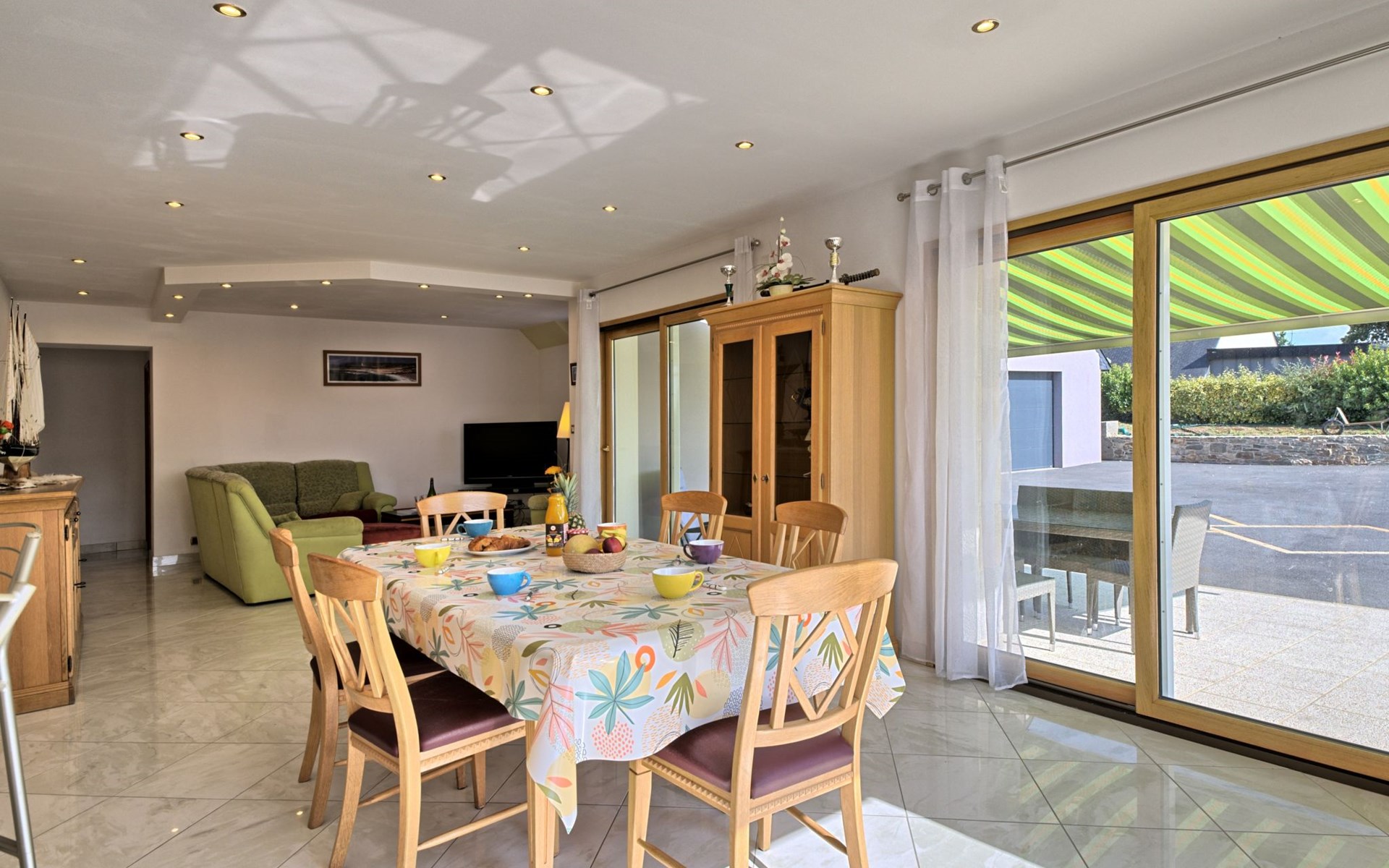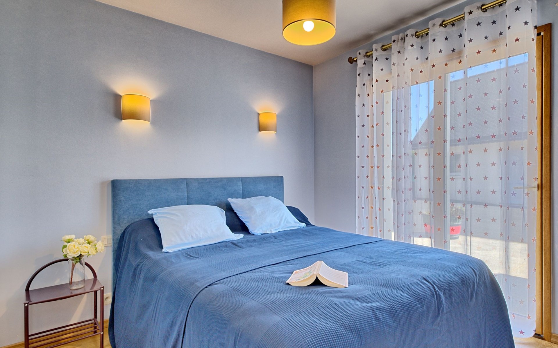 Grosses, schönes Einfamilienhaus "Ty Ker", auf 2 Stockwerken. Im Weiler Ruvignolet, 2.5 km vom Zentrum von Ploubezre, 5 km vom Zentrum von Lannion, erhöhte Lage, 10 km vom Meer, an einer Hauptstrasse. Zur Alleinbenutzung: Grundstück 2'200 m2 (eingezäunt) mit Rasen und Bäumen, Hof, Parkplatz (überdacht) auf dem Grundstück, Einzelgarage. Einkaufsgeschäft 2.3 km, Lebensmittelgeschäft 2.3 km, Supermarkt 2.5 km, Restaurant 2.3 km, Bar 2.3 km, Bäckerei 2.3 km, Bushaltestelle 3 km, Sandstrand 10 km, Hallenbad 4 km. Golfplatz (18 Loch) 16 km, Tennis 2.3 km, Tennishalle 7 km, Wanderwege ab Haus 3 km. Nahe gelegene Sehenswürdigkeiten: Château de Tonquédec 6 km.