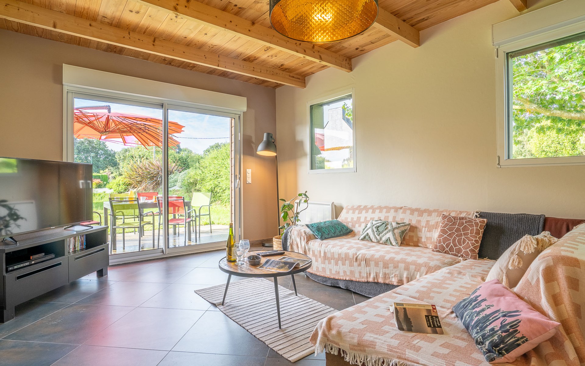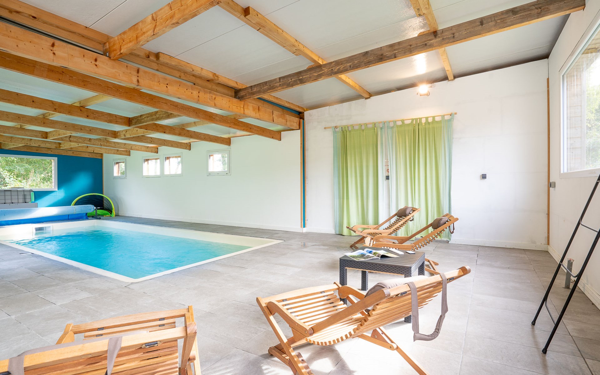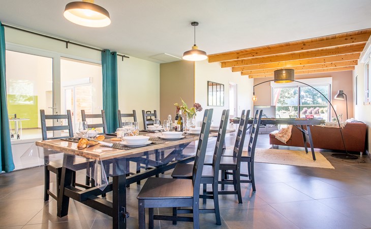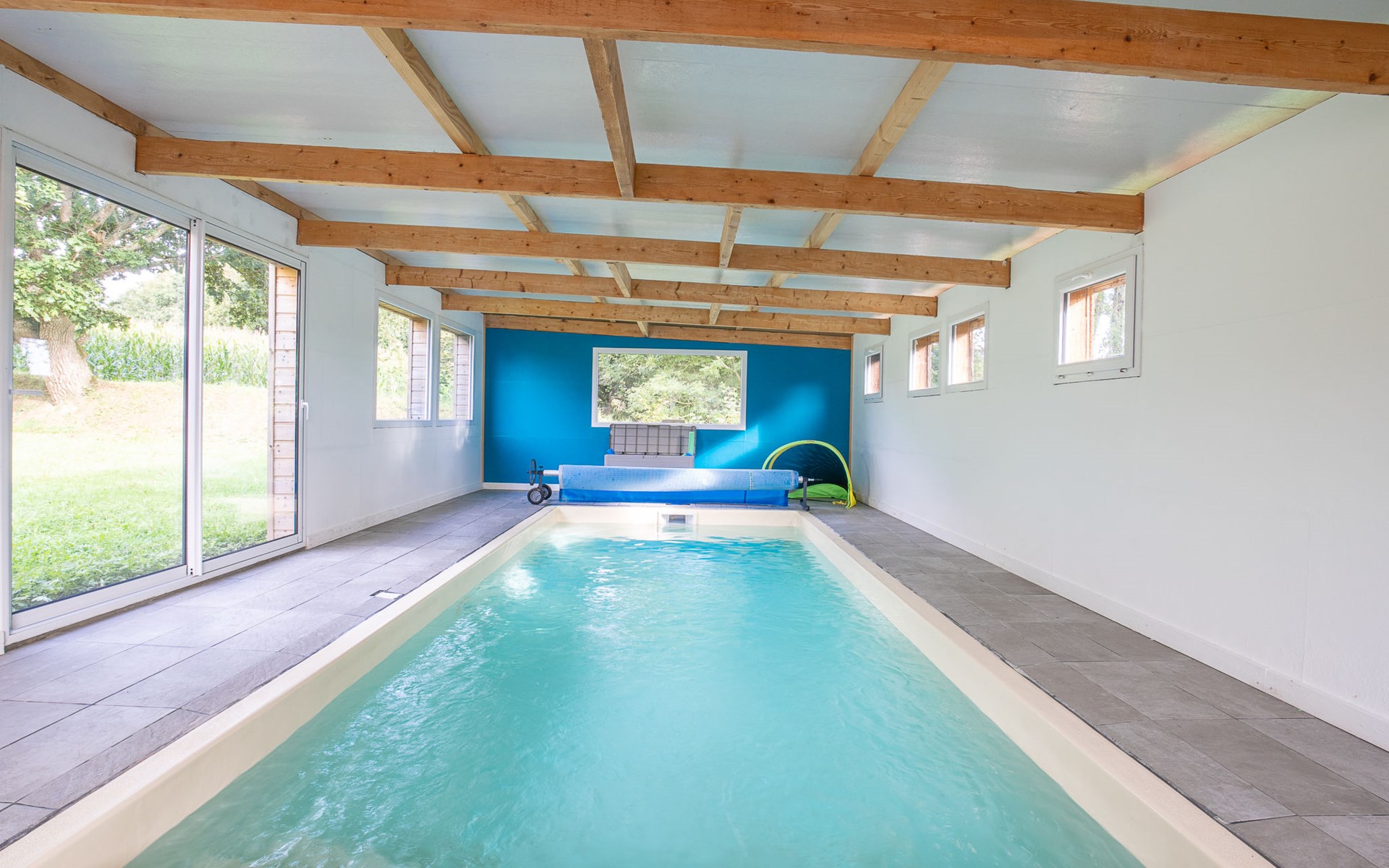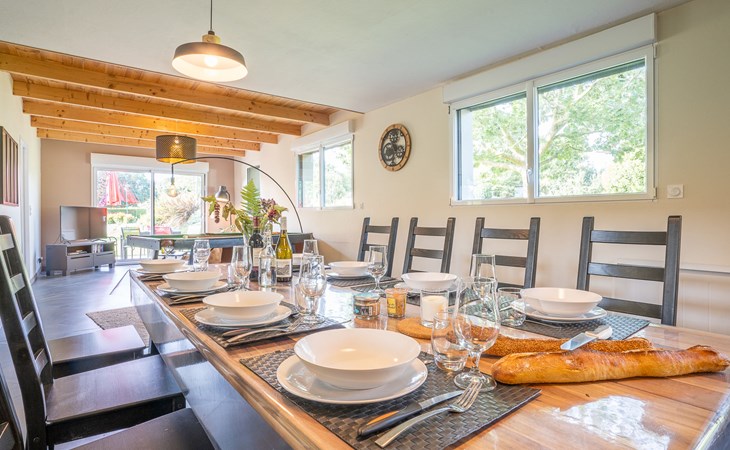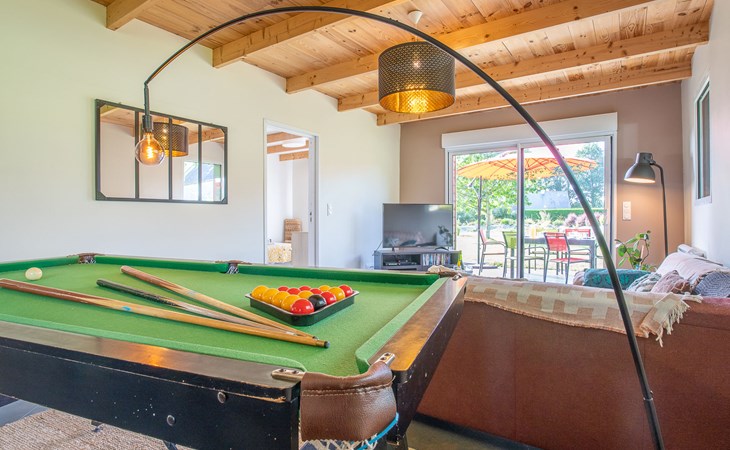 Grosses, gemütliches Einfamilienhaus "Villa Heol", Baujahr 2020. Im Ortsteil Pont Menou, 3 km vom Zentrum von Plestin, 6 km vom Zentrum von Locquirec, 17 km vom Zentrum von Morlaix, ruhige Lage in einem Wohnquartier, 4.6 km vom Meer, 4.6 km vom Strand, in einer Sackgasse, im Grünen. Zur Alleinbenutzung: Grundstück 2'000 m2, gepflegter Garten mit Rasen und Bäumen, Hallenbad beheizt (3 x 7 m, 110 - 140 cm tief, saisonale Verfügbarkeit: 01.Jan. - 31.Dez.). Poolhaus, Tischtennis, Volleyball, Badminton, Poolpflege durch den Besitzer/Gärtner. Im Hause: Billard, Spielzimmer. Parkplatz (für 2 Autos), Einzelgarage. Einkaufsgeschäft 3 km, Supermarkt 3.3 km, Restaurant 3 km, Bäckerei 3 km, Bushaltestelle 600 m, Sandstrand "à Locquirec" 4.6 km, Hallenbad 10 km. Sporthafen 6.7 km, Golfplatz (9 Loch) 16 km, Surfschule 6 km, Segelschule 6 km, Tennis 4 km, Reitstall 500 m, Wanderwege ab Haus 300 m. Nahe gelegene Sehenswürdigkeiten: Locquirec 6 km, Plougasnou 12 km, Lannion 20 km, Ploumanac'h, Côte du Granit Rose 36 km, Carantec, Baie de Morlaix 33 km. Wandergebiete: circuit de 5,21km, départ Pont Menou 300 m, GR34, sentier des douaniers 4.5 km. Bitte beachten: Babyausstattung (inkl.). Objekt geeignet für 6 Erwachsene + 2 Kinder.