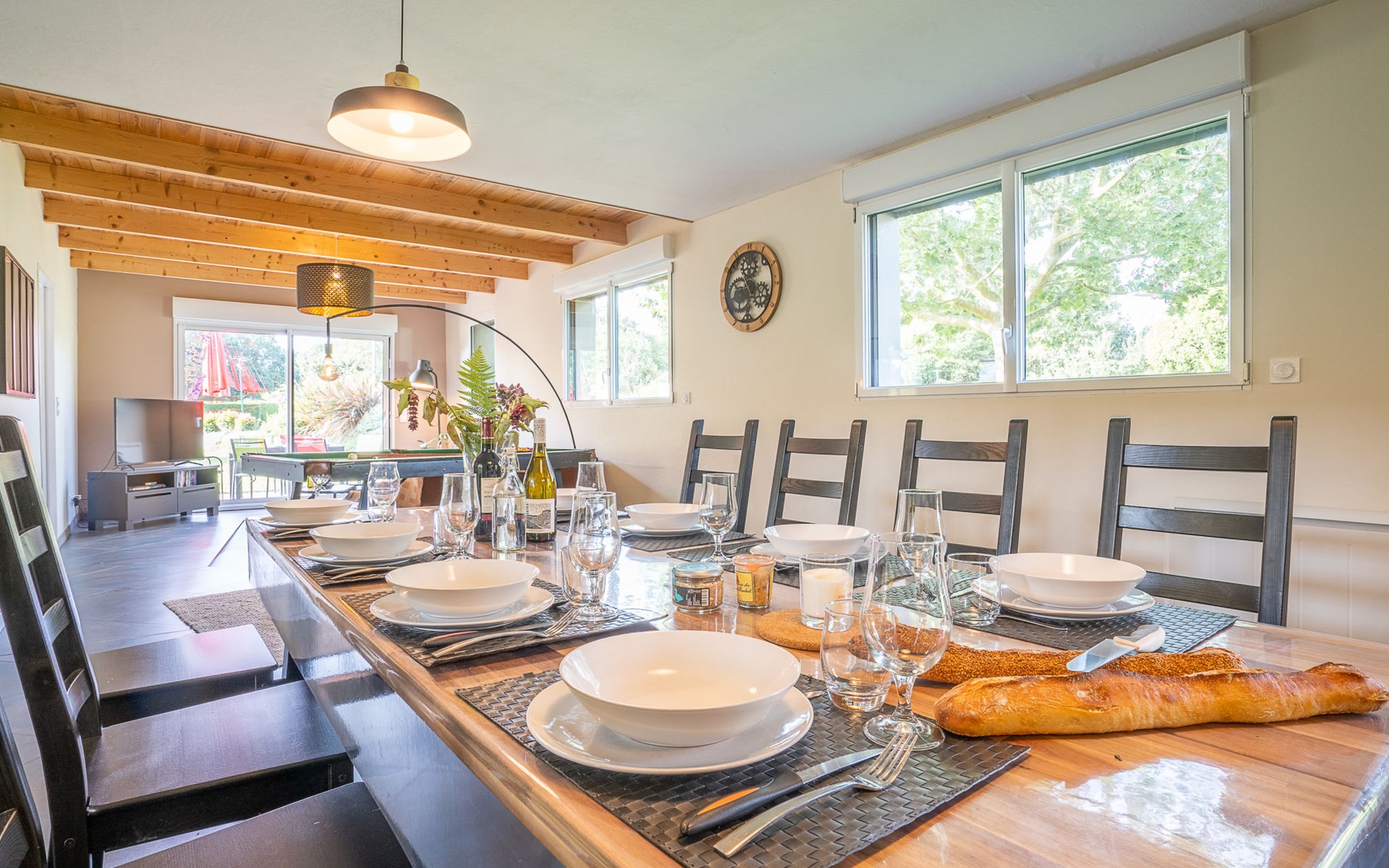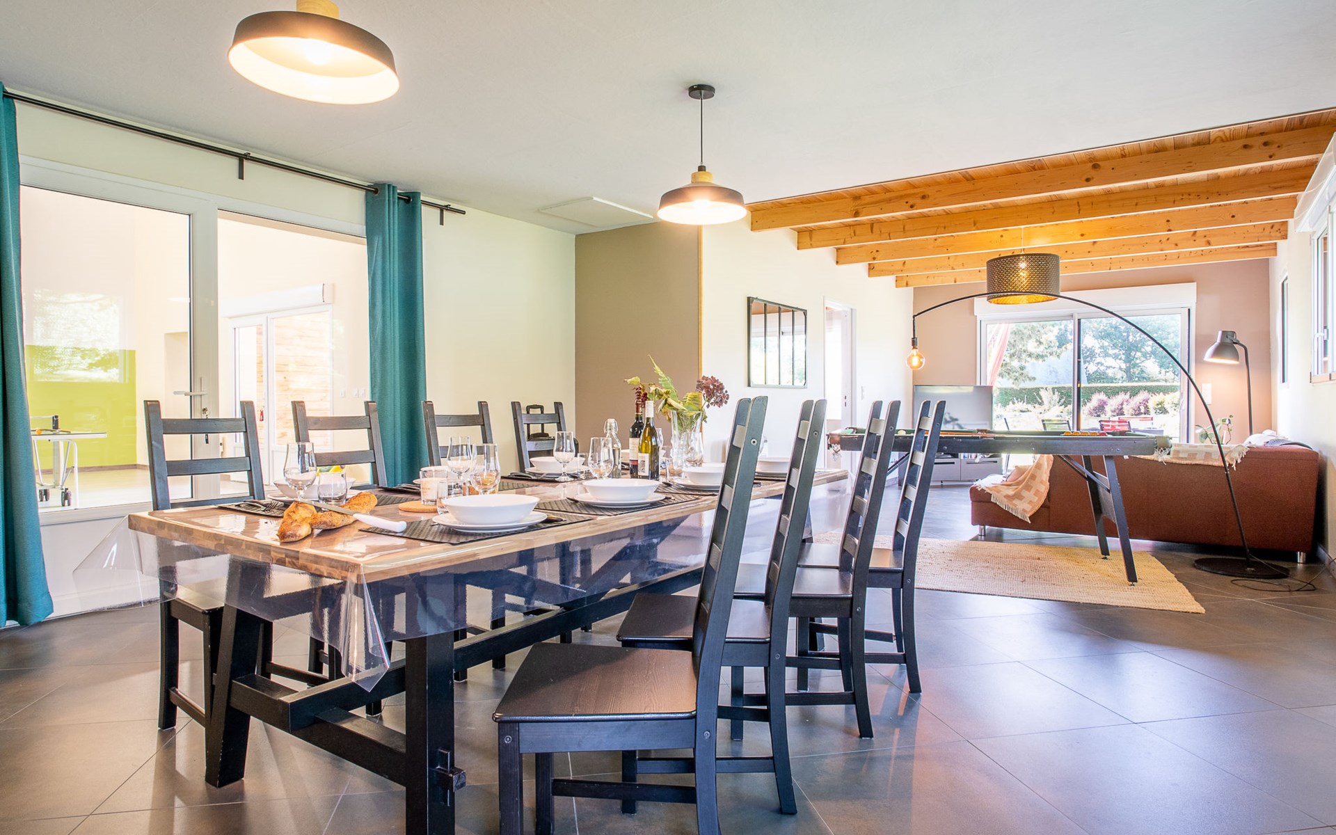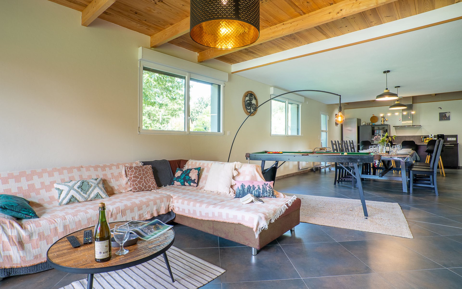 Grosses, gemütliches Einfamilienhaus "Villa Heol", Baujahr 2020. Im Ortsteil Pont Menou, 3 km vom Zentrum von Plestin, 6 km vom Zentrum von Locquirec, 17 km vom Zentrum von Morlaix, ruhige Lage in einem Wohnquartier, 4.6 km vom Meer, 4.6 km vom Strand, in einer Sackgasse, im Grünen. Zur Alleinbenutzung: Grundstück 2'000 m2, gepflegter Garten mit Rasen und Bäumen, Hallenbad beheizt (3 x 7 m, 110 - 140 cm tief, saisonale Verfügbarkeit: 01.Jan. - 31.Dez.). Poolhaus, Tischtennis, Volleyball, Badminton, Poolpflege durch den Besitzer/Gärtner. Im Hause: Billard, Spielzimmer. Parkplatz (für 2 Autos), Einzelgarage. Einkaufsgeschäft 3 km, Supermarkt 3.3 km, Restaurant 3 km, Bäckerei 3 km, Bushaltestelle 600 m, Sandstrand "à Locquirec" 4.6 km, Hallenbad 10 km. Sporthafen 6.7 km, Golfplatz (9 Loch) 16 km, Surfschule 6 km, Segelschule 6 km, Tennis 4 km, Reitstall 500 m, Wanderwege ab Haus 300 m. Nahe gelegene Sehenswürdigkeiten: Locquirec 6 km, Plougasnou 12 km, Lannion 20 km, Ploumanac'h, Côte du Granit Rose 36 km, Carantec, Baie de Morlaix 33 km. Wandergebiete: circuit de 5,21km, départ Pont Menou 300 m, GR34, sentier des douaniers 4.5 km. Bitte beachten: Babyausstattung (inkl.). Objekt geeignet für 6 Erwachsene + 2 Kinder.