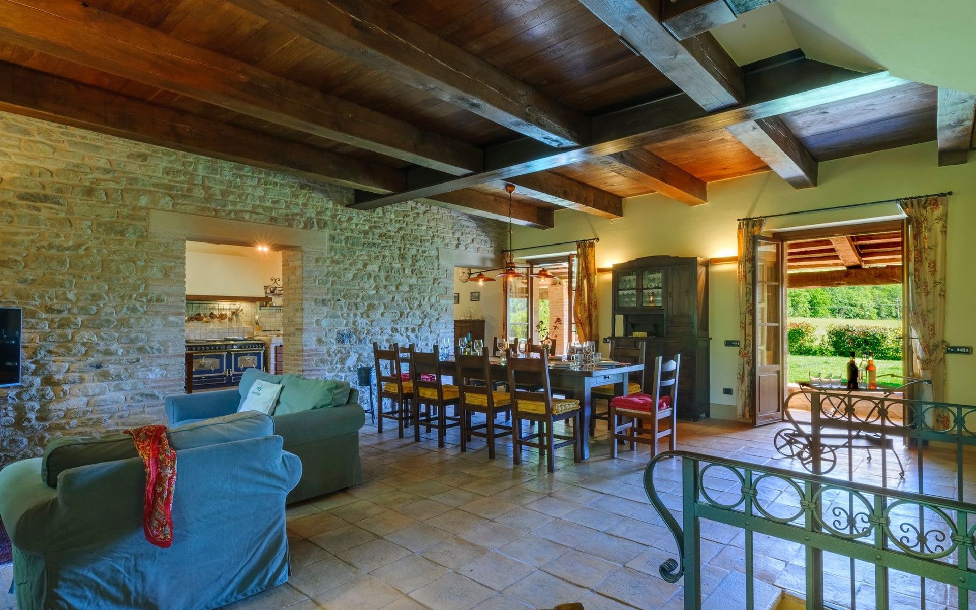 ERDGESCHOSS: voll ausgestattete Küche, Wohnzimmer mit Kamin, Fernsehraum mit zweitem Kamin, Waschküche, Service-Bad.