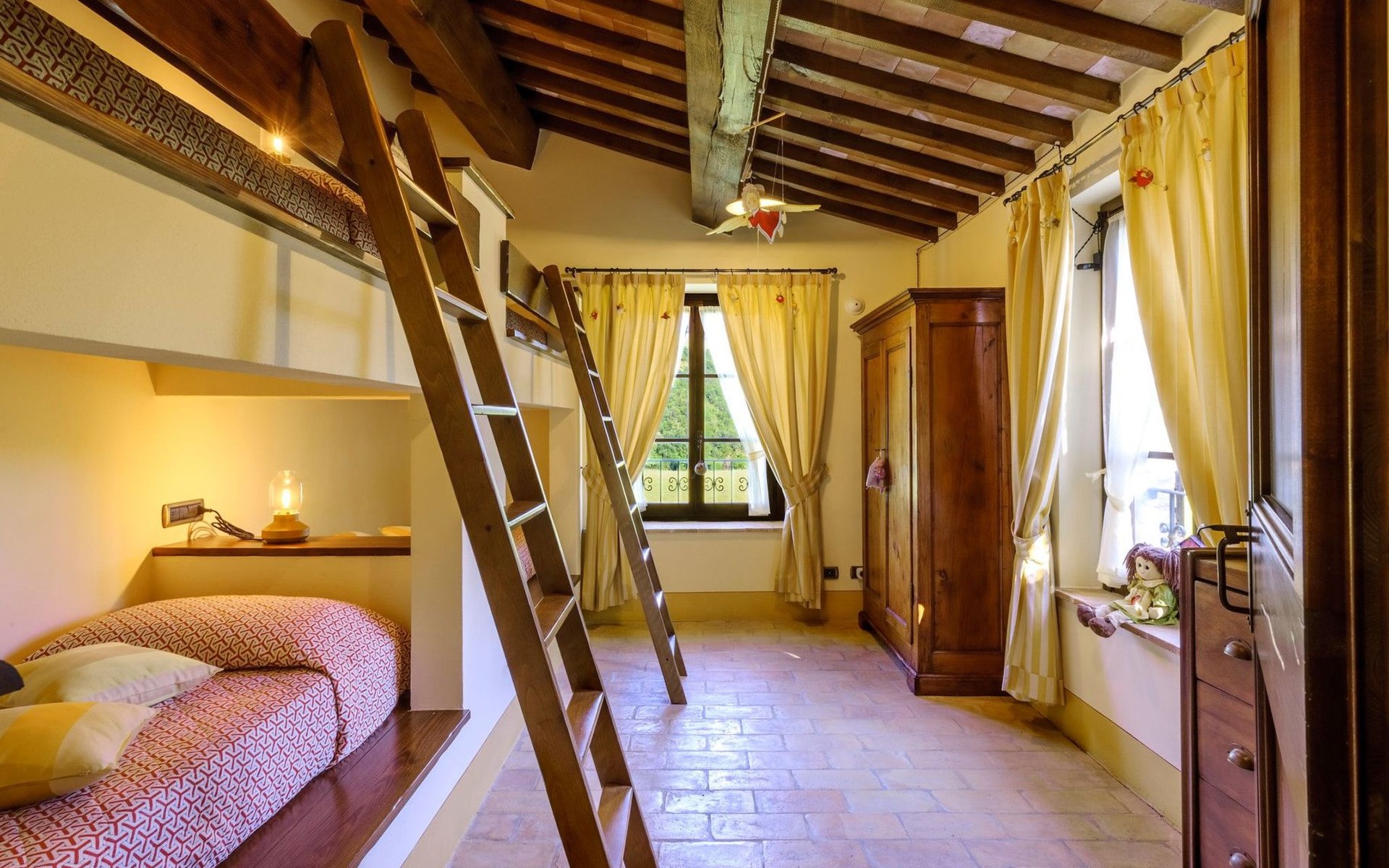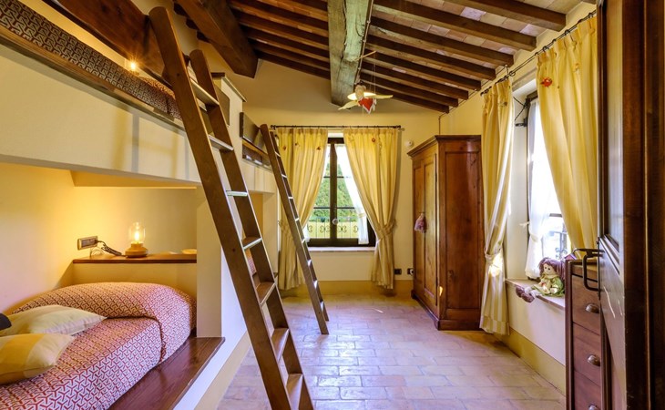 Die Villa erstreckt sich über zwei Etagen und bietet geräumige und funktionelle Zimmer, die mit rustikalem Geschmack eingerichtet und mit allem Komfort ausgestattet sind. Der große Außenbereich und die Unabhängigkeit der Familiensuite machen diese Residenz besonders vielseitig für Privatsphäre und Entspannung.