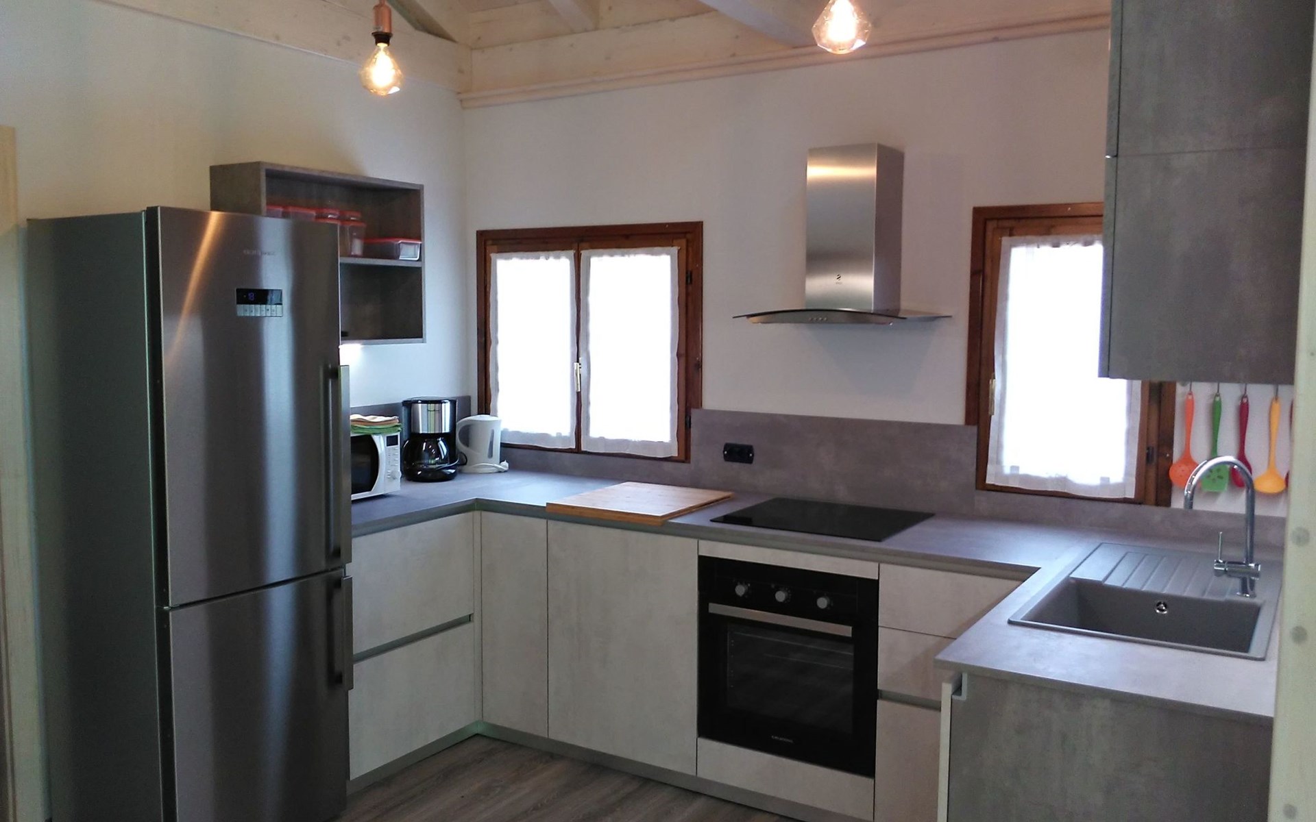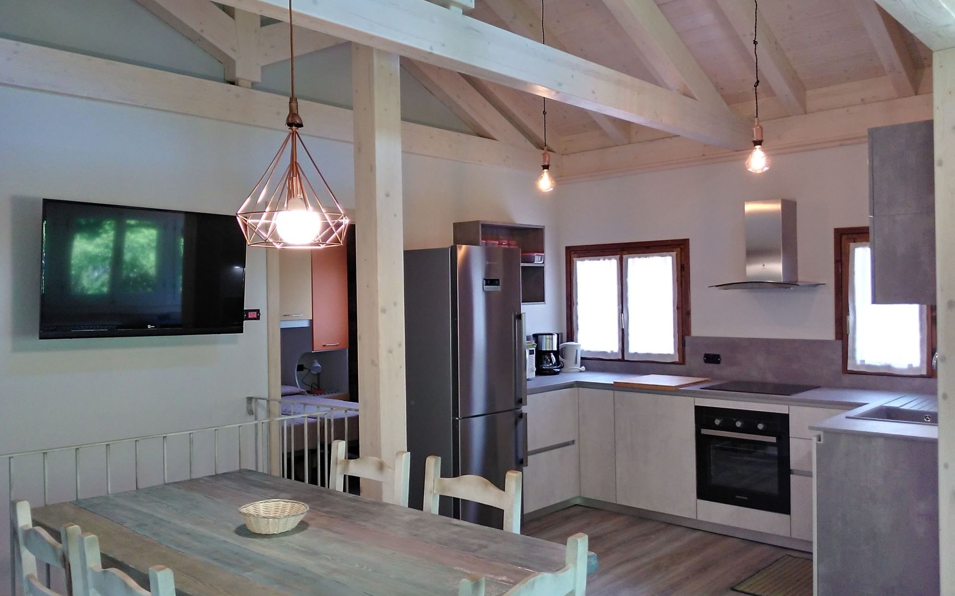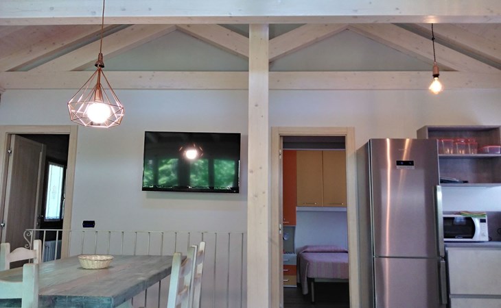 Im Inneren erstreckt sich Casa Nadia über 2 gemütliche Ebenen, die durch eine Holztreppe verbunden sind, die einen Hauch von Wärme und Eleganz verleiht. Das Erdgeschoss empfängt Sie in einer gemütlichen Umgebung, die aus einem Wohnzimmer mit Sofa, Satellitenfernsehen und einem großen Fenster besteht, das den Raum mit natürlichem Licht aus dem Garten draußen erhellt. Hier finden Sie auch eine praktische Waschküche mit Waschmaschine und ein geräumiges Badezimmer mit Toilette, Bidet, Doppelwaschbecken und einer großzügigen Duschkabine. Im ersten Stock erwartet Sie ein großzügiger Wohnbereich mit jeglichem Komfort: Sofa, Sessel, Esstisch, Sat-TV sowie eine voll ausgestattete Küche mit Kühlschrank, Gefrierschrank, Geschirrspüler, Elektrobackofen, Mikrowelle und Induktionskochfeld. Die 2 Schlafzimmer, eines mit Doppelbett und Brückenschrank und das andere mit zwei Einzelbetten, vervollständigen das Angebot und garantieren Ruhe und Privatsphäre.