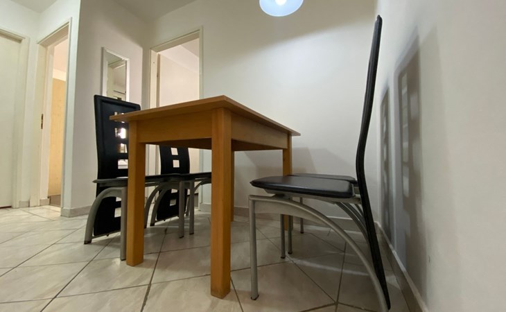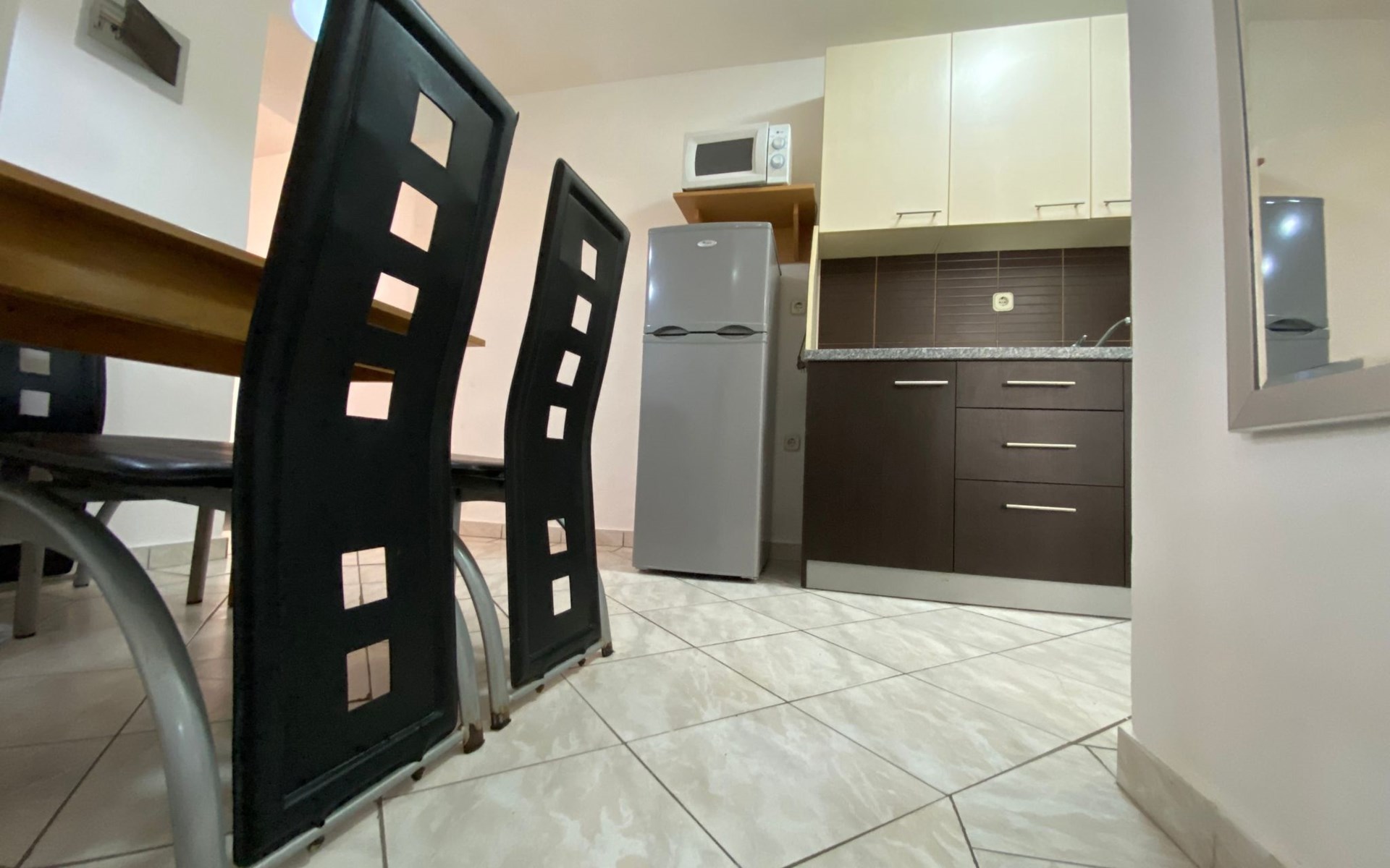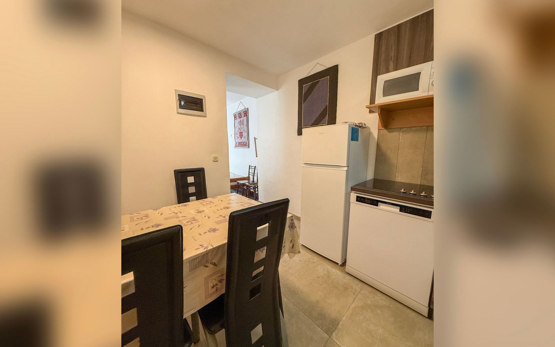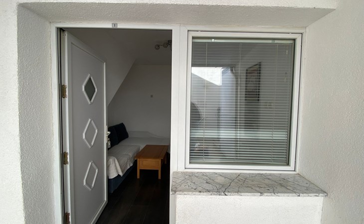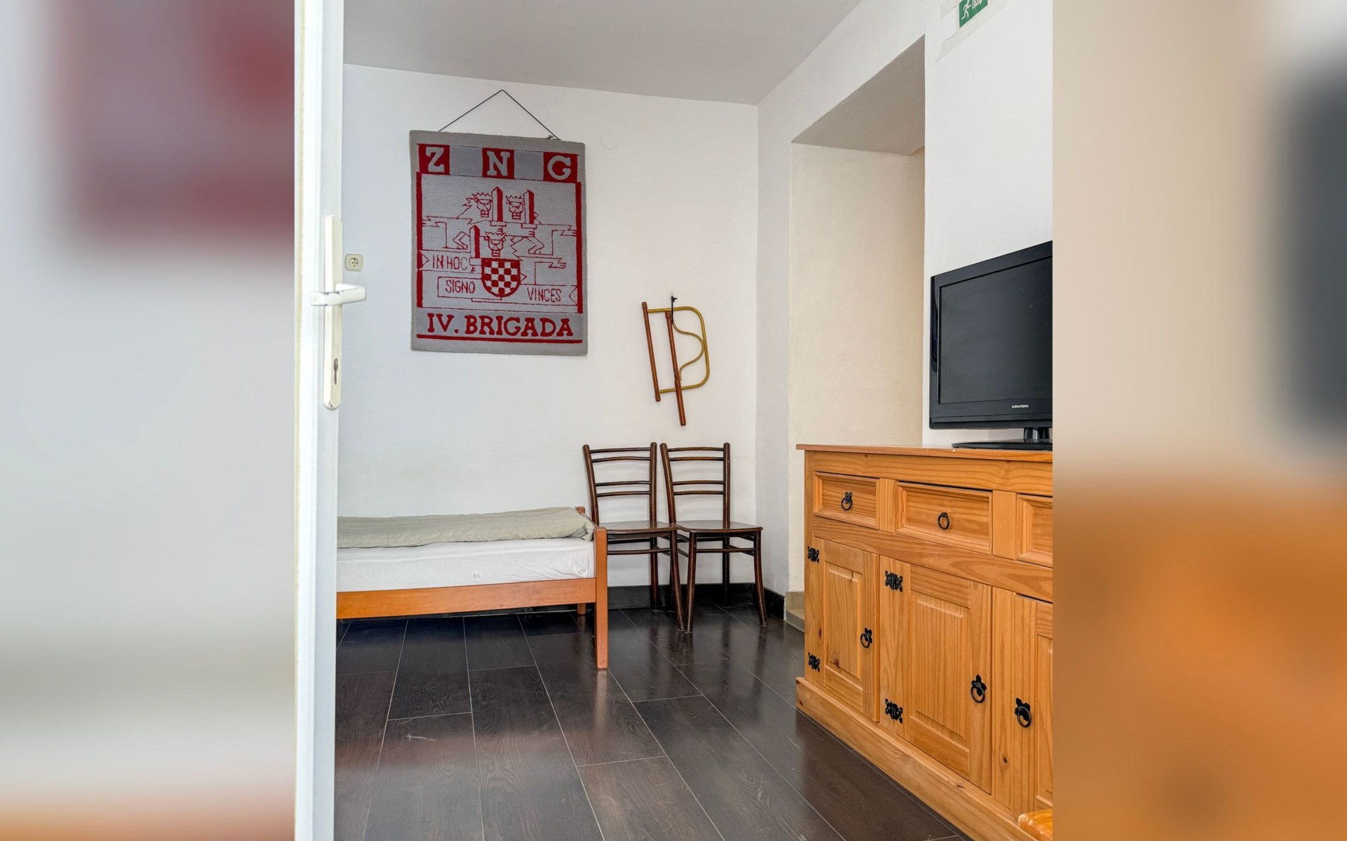Die Wohnung verfügt über ein separat zugängliches Schlafzimmer mit einem Doppelbett und ein weiteres Schlafzimmer mit zwei Einzelbetten, ein Bad/WC sowie einen großzügigen Wohnraum mit einer Schlafcouch, die eine zusätzliche Schlafmöglichkeit von circa 150 x 200 cm bietet. Die Küche ist mit allen grundlegenden Kochutensilien sowie einem Backofen, Kühlschrank, Tiefkühlschrank und einem Herd ausgestattet, damit Sie sich während Ihres Aufenthalts ganz wie zu Hause fühlen können. Für gemütliche Abendessen im Freien steht direkt vor der Wohnung ein Tisch mit Stühlen bereit.