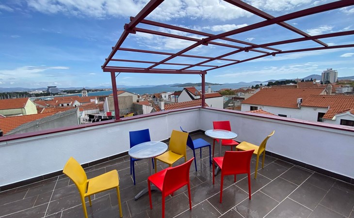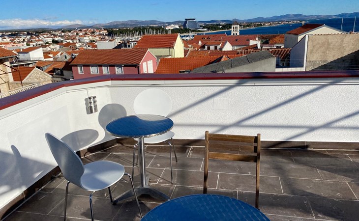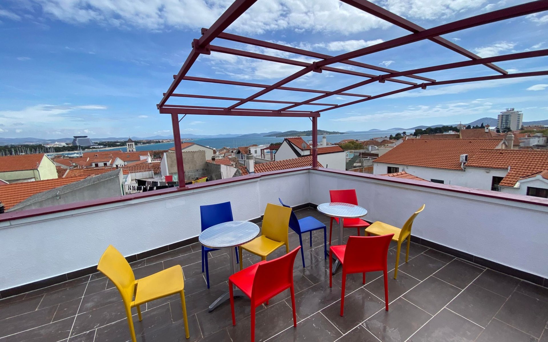Neben dem Innenkomfort gehört zu unserer Wohnung eine beeindruckende Dachterrasse. Ausgestattet mit Tischen, Stühlen, Liegestühlen und einem Grill, bietet sie die perfekte Kulisse für entspannte Stunden unter dem Himmel von Vodice. Ob Sie in der Sonne baden, im Schatten dösen oder gemeinsame Grillabende genießen wollen – diese Terrasse wird sicher zum Highlight Ihres Aufenthaltes.