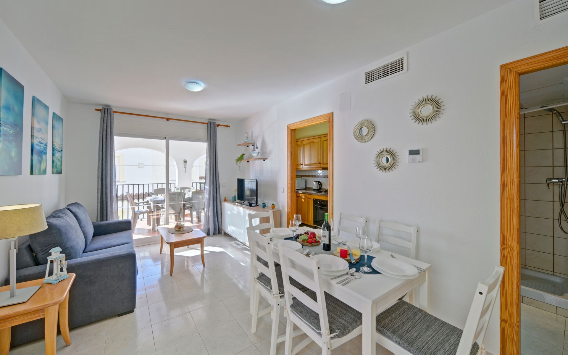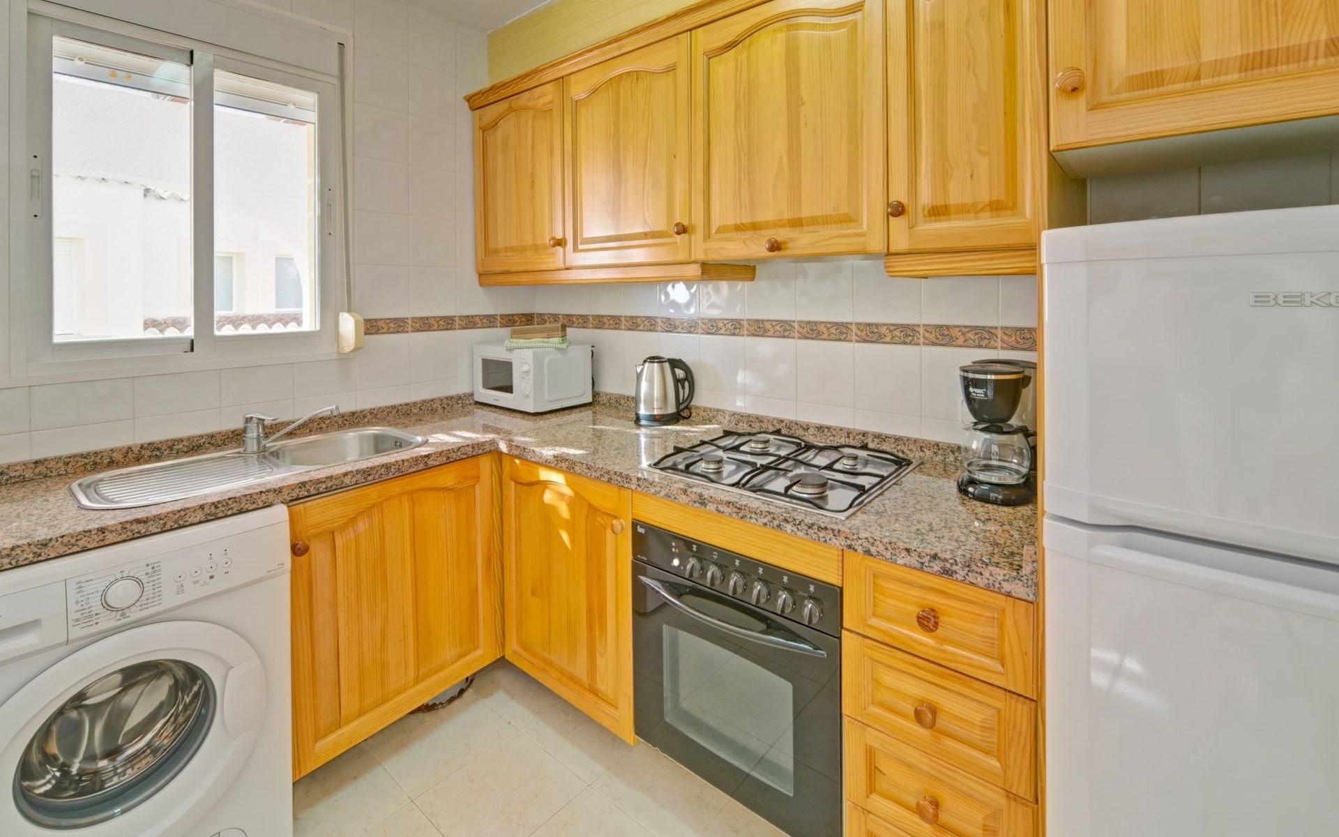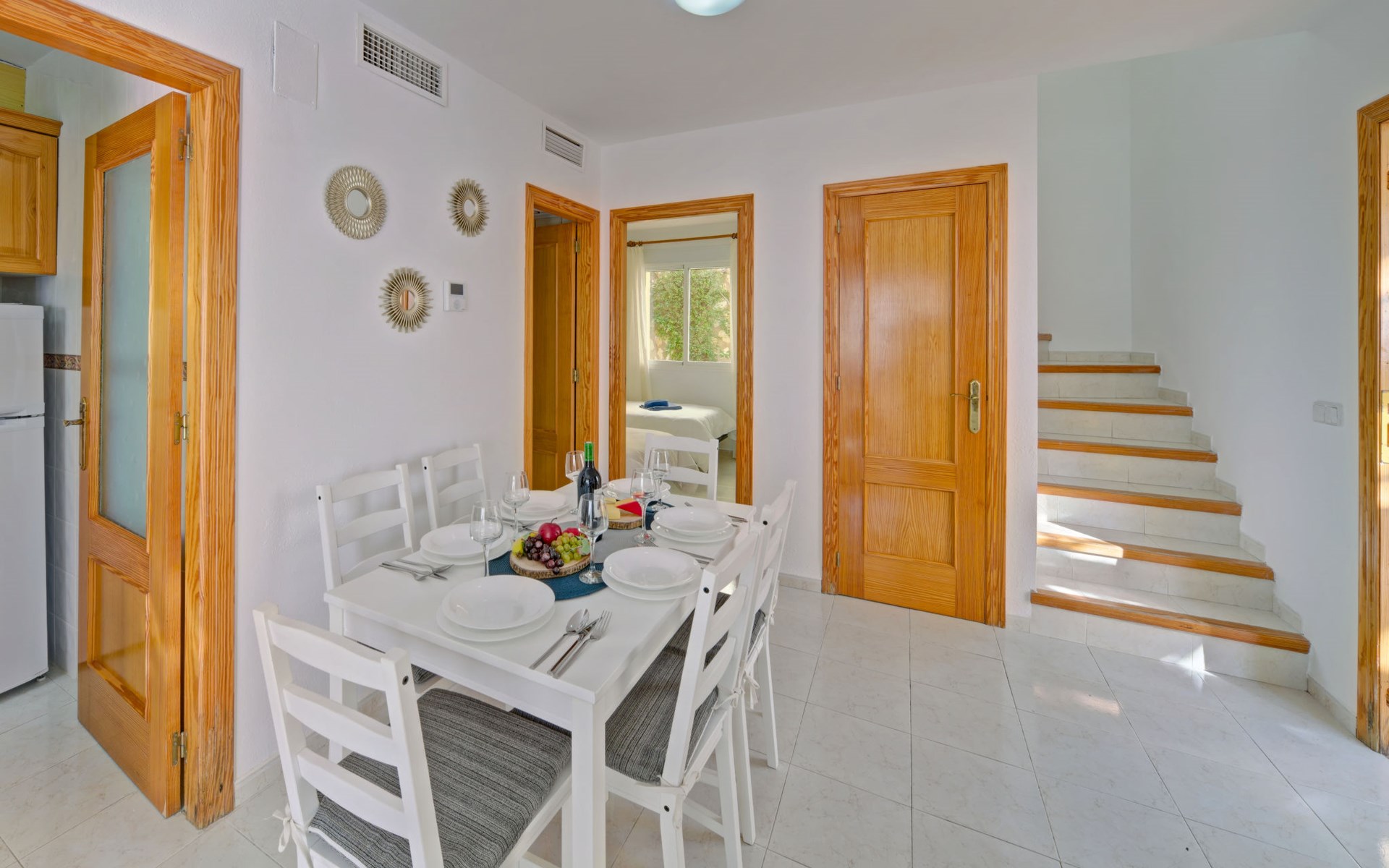 Gran Sol: Modernes Reihenhaus "Imperial Park". 3.3 km vom Zentrum von Calpe, belebte, sonnige, erhöhte Lage, 2.5 km vom Meer, 2.5 km vom Strand. Zur Mitbenutzung: grosser, gepflegter terrassierter Garten (eingezäunt), Naturgarten, 3 Schwimmbäder (saisonale Verfügbarkeit: 01.Jan. - 31.Dez. Öffnungszeiten Schwimmbad: 10:00-20:00) mit Innentreppe. Ungleichmässige Schwimmbadform, Kinderbecken, Aussendusche, Sitzplatz, Pergola, Gartenmöbel. Im Hause: Empfang, Fahrstuhl. Einkaufsgeschäft 2 km, Supermarkt 2 km, Restaurant 50 m, Bar 200 m, Café 50 m, Bushaltestelle 1.3 km, Sandstrand "Playa De La Fosa" 3 km, Tauchzentrum 1.5 km. Sporthafen 2.5 km, Jacht-Hafen 2.5 km, Golfplatz (18 Loch) 10 km, Surfschule 2.5 km, Segelschule 2.5 km, Tennis 2.8 km, Minigolf 3 km. Nahe gelegene Sehenswürdigkeiten: Aqualandia, Mundomar, Terra Mítica, Terra Natura, y Benidorm Palace (Benidorm). Bitte beachten: Fahrzeug empfohlen. Öffnungszeiten der Rezeption 10:00-15:00 Uhr. Geeignet für Familien. Bitte beachten: Bewachte Residenz. Weitere Unterkünfte sind buchbar. Alle Häuser/Wohnungen sind individuell eingerichtet. Die Nachbarschaft ist sehr lärmempfindlich. Ruhe und gutes Benehmen wird erwartet.