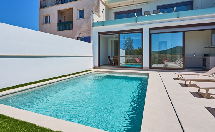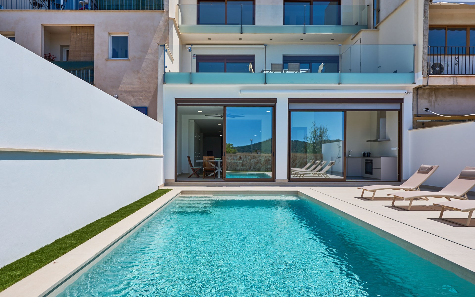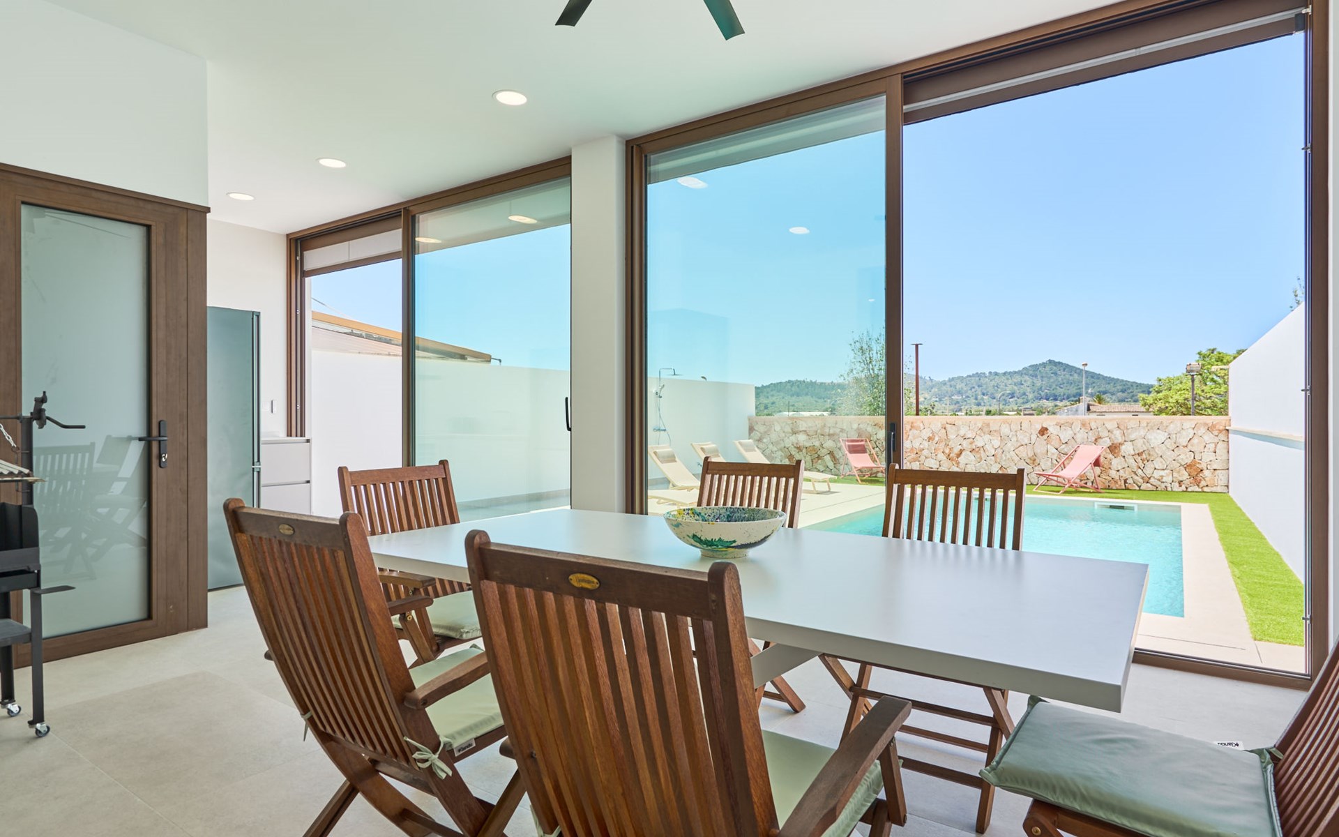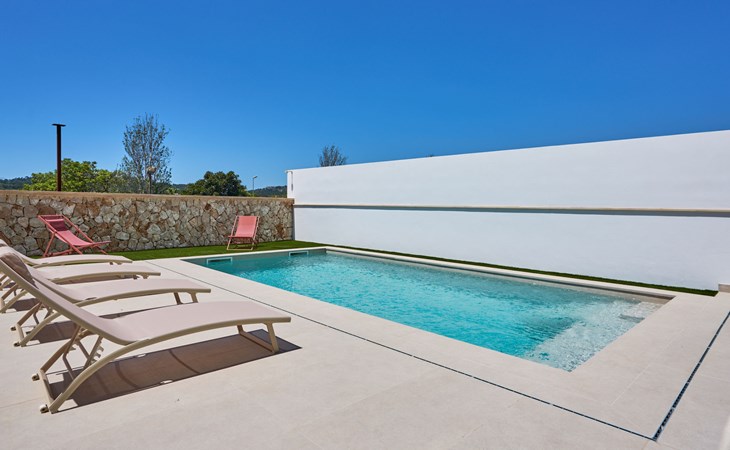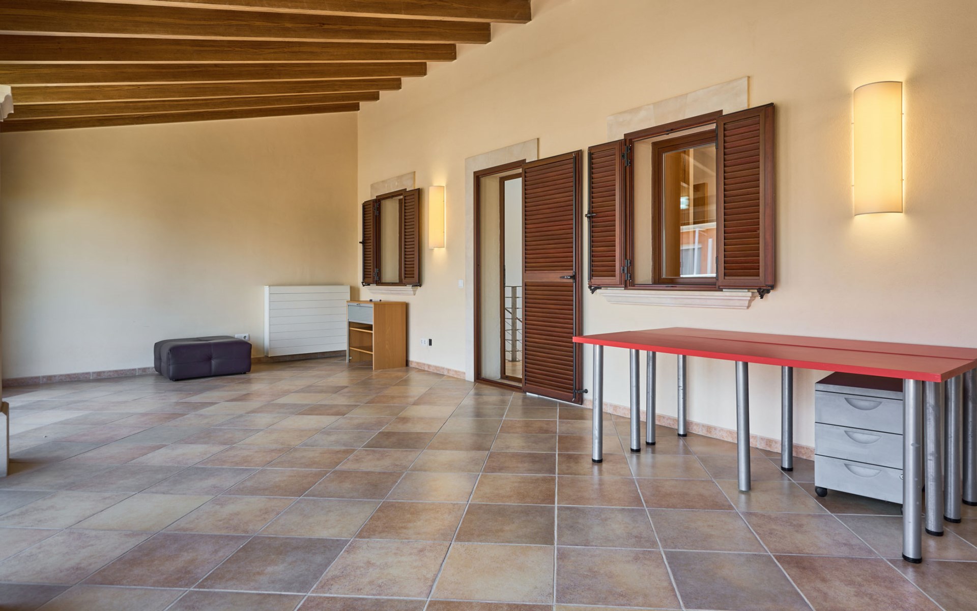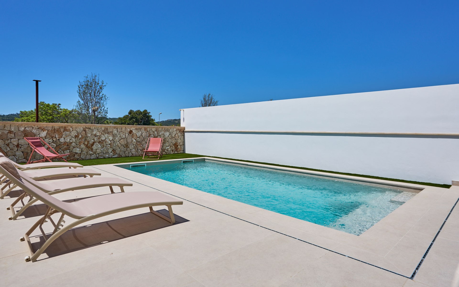 Porreras: Haus "Es Rafal", einseitig angebaut. Im Ort, 400 m vom Zentrum von Porreres, 9.5 km vom Zentrum von Campos, 20 km vom Zentrum von Manacor, 19 km vom Meer. Zur Alleinbenutzung: Grundstück 140 m2 (eingezäunt), Schwimmbad eckig (3 x 7 m, 145 - 145 cm tief, saisonale Verfügbarkeit: 01.Jan. - 31.Dez.) mit Meerwasser. WC im Poolbereich, Aussendusche, Pergola, Terrasse, Gartenmöbel, Grill. Im Hause: Einstellraum für Fahrräder. Parkplatz, Einzelgarage. Supermarkt 300 m, Bushaltestelle 700 m, Sandstrand "Es Trenc" 19 km. Bitte beachten: Fahrzeug empfohlen.