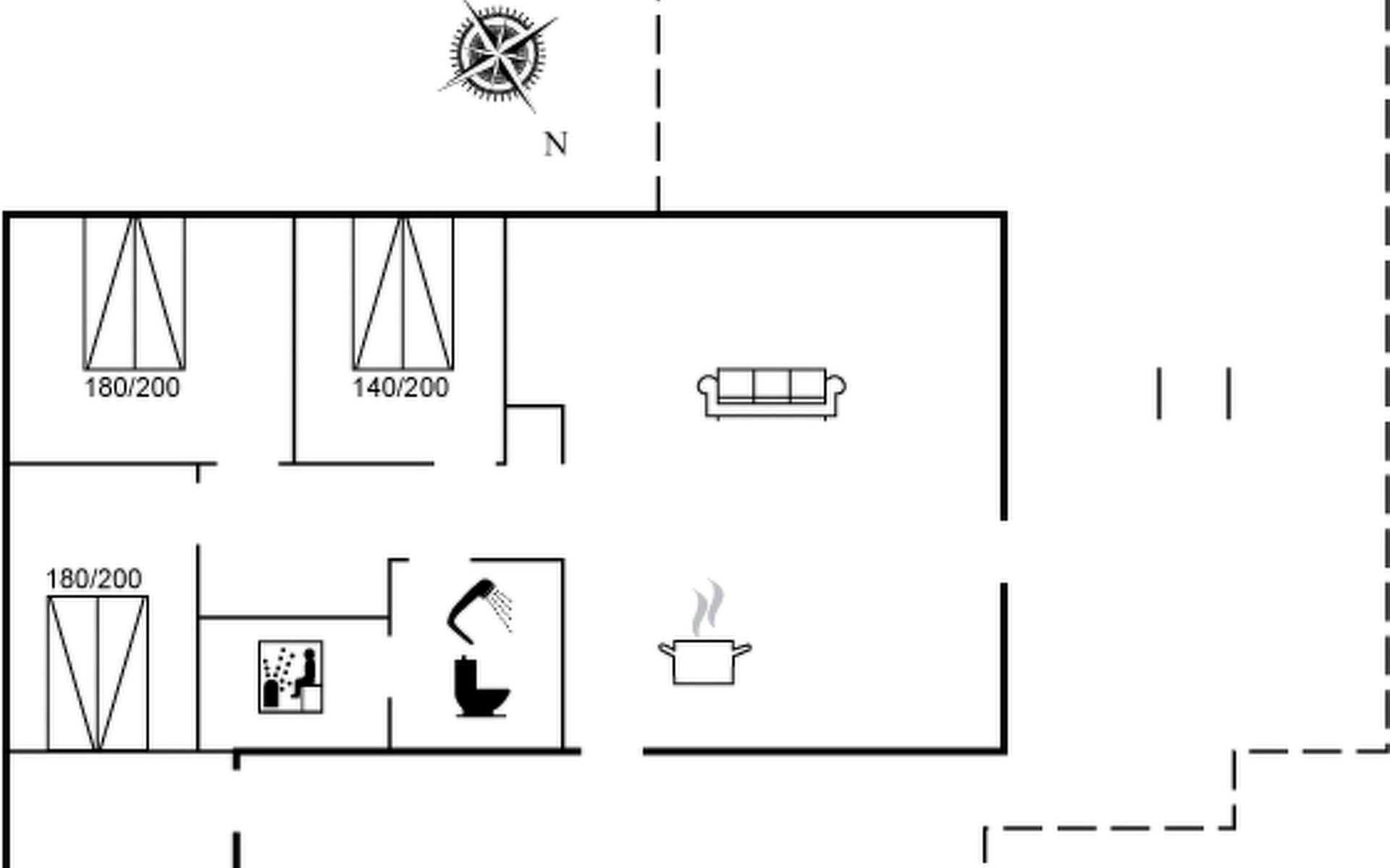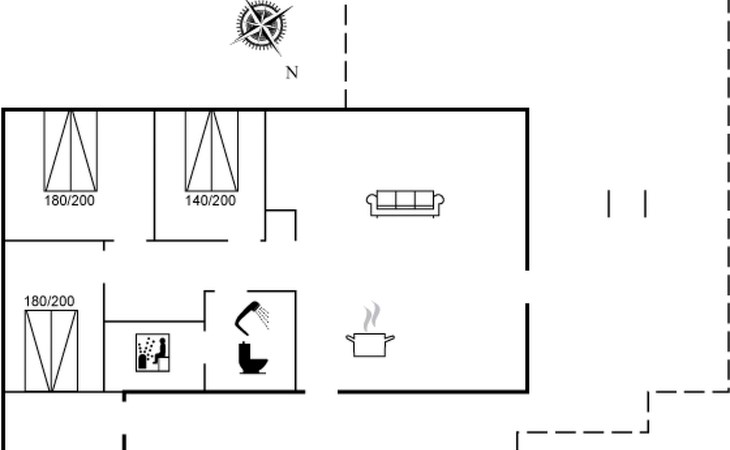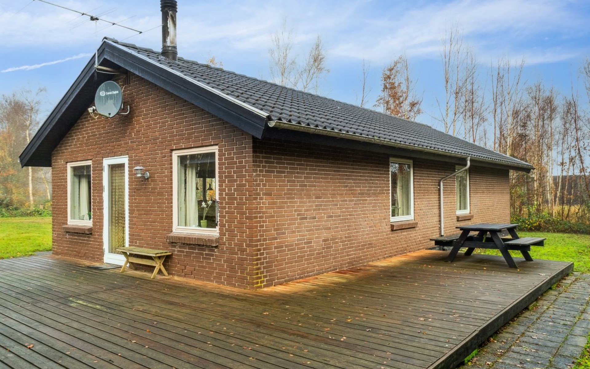 Einfamilienhaus, Baujahr 1987. Zur Alleinbenutzung: naturbelassenes Grundstück 3'000 m2. Terrasse (50 m2), Grill. Im Hause: Sauna, Waschmaschine, Wäschetrockner. Parkplatz beim Haus. Carport. Lebensmittelgeschäft 3 km. Golfplatz 20 km. Der Besitzer akzeptiert keine Jugendgruppen.
