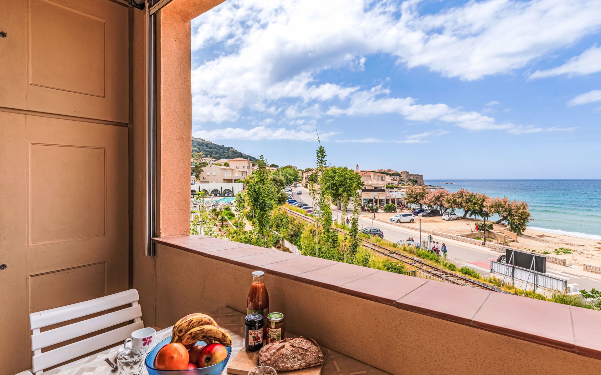 Algajola: Appartementhaus "Bella Vista", auf 3 Stockwerken. 50 m vom Meer, 50 m vom Strand, Strasse zu überqueren. Parkplatz. Lebensmittelgeschäft 280 m, Supermarkt 450 m, Restaurant 100 m, Bäckerei 450 m, Bushaltestelle, Bahnstation 600 m, Sandstrand "Aregno" 50 m. Golfplatz (18 Loch) 20 km, Segelschule 100 m. Nahe gelegene Sehenswürdigkeiten: L'Ile Rousse 8 km, Calvi 16 km. Wandergebiete: GR20 20 km. Bitte beachten: Fahrzeug empfohlen.
