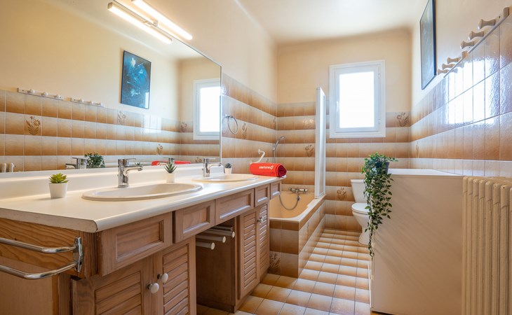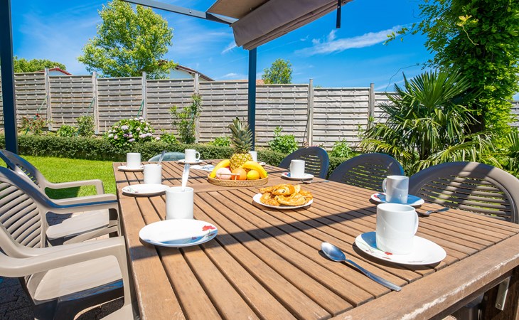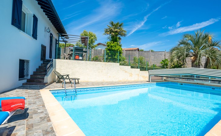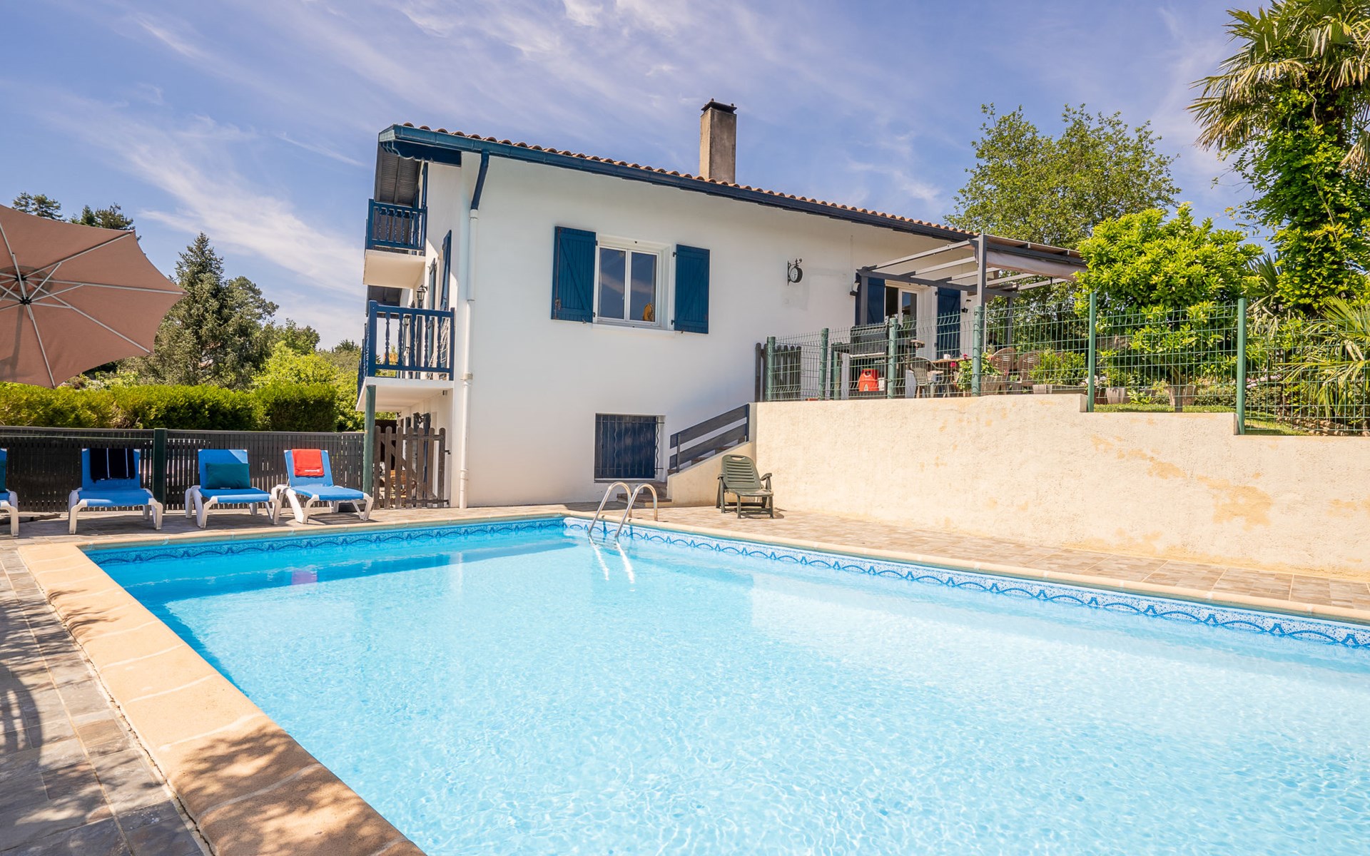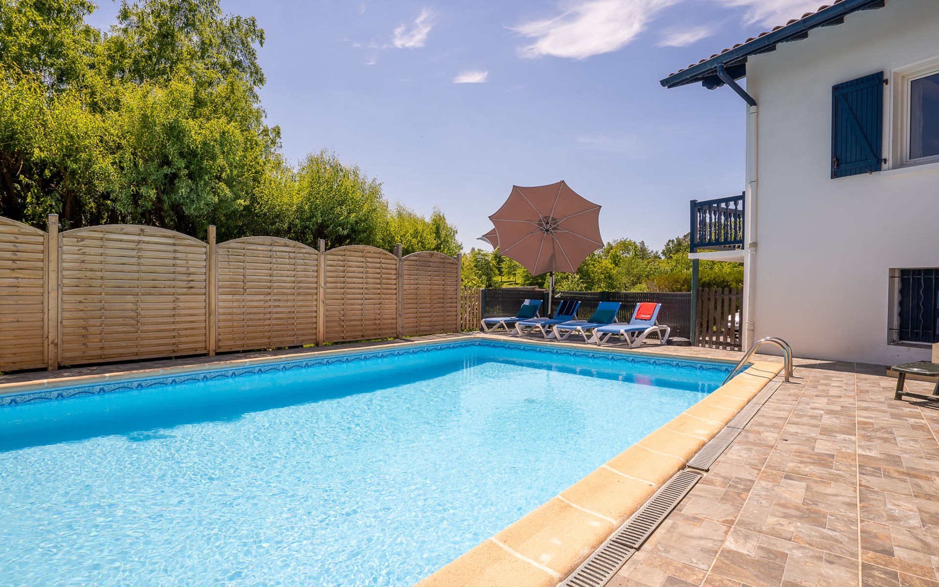 Arcangues 7 km von Bidart: Haus "Geroko". Oberhalb von d'Arcangues, ruhige, sonnige Lage, 8 km vom Meer, 8 km vom Strand, in einer Sackgasse. Zur Alleinbenutzung: gepflegter Garten 200 m2, Hallenbad eckig (10 x 5 m). Tischtennis, Terrasse (20 m2), Gartenmöbel, Grill (Schaukel), Parkplatz (für 3 Autos). Lebensmittelgeschäft 1.6 km, Supermarkt 8 km, Restaurant 1.4 km, Café 1.4 km, Fußgängerzone 1.3 km, Bushaltestelle "Arcangues Bourg" 1.3 km, Bahnstation "Biarritz" 6 km, Sandstrand "Bidart" 8 km. Golfplatz (18 Loch) 1.8 km, Surfschule 9 km. Nahe gelegene Sehenswürdigkeiten: Chateau d'Arcangues 1.4 km, Moulin de Bassilour 4.4 km, Aquarium 10 km. Bitte beachten: Fahrzeug empfohlen. Die Schlüsselübergabe findet bei der Agentur Interhome in Bidart statt, 8 km. Besitzer wohnt in separatem Hausteil.