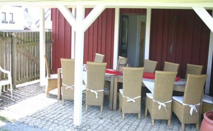 Der liebevoll gestaltete Außenbereich des Hauses bietet eine Terrasse mit Grillplatz und eine Liegewiese, die zum Verweilen und Genießen der sonnigen Tage einlädt. Mit einem Spielplatz im Dorf wird der Aufenthalt auch im Freien zu einem besonderen Erlebnis.