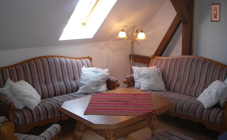 Im Inneren verzaubert das Haus Hermann mit seiner gemütlichen Einrichtung im Landhausstil, die sich harmonisch über Erd-, Ober- und Dachgeschoss verteilt. Es bietet ausreichend Platz für bis zu 16 Personen, ideal für Familien und Gruppen, die wertvolle Zeit miteinander verbringen möchten. Die Ausstattung lässt keine Wünsche offen: eine Bettcouch im Wohnzimmer bietet Platz für zwei Personen; SAT-Anschluss, TV/Radio, sowie eine umfassend ausgestattete Küche garantieren einen sorglosen Aufenthalt. Die Schlafzimmer sind mit großem Komfortanspruch eingerichtet, einschließlich der Möglichkeit, Kinderreisebetten aufzustellen.