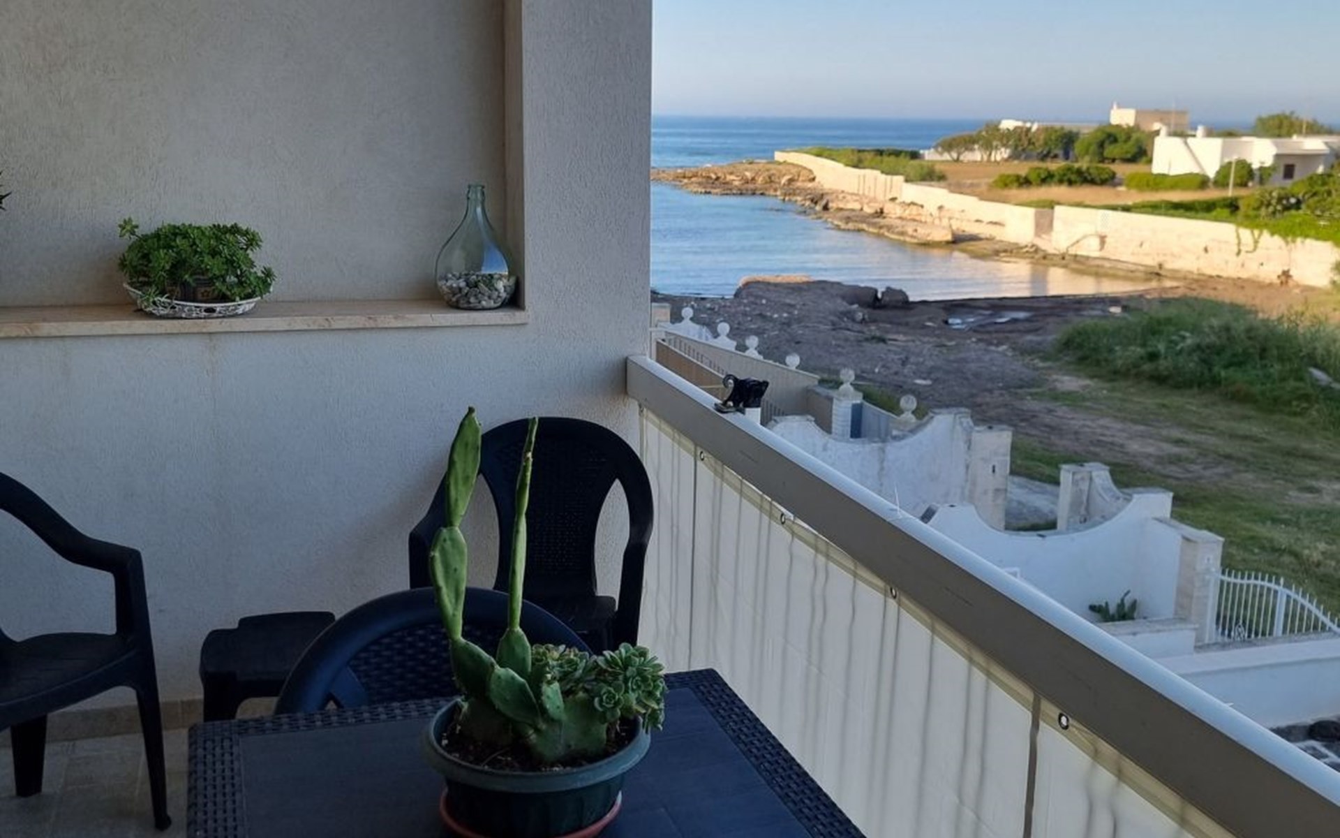 Eine der Stärken der Unterkunft ist der Balkon mit direktem Meerblick, der mit Sesseln, Sonnenliegen und Gartenmöbeln ausgestattet ist: ein perfekter Ort, um sich in der Sonne zu entspannen, einen Aperitif bei Sonnenuntergang zu trinken oder ein romantisches Abendessen unter dem Sternenhimmel zu genießen.