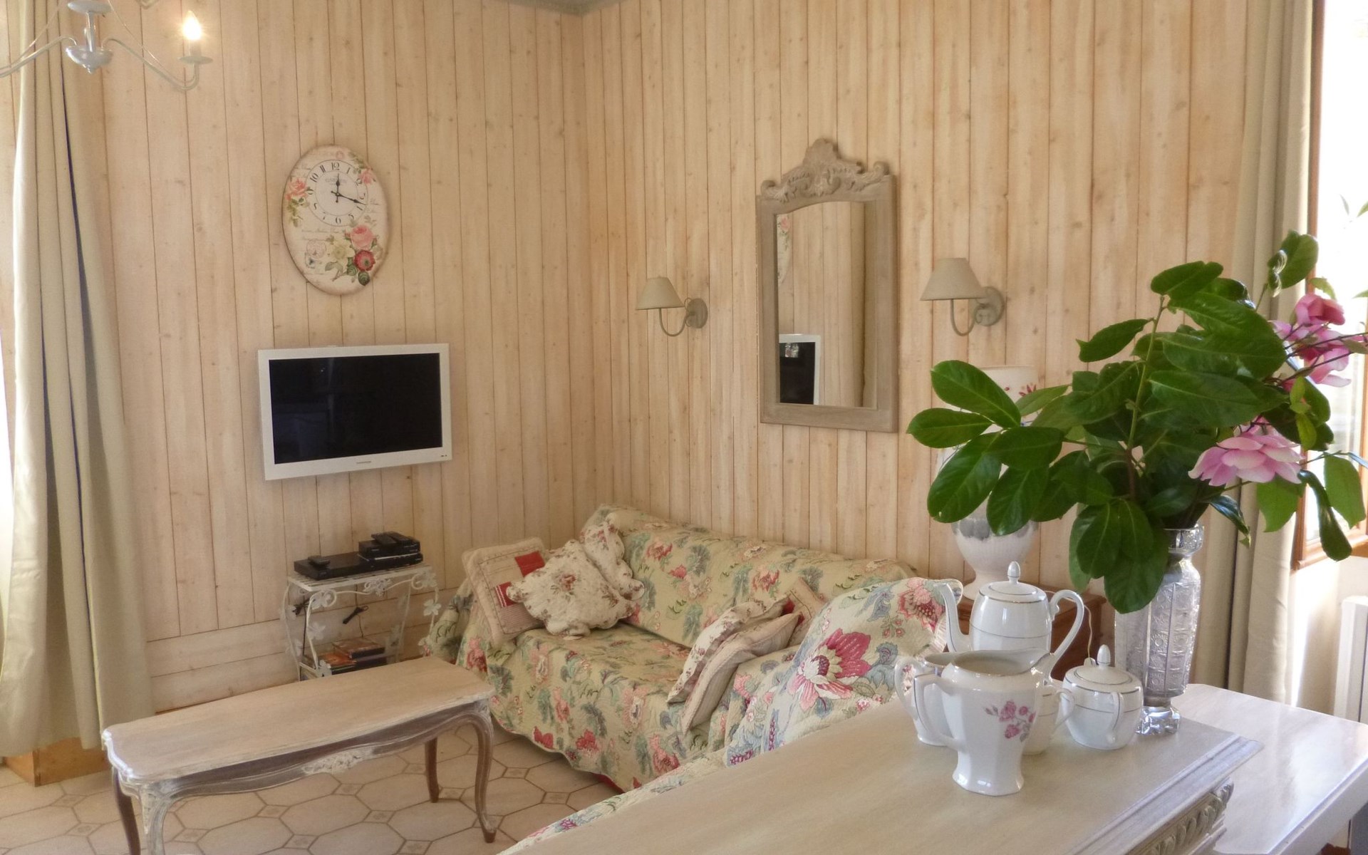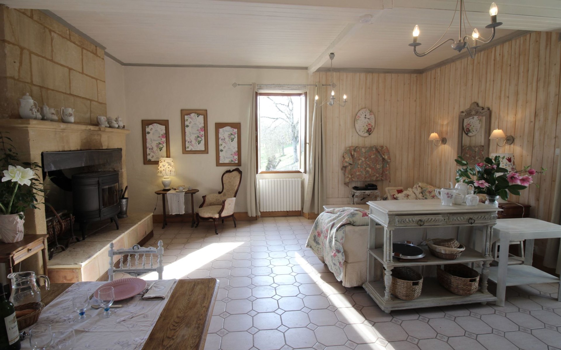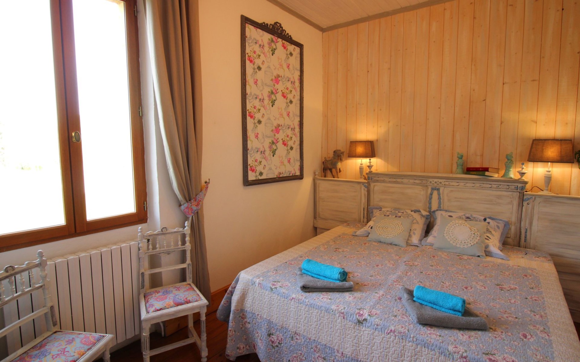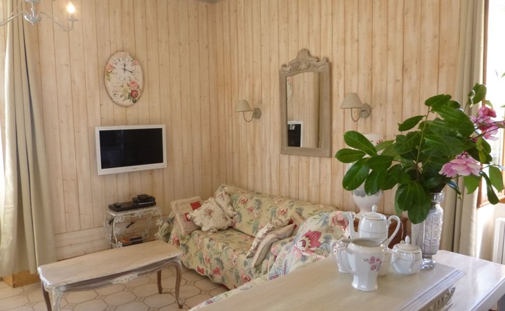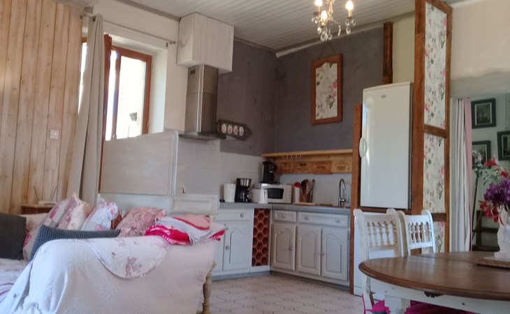 Das freistehende Ferienhaus verfügt über eine Wohnfläche von 95m² für 4 Personen. Es besteht aus einem großen Wohnzimmer mit offener Küche, 2 Schlafzimmern, 1 Duschbad, 1 WC und einem großen Außenbereich. Bettwäsche und Handtücher sind im Preis inbegriffen. Das Wohnzimmer mit seinen Sofas und dem Esstisch ist um den traditionellen alten Kamin mit einem Holzofen gruppiert. Hier können Sie kuschelige Abende verbringen, WIFI, Radio und DVD-Player. Die Küche verfügt über ein Cerankochfeld, eine Dunstabzugshaube, eine Mikrowelle, einen Kühlschrank mit Gefrierfach, einen Geschirrspüler und alle notwendigen Utensilien. Die Unterkunft verfügt über einen Fernseher mit Internetbox, der Zugang zu einer Reihe von Kanälen bietet, darunter französische und ausländische Sender: France TV, Arte ..... . Auf der anderen Seite des Hauses befinden sich die Schlafzimmer. Das erste Schlafzimmer hat zwei Einzelbetten (90 x 200cm), einen Schrank und zwei Stühle. Das zweite Schlafzimmer hat einen Schrank mit Blumenmuster, zwei Stühle und zwei Einzelbetten (90 x 190cm). Die Matratzen sind von einem neuen Standard. Außerdem gibt es eine große Dusche, ein Waschbecken und ein separates WC.
