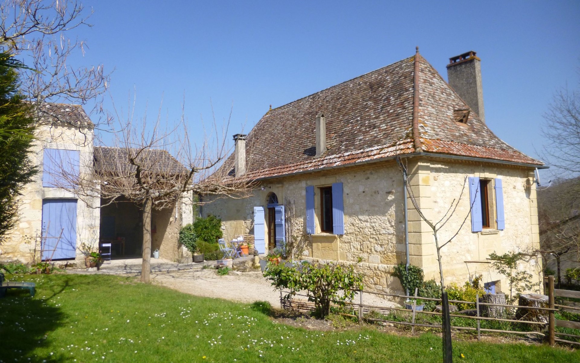 Am Fuße des örtlichen Schlosses gibt es einen See mit einer schattigen Wiese, die im Sommer zum Essen einlädt. Rund um das Dorf und in der Umgebung gibt es viele Wander- und Radwege. Die Lage im Tal der Dordogne macht das Haus zu einem idealen Ausgangspunkt, um die Region Périgord mit ihren Sehenswürdigkeiten zu erkunden, von denen viele weniger als 25 km entfernt sind. Wenn Sie von Ihren Reisen zurückkehren, können Sie die Ruhe und den Komfort des Hauses genießen und sich in den nahegelegenen Restaurants mit ihren regionalen Spezialitäten und Weinen verwöhnen lassen. Das Restaurant "Les Marronniers" bietet preisgünstige Menüs zur Mittagszeit und am Abend. Im 3 km entfernten Nachbarort gibt es zwei Lebensmittelgeschäfte, zwei Bäckereien,Viehzucht, Zeitungen, Obst und Gemüse. Dort können Sie auch Brot, Fleisch von Bauern und lokal zubereitete Gerichte kaufen.