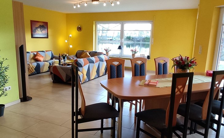 Wir bieten ihnen ein großzügiges, komfortables Nichtraucher-Ferienhaus mit zwei abgeschlossenen Wohneinheiten (EG + DG) direkt am Kiessee auf einem über 1000 m² großen Grundstück. Genießen Sie die Ruhe und die Natur an der Nordseeküste/Ostfriesland. Unser Haus besticht durch seine räumliche Großzügigkeit, die hochwertige Einrichtung mit Liebe zum Detail, ausreichend bequeme Sitzmöglichkeiten sowie einen unvergesslichen Blick auf den Kiessee. Eine massive Holzsitzgruppe zum Träumen steht Jedermann zur Verfügung.