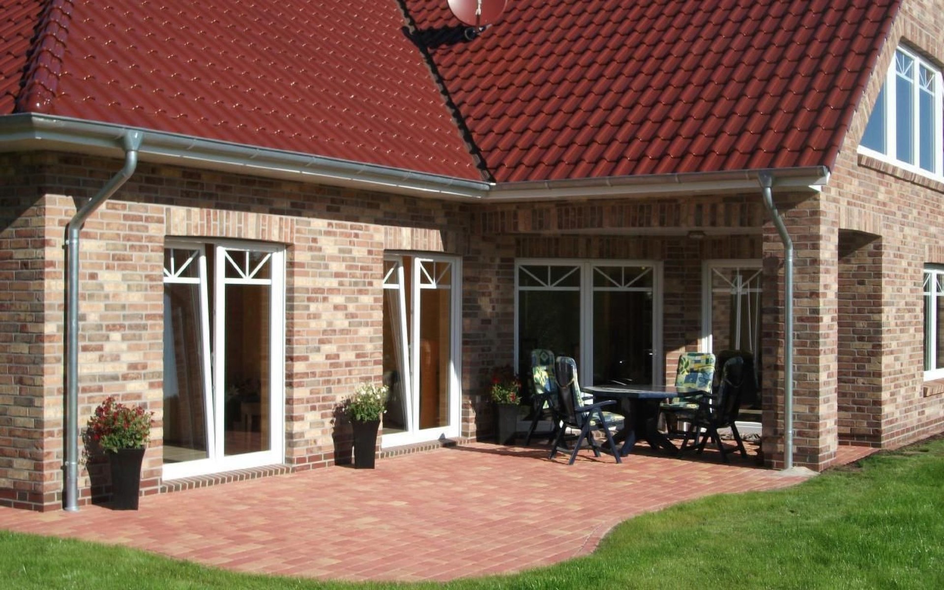 Beide Wohnungen sind eigenständig und daher separat buchbar. Großfamilien, Geschäftsleute und Freunde können das gesamte Haus (EG + DG) buchen. Jede Wohnung hat seine eigene Terrasse und somit seine Privatsphäre.
