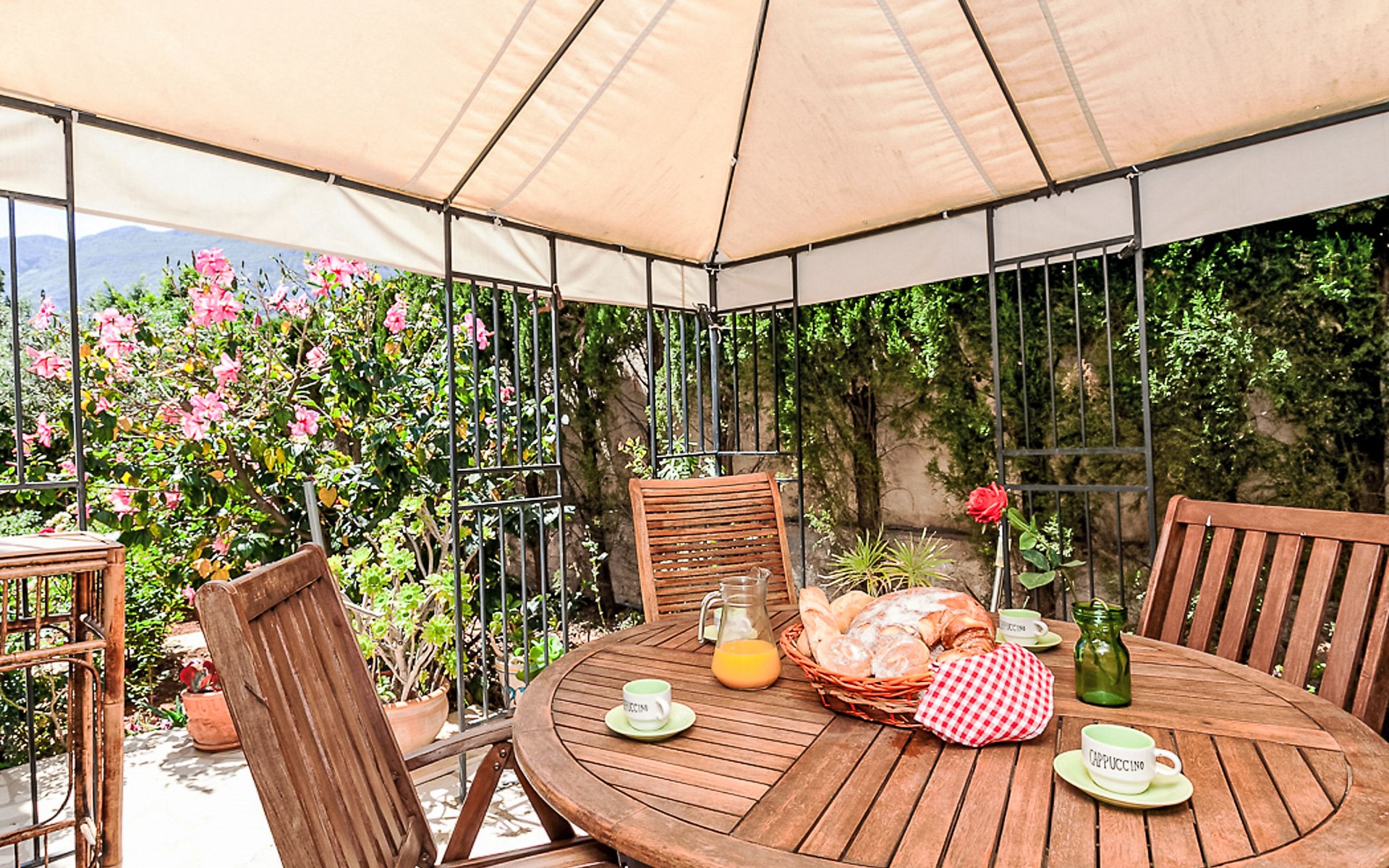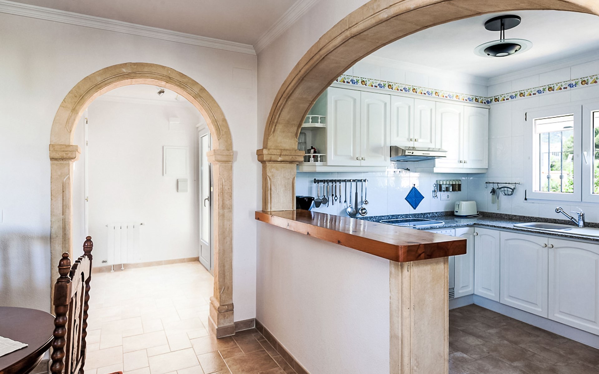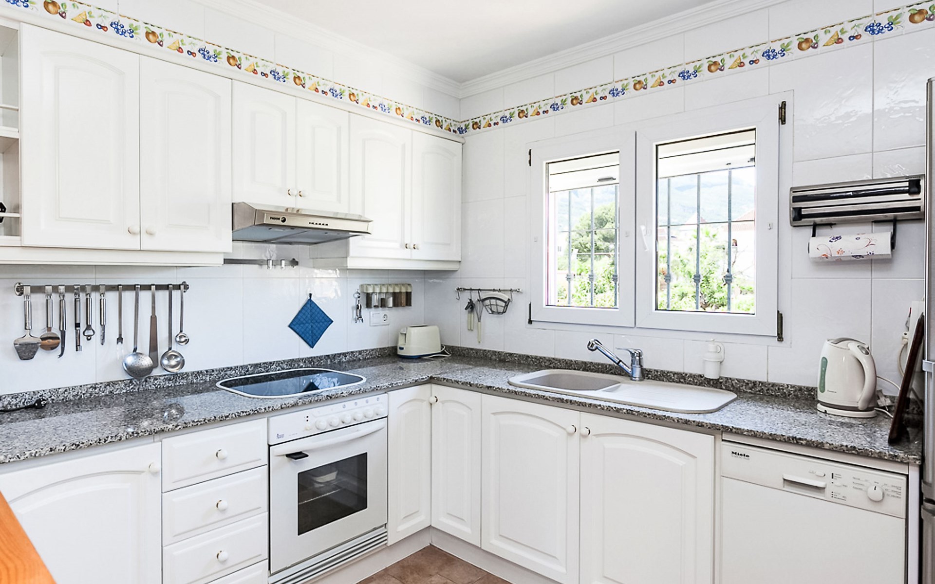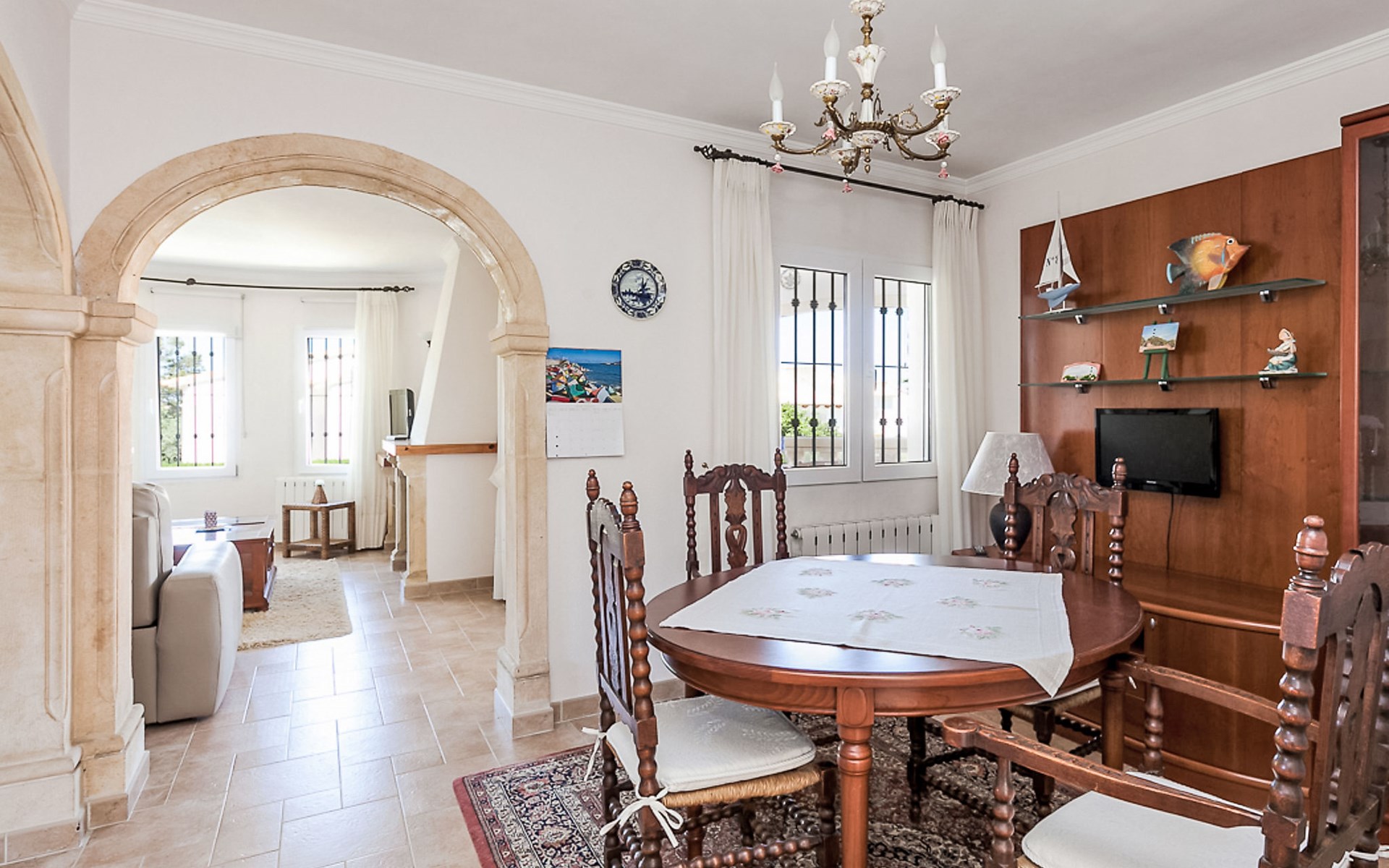 Gemütliche, sehr komfortable Villa "Tulipanes". Im Ort, 500 m vom Zentrum von de Dënia, ruhige, sonnige Lage im Villenviertel. Zur Alleinbenutzung: schöner, gepflegter Garten (eingezäunt) mit Blumen und Bäumen, Schwimmbad eckig (4 x 8 m, 180 cm tief, saisonale Verfügbarkeit: 01.Jan. - 31.Dez.). Aussendusche, Laube, Gartenmöbel, Poolpflege durch den Besitzer/Gärtner. Treppenweg (13 Stufen) bis zum Haus. Parkplatz auf dem Grundstück, Einzelgarage. Supermarkt, Einkaufszentrum, Restaurant, Bar 300 m, Bushaltestelle 1.8 km, Bahnstation 1.8 km, Fähre 3.6 km. Sporthafen 800 m, Surfschule, Segelschule. Der Besitzer akzeptiert keine Jugendgruppen.