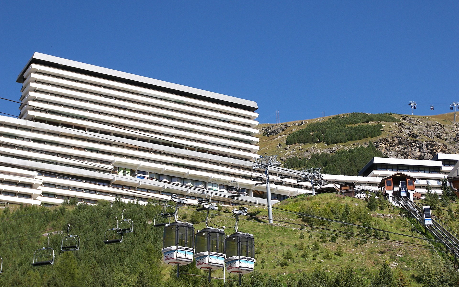 Residenz "Brelin". Erhöhte Lage, direkt am Skigebiet. In der Anlage: Restaurant, Einkaufsmöglichkeit, Fahrstuhl, Skiraum. Öffentliche Parkplätze. Lebensmittelgeschäft 20 m, Einkaufszentrum, Restaurant 250 m, Bushaltestelle "Gare routière Les Menuires" 1 km. Sportzentrum 500 m, Skisportanlagen 50 m, Skipisten 20 m. Bekannte Skigebiete sind gut erreichbar: 3 Vallées. Bitte beachten: Das Foto ist nur ein Hausbeispiel. Weitere Unterkünfte sind buchbar. Die Residenz "Brelin" ist mit dem Zentrum "La Croisette" durch einen öffentlichen Aufzug (gratis) verbunden.