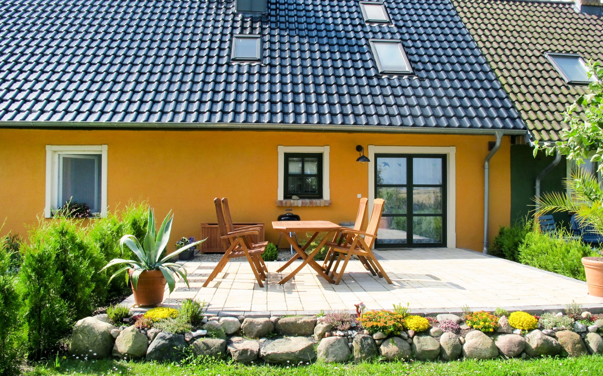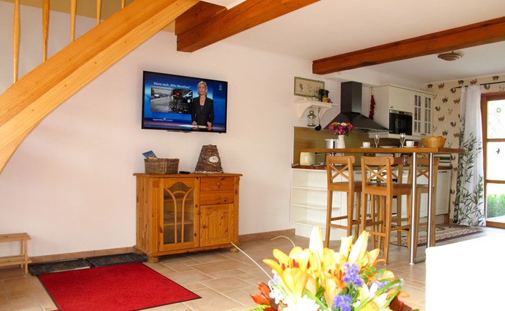 Gemütliches Reihenhaus "Tribbevitz". Im Ortsteil Tribbewitz, am Ortsrand, 3.5 km vom Zentrum von Neuenkirchen, 15 km vom Zentrum von Gingst, 8 km vom Meer. Zur Alleinbenutzung: Grundstück 200 m2 mit Obstgarten, Liegewiese, Parkplatz auf dem Grundstück. Einkaufsgeschäft 3 km, Supermarkt 15 km, Restaurant 3.5 km, Bushaltestelle "Trent" 7 km, Sandstrand 45 km, Badebucht 8 km. 1 Parkplatz kostenlos, zusätzlicher Parkplatz möglich gegen Gebühr (maximal 1 Auto).