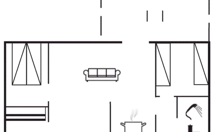 Feriendorf, Baujahr 1973. 200 m vom Meer. Zur Alleinbenutzung: Terrasse (16 m2). Lebensmittelgeschäft 2 km. Der Besitzer akzeptiert keine Jugendgruppen.