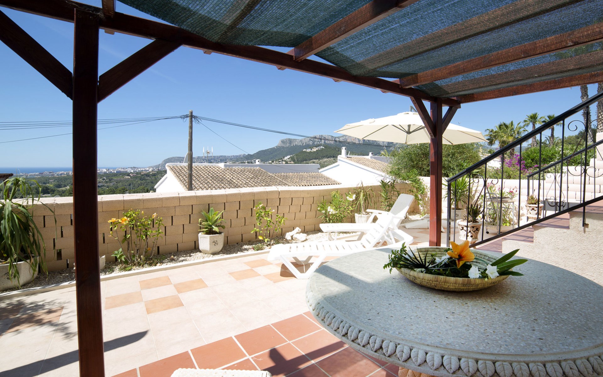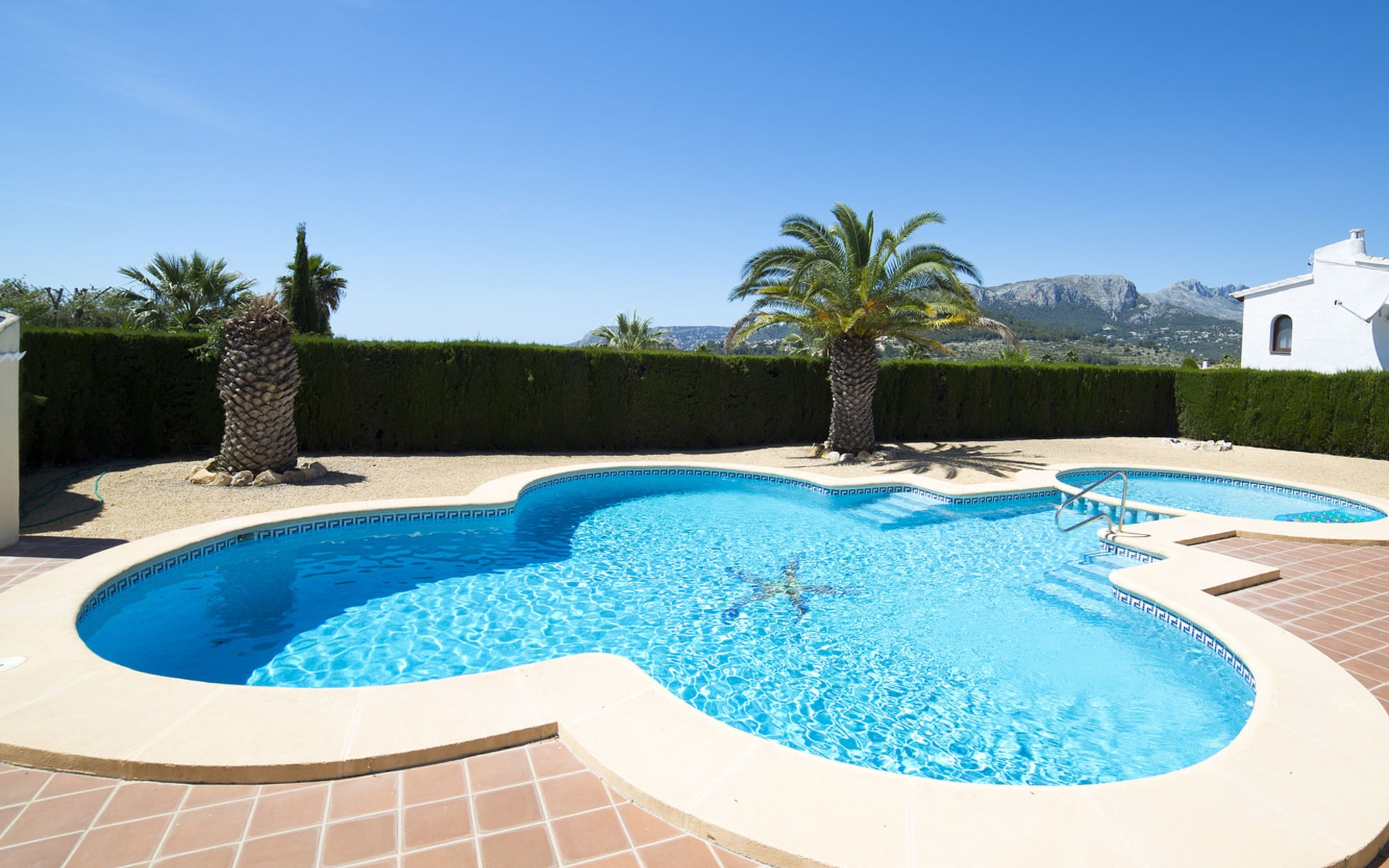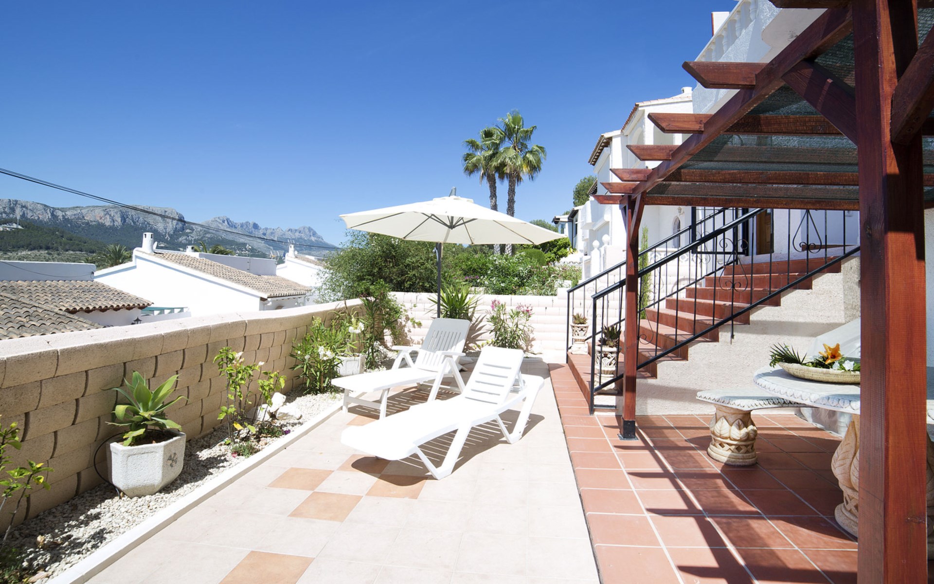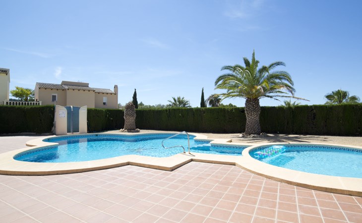 Empedrola: Schönes, komfortables Reihenhaus. 38 Häuser im Ferienresort. Im Ort, 6.2 km vom Zentrum von Calpe, ruhige, sonnige Lage im Villenviertel, 4 km vom Meer, 4.5 km vom Strand. Zur Mitbenutzung: Schwimmbad (saisonale Verfügbarkeit: 01.Jan. - 31.Dez.). Aussendusche. Zur Alleinbenutzung: Grundstück (eingezäunt). Einkaufsgeschäft 3.8 km, Supermarkt 4 km, Restaurant 2 km, Bar 2 km, Bäckerei 3.8 km, Café 2 km, Internet-Café 2 km, Biergarten 2 km, Sandstrand "Playa de la Fossa" 4.5 km, Tauchzentrum 5.4 km. Sporthafen 5.4 km, Jacht-Hafen 5.4 km, Golfplatz (9 Loch) 9.6 km, Surfschule 5.4 km, Segelschule 5.4 km, Reitstall 1.5 km, Wanderwege ab Haus 100 m. Nahe gelegene Sehenswürdigkeiten: Aqualandia, Mundomar, Terra Mítica, Terra Natura, Benidorm Palace (Benidorm). Wandergebiete: Peñon de Ifach. Jugendgruppen nur auf Anfrage. Bitte beachten: Ferienwohnung Ref. ES9730.435.2 befindet sich auf dem gleichen Grundstück. In dieser Anlage zusätzlich mietbar: 2 Bungalows.