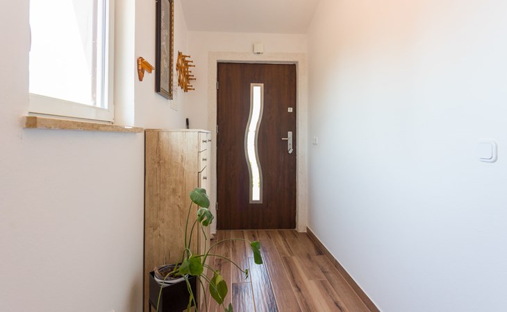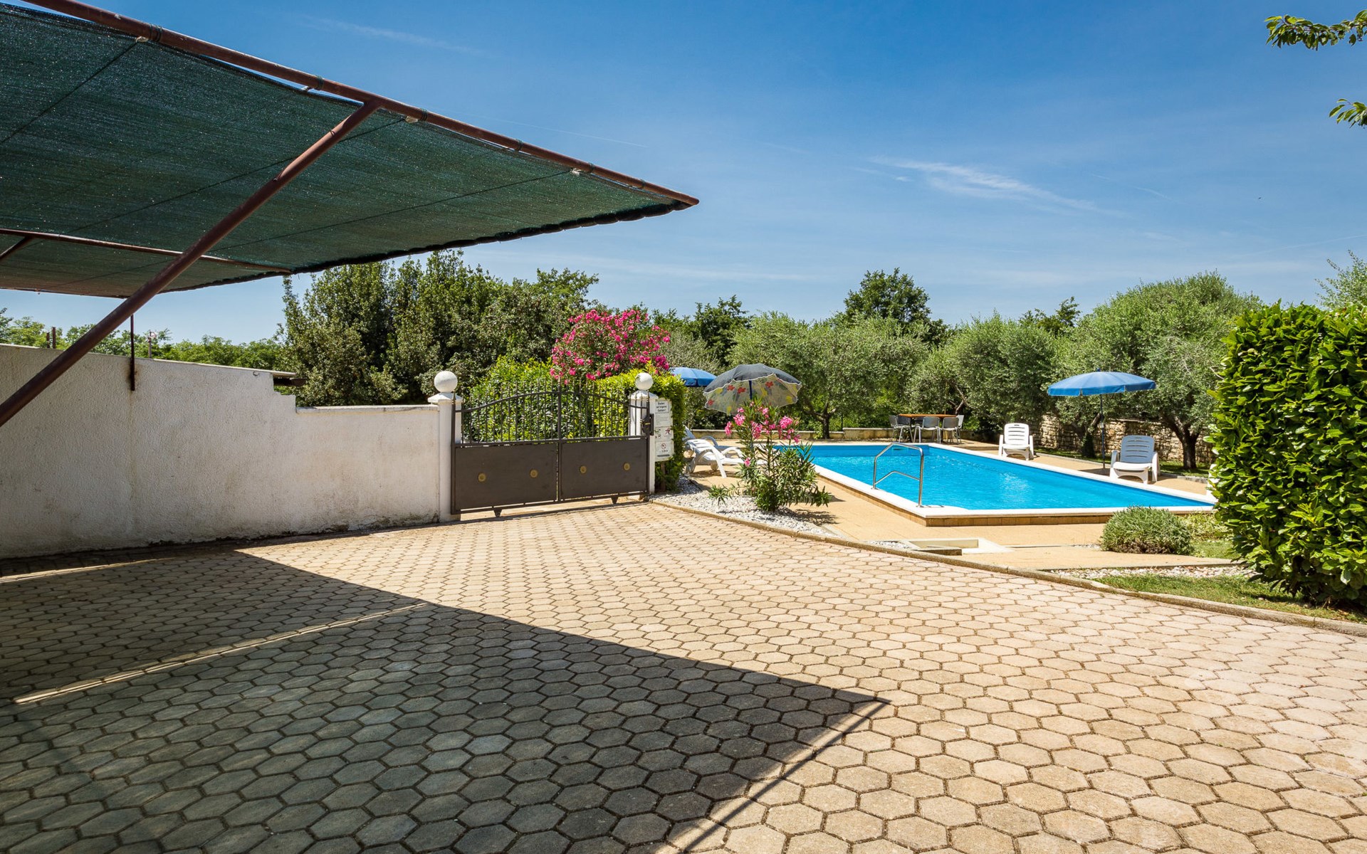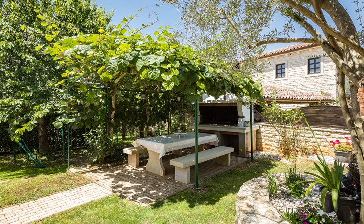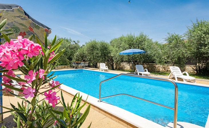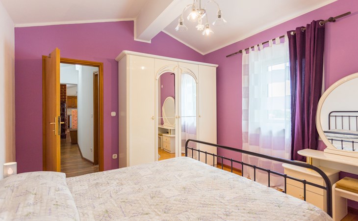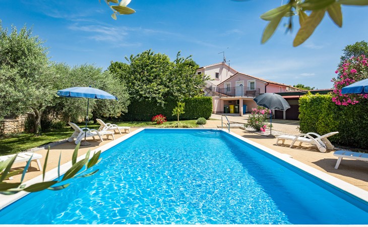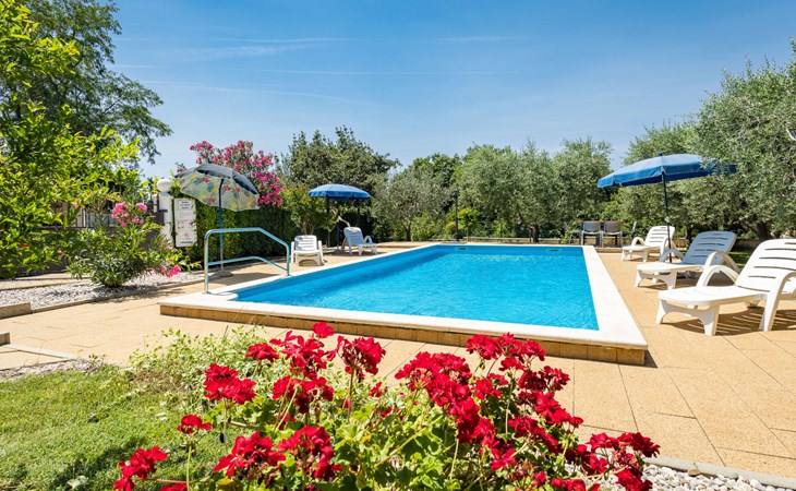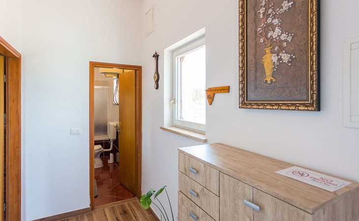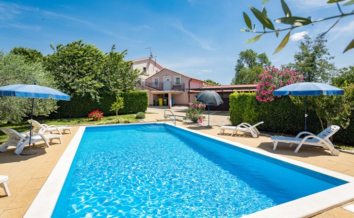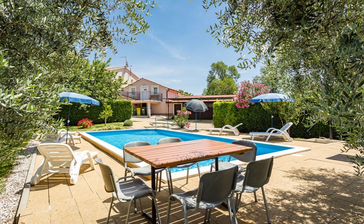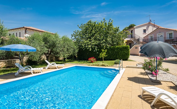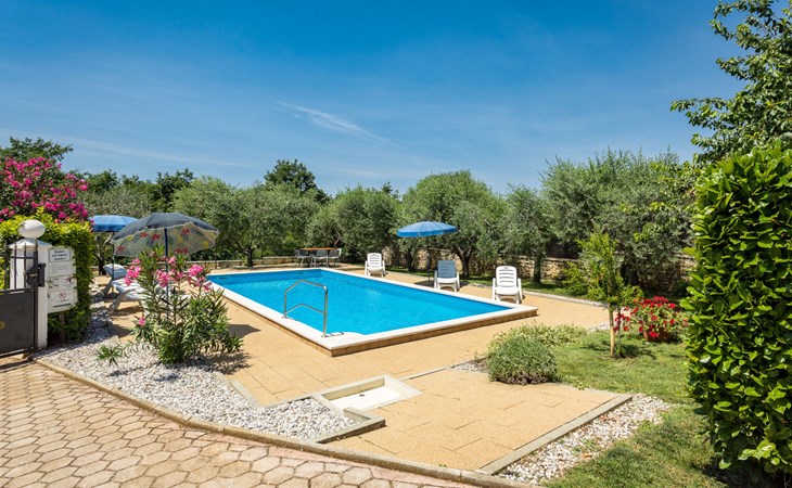 Einfamilienhaus "Sandra". Im Weiler Medvidići, 2.5 km vom Zentrum von Sveti Lovreč, 11 km vom Zentrum von Poreč, 10 km vom Zentrum von Vrsar, 10 km vom Meer, im Grünen. Zur Alleinbenutzung: Grundstück 600 m2, Bäumen, Schwimmbad eckig (45 m2, 135 cm tief, saisonale Verfügbarkeit: 01.Mai. - 01.Okt.) mit Innentreppe. Terrasse, Gartenmöbel, Grill (Schaukel), Poolpflege durch den Besitzer/Gärtner. Im Hause: Internetzugang, Waschmaschine. Parkplatz (für 3 Autos) auf dem Grundstück. Einkaufsgeschäft 2.5 km, Bushaltestelle 13 km, Bahnstation 19 km, Kieselstrand 10 km. Erdgeschoss ist geschlossen und nicht bewohnt.