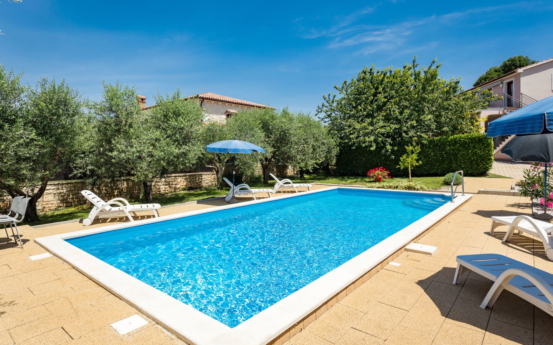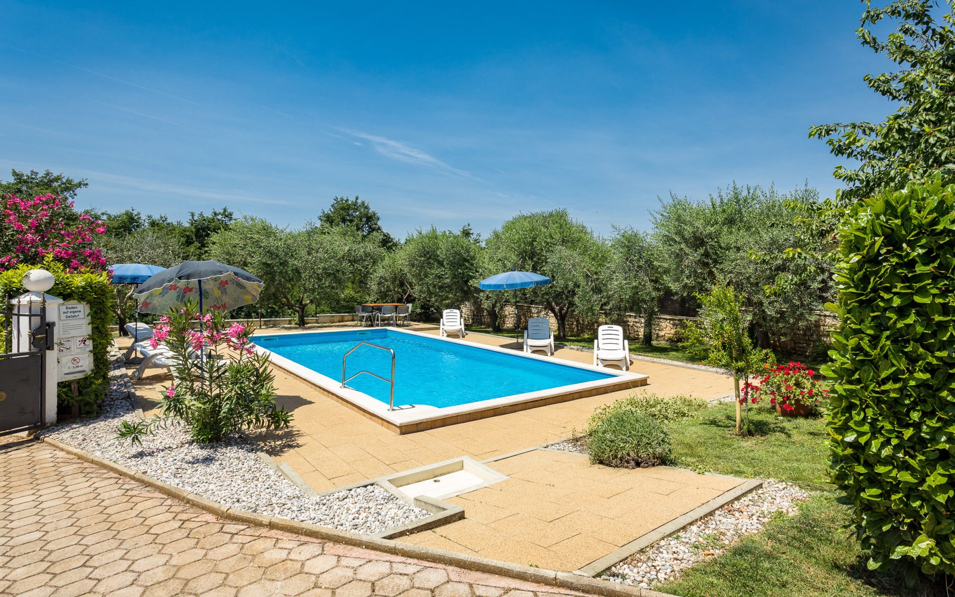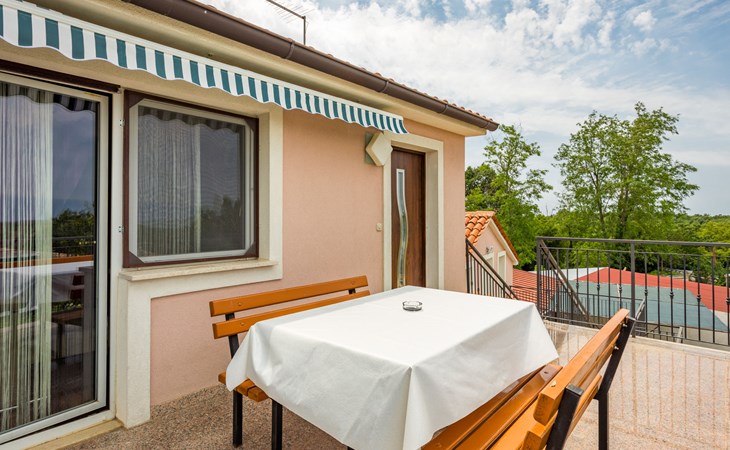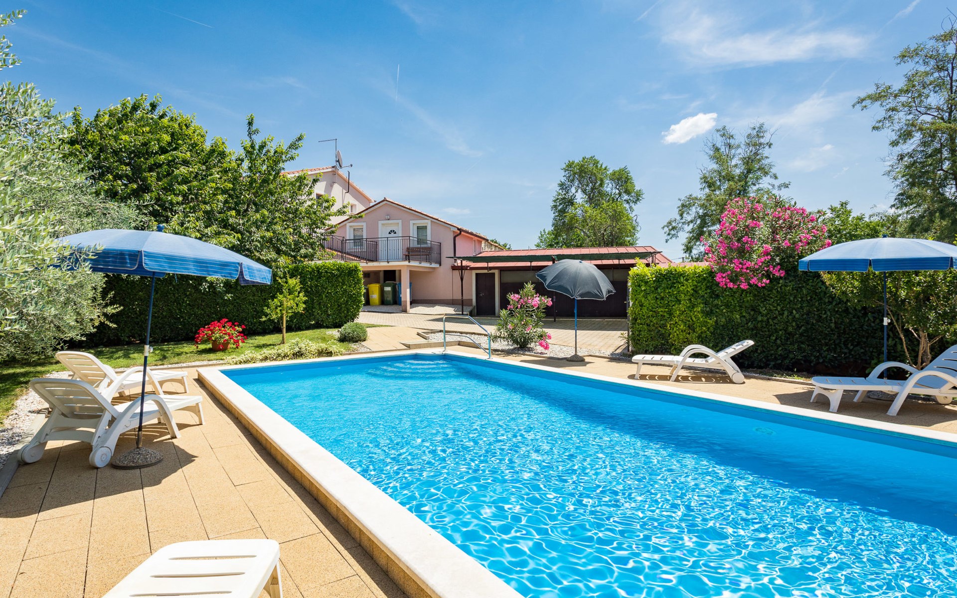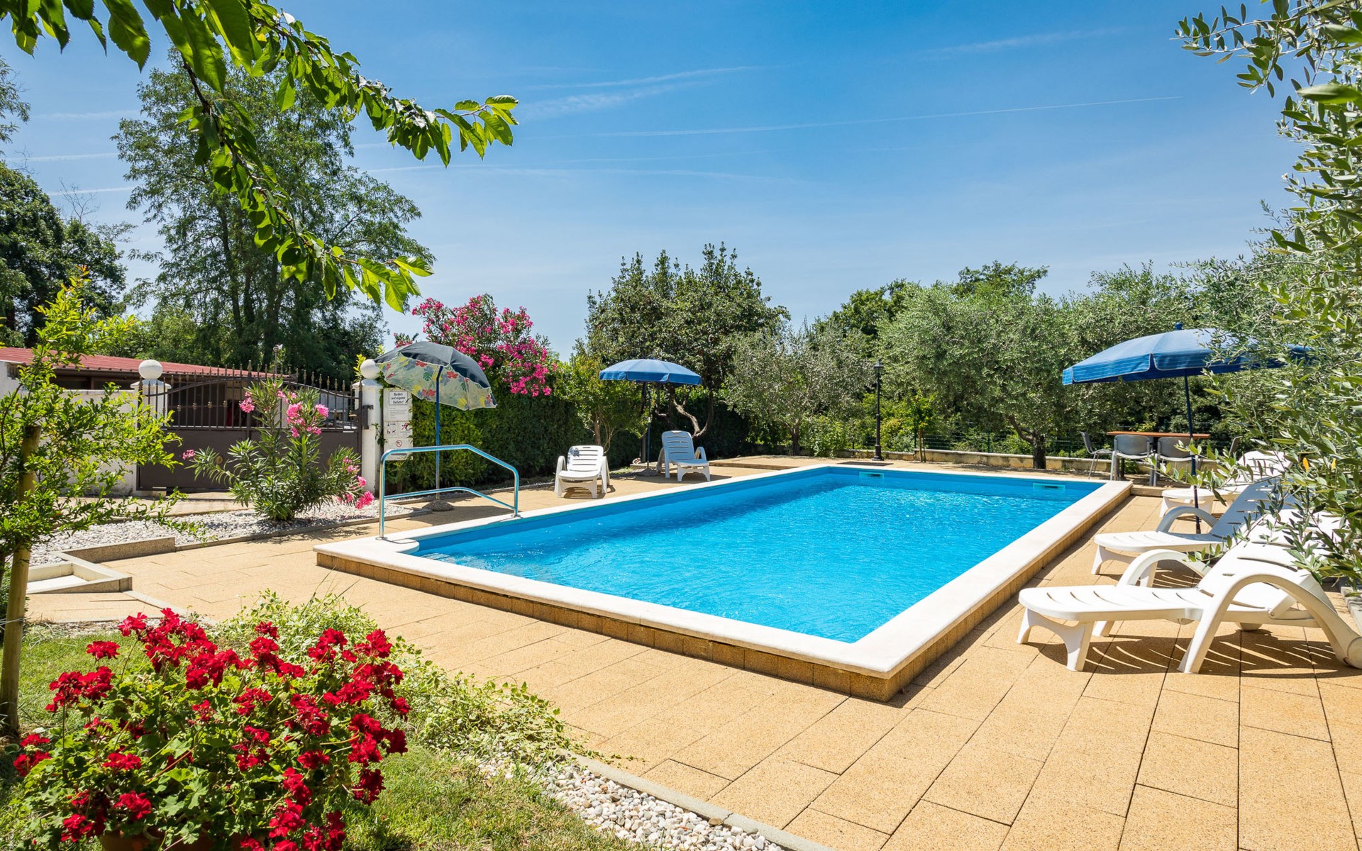 Einfamilienhaus "Sandra". Im Weiler Medvidići, 2.5 km vom Zentrum von Sveti Lovreč, 11 km vom Zentrum von Poreč, 10 km vom Zentrum von Vrsar, 10 km vom Meer, im Grünen. Zur Alleinbenutzung: Grundstück 600 m2, Bäumen, Schwimmbad eckig (45 m2, 135 cm tief, saisonale Verfügbarkeit: 01.Mai. - 01.Okt.) mit Innentreppe. Terrasse, Gartenmöbel, Grill (Schaukel), Poolpflege durch den Besitzer/Gärtner. Im Hause: Internetzugang, Waschmaschine. Parkplatz (für 3 Autos) auf dem Grundstück. Einkaufsgeschäft 2.5 km, Bushaltestelle 13 km, Bahnstation 19 km, Kieselstrand 10 km. Erdgeschoss ist geschlossen und nicht bewohnt.