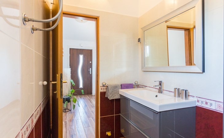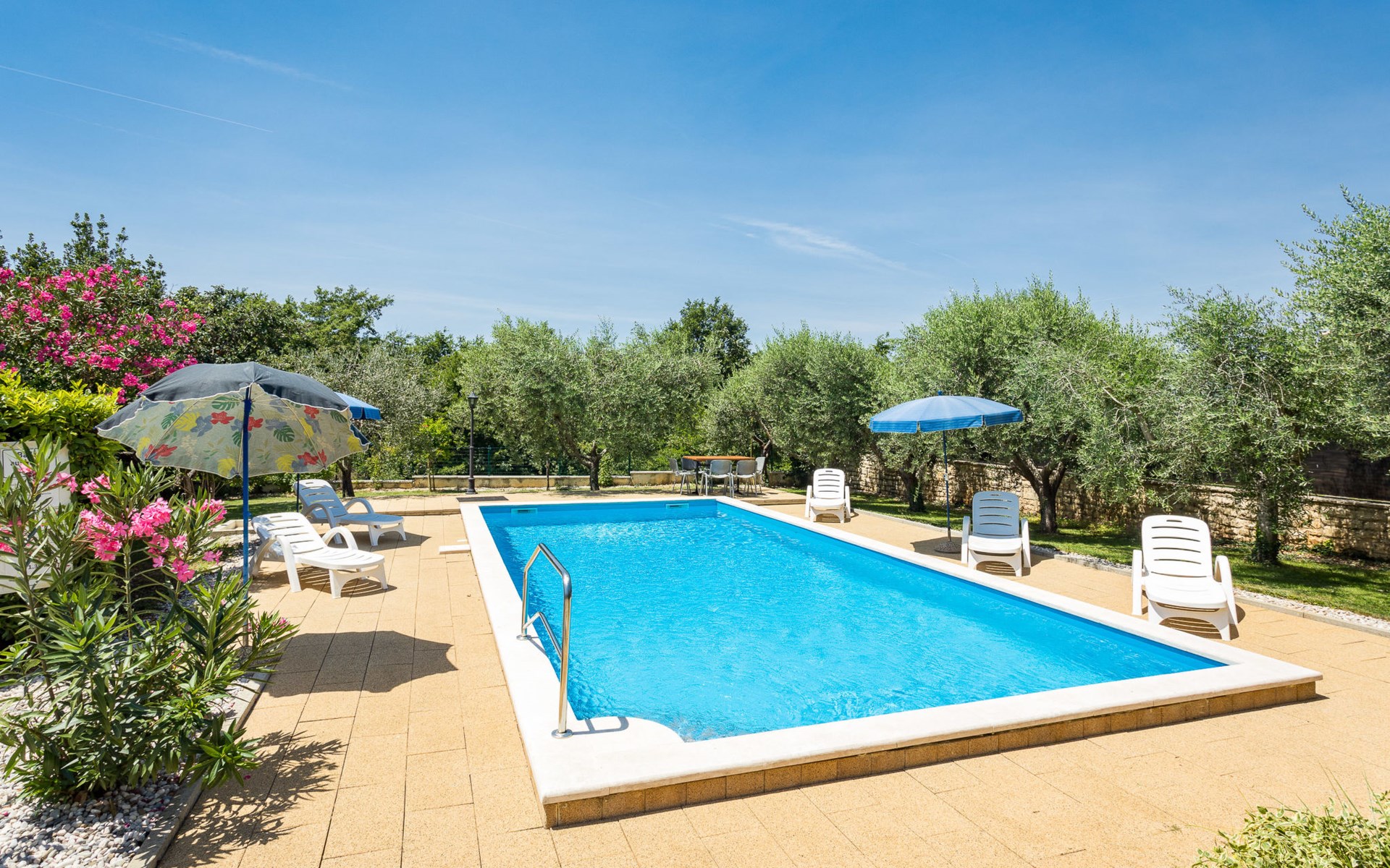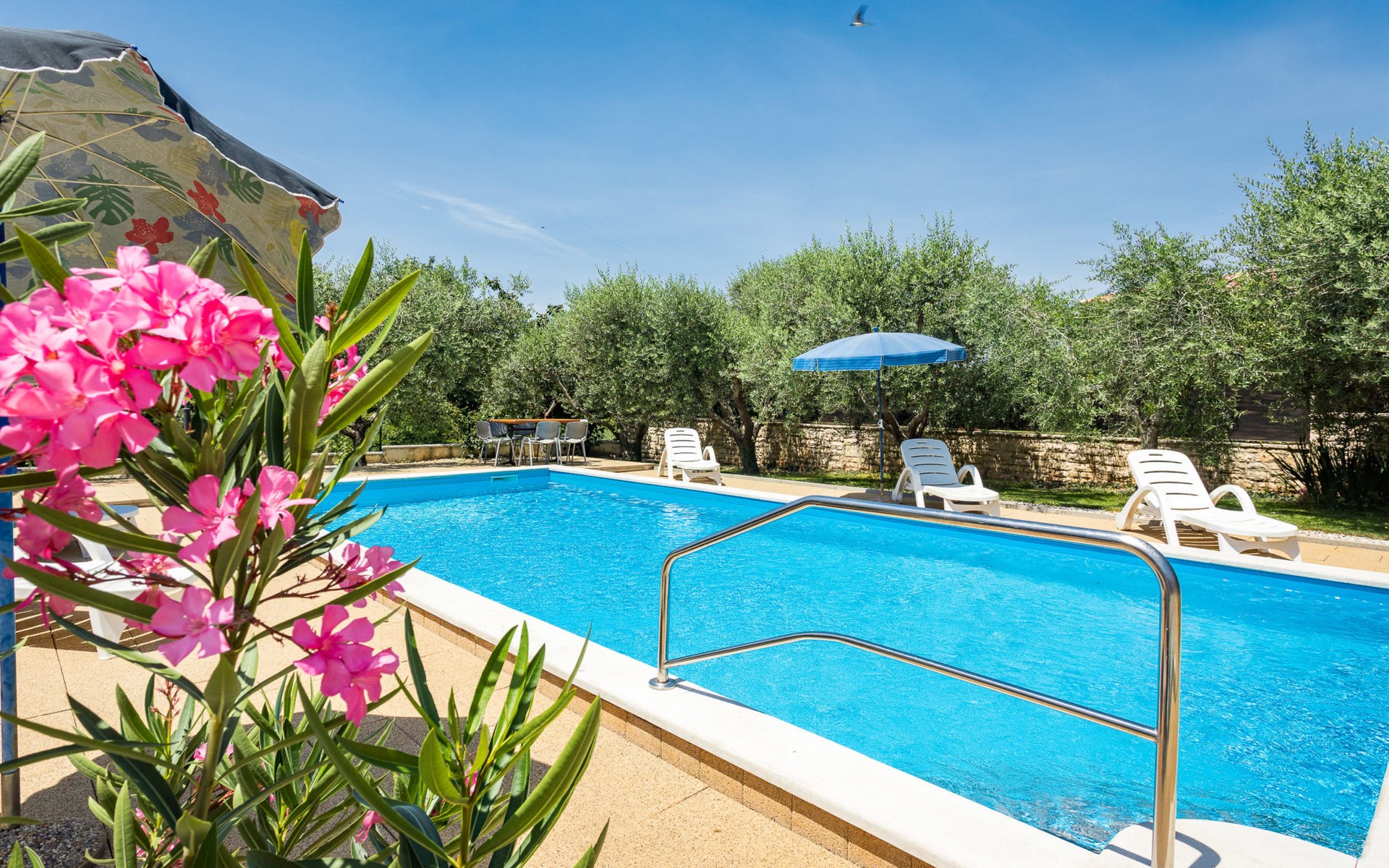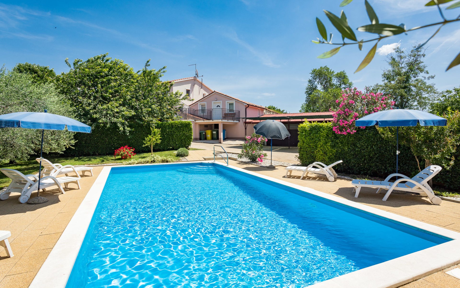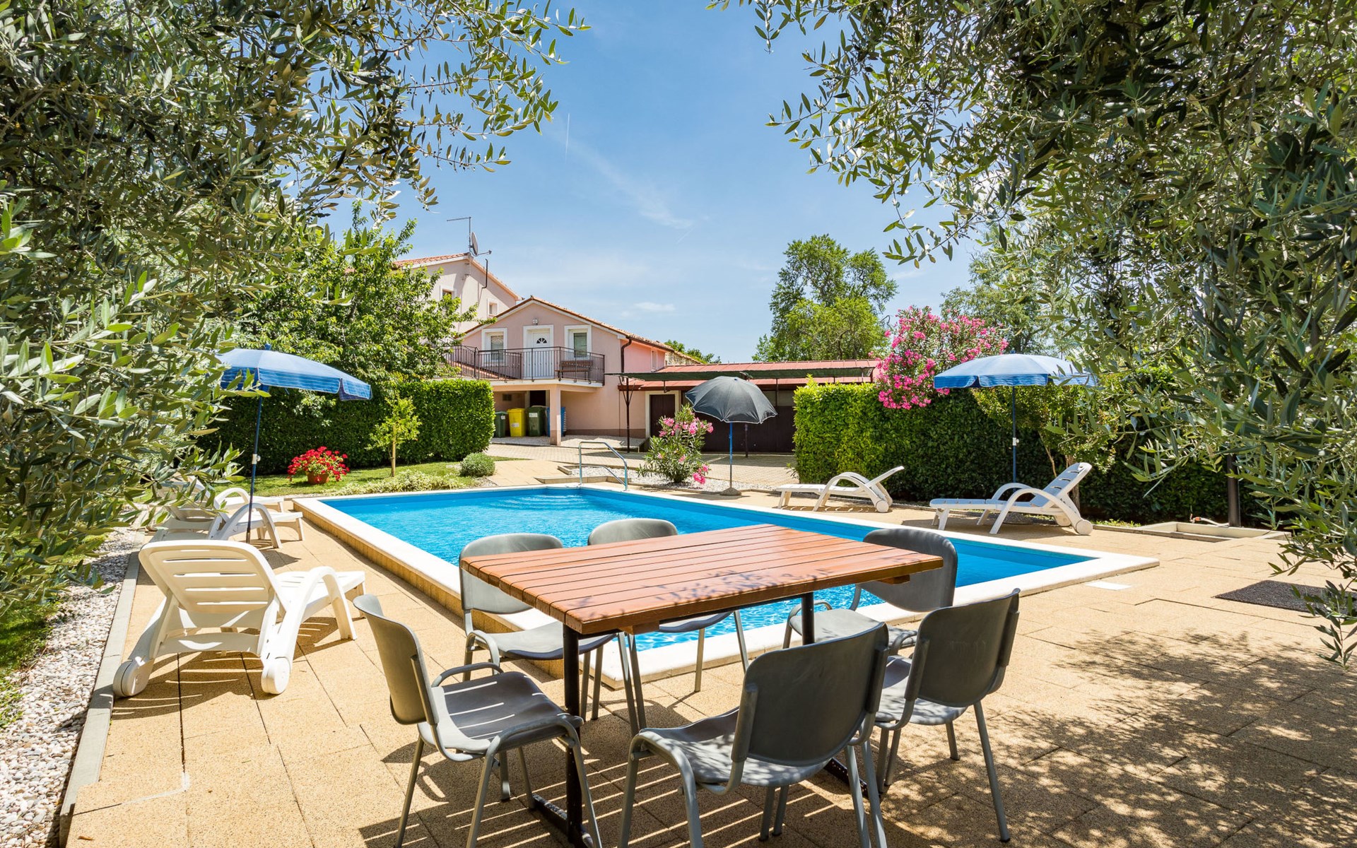 Einfamilienhaus "Sandra". Im Weiler Medvidići, 2.5 km vom Zentrum von Sveti Lovreč, 11 km vom Zentrum von Poreč, 10 km vom Zentrum von Vrsar, 10 km vom Meer, im Grünen. Zur Alleinbenutzung: Grundstück 600 m2, Bäumen, Schwimmbad eckig (45 m2, 135 cm tief, saisonale Verfügbarkeit: 01.Mai. - 01.Okt.) mit Innentreppe. Terrasse, Gartenmöbel, Grill (Schaukel), Poolpflege durch den Besitzer/Gärtner. Im Hause: Internetzugang, Waschmaschine. Parkplatz (für 3 Autos) auf dem Grundstück. Einkaufsgeschäft 2.5 km, Bushaltestelle 13 km, Bahnstation 19 km, Kieselstrand 10 km. Erdgeschoss ist geschlossen und nicht bewohnt.