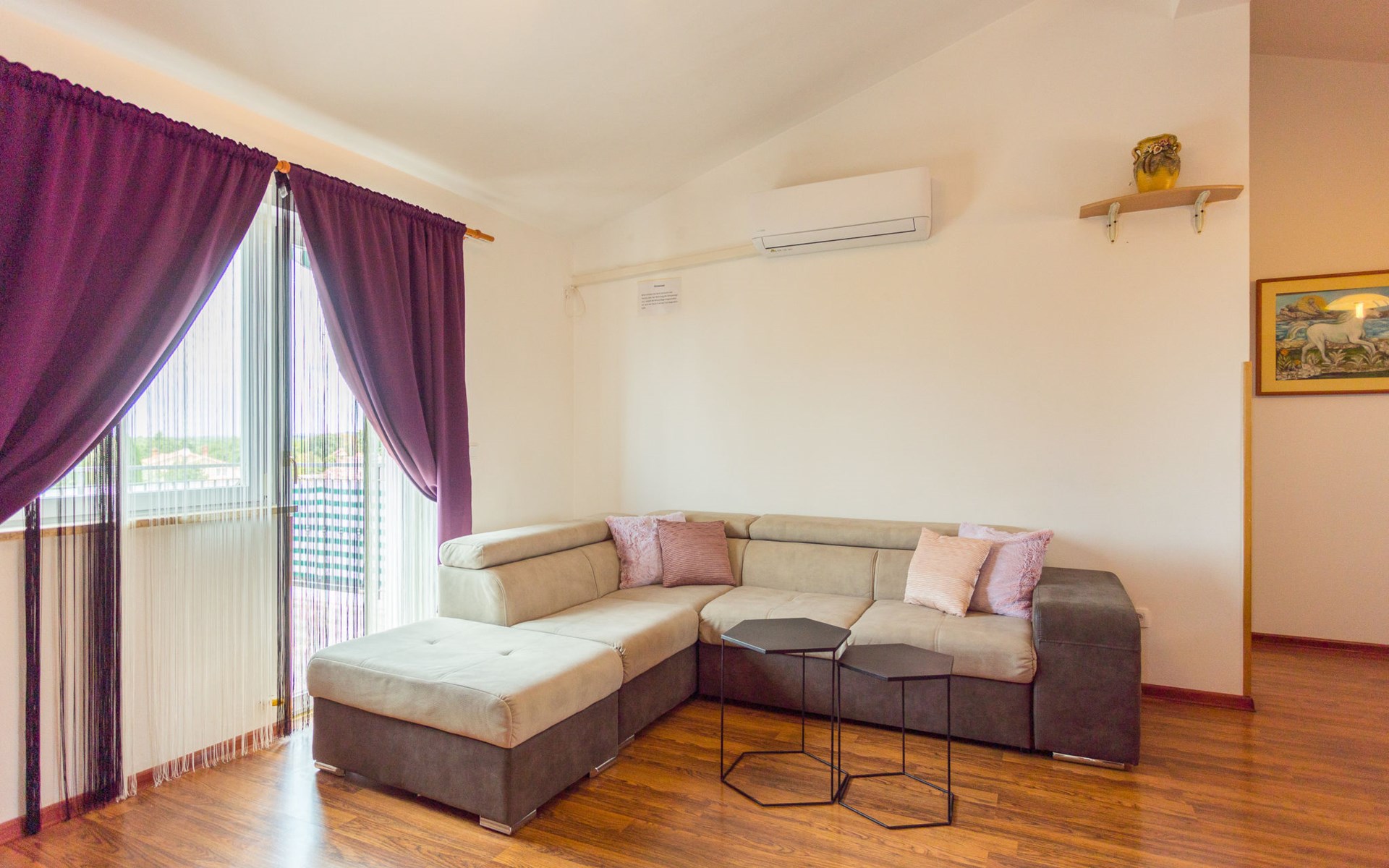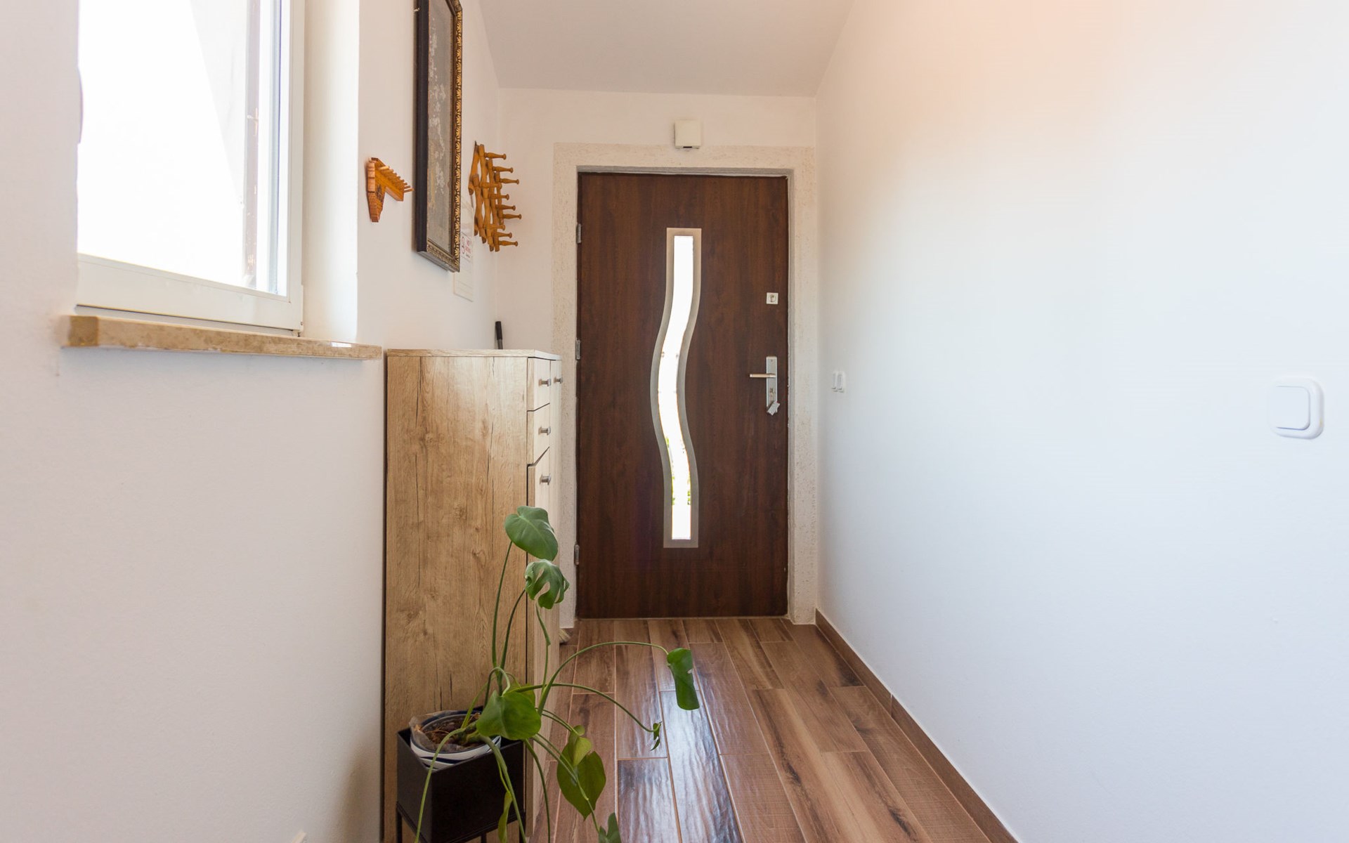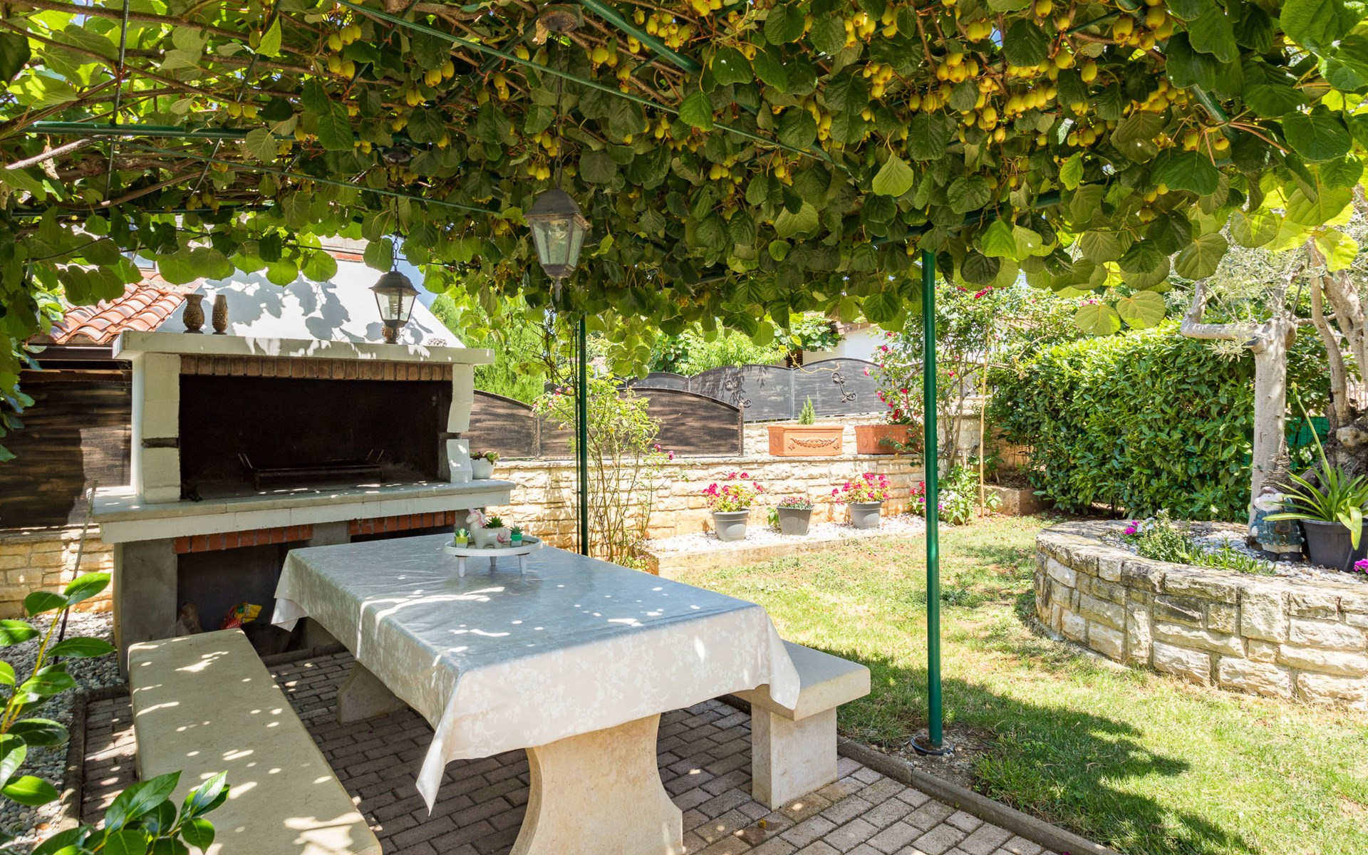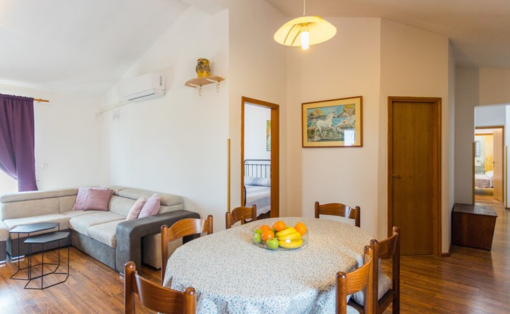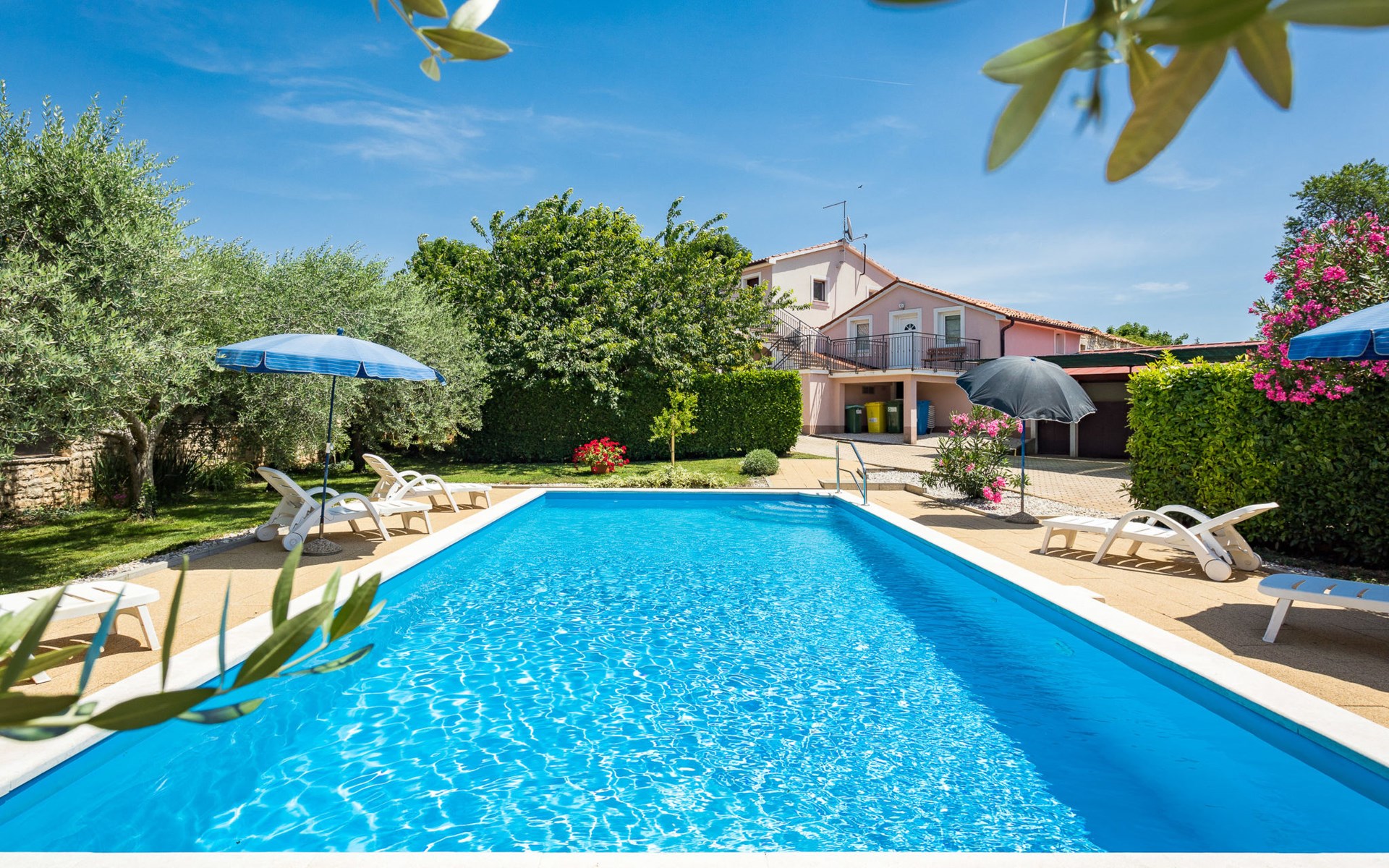 Einfamilienhaus "Sandra". Im Weiler Medvidići, 2.5 km vom Zentrum von Sveti Lovreč, 11 km vom Zentrum von Poreč, 10 km vom Zentrum von Vrsar, 10 km vom Meer, im Grünen. Zur Alleinbenutzung: Grundstück 600 m2, Bäumen, Schwimmbad eckig (45 m2, 135 cm tief, saisonale Verfügbarkeit: 01.Mai. - 01.Okt.) mit Innentreppe. Terrasse, Gartenmöbel, Grill (Schaukel), Poolpflege durch den Besitzer/Gärtner. Im Hause: Internetzugang, Waschmaschine. Parkplatz (für 3 Autos) auf dem Grundstück. Einkaufsgeschäft 2.5 km, Bushaltestelle 13 km, Bahnstation 19 km, Kieselstrand 10 km. Erdgeschoss ist geschlossen und nicht bewohnt.