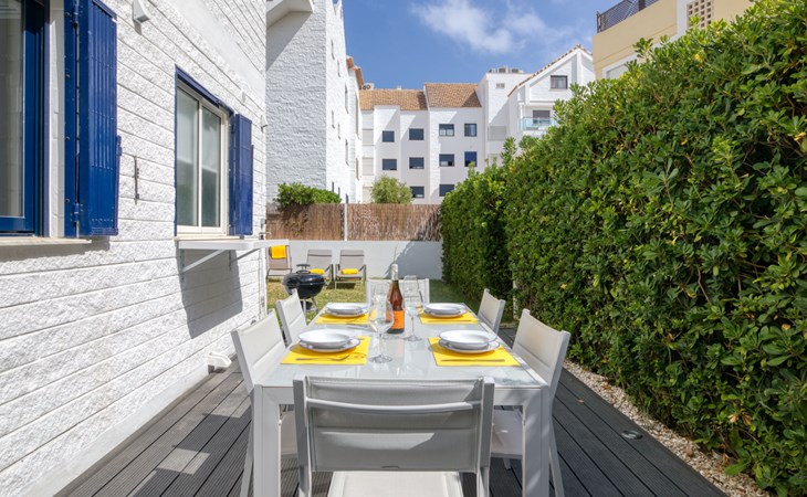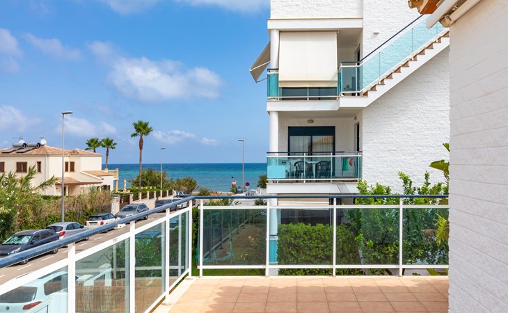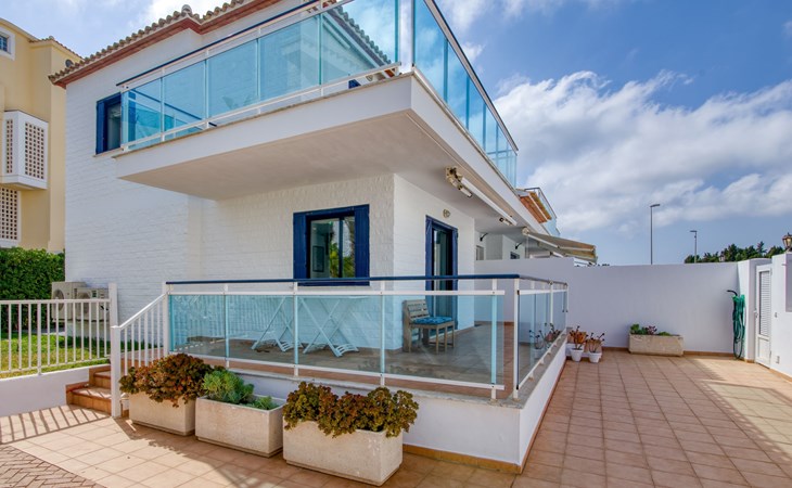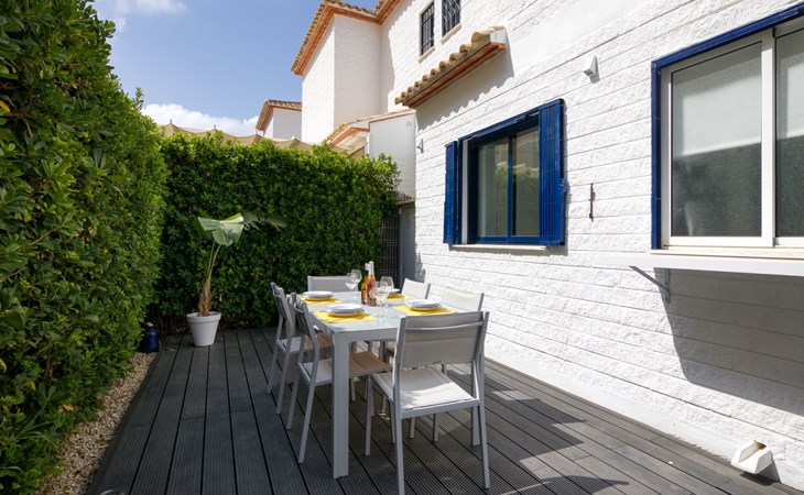 Grosses, sehr schönes, sehr komfortables Doppelhaus "Jardines de Denia V", auf 2 Stockwerken. Les Marines, 7 km vom Zentrum von Denia, ruhige, sonnige Lage, 50 m vom Meer, vom Strand, direkter Zugang zum Strand. Zur Mitbenutzung: Grundstück (eingezäunt) mit Rasen und Bäumen, Schwimmbad (15 x 7 m, 110 - 210 cm tief, saisonale Verfügbarkeit: 01.Jan. - 31.Dez.) mit Innentreppe. Kinderbecken, Aussendusche. Zur Alleinbenutzung: mit Rasen und Bäumen. Gartenmöbel, Grill, Parkplatz auf dem Grundstück. Supermarkt 1.2 km, Restaurant, Café 450 m, Sandstrand "Platja de l'Estanyó" 50 m. Sporthafen 7.5 km, Jacht-Hafen 7.5 km, Surfschule 3 km, Segelschule 3 km, Tennis 6 km. Der Besitzer akzeptiert keine Jugendgruppen.