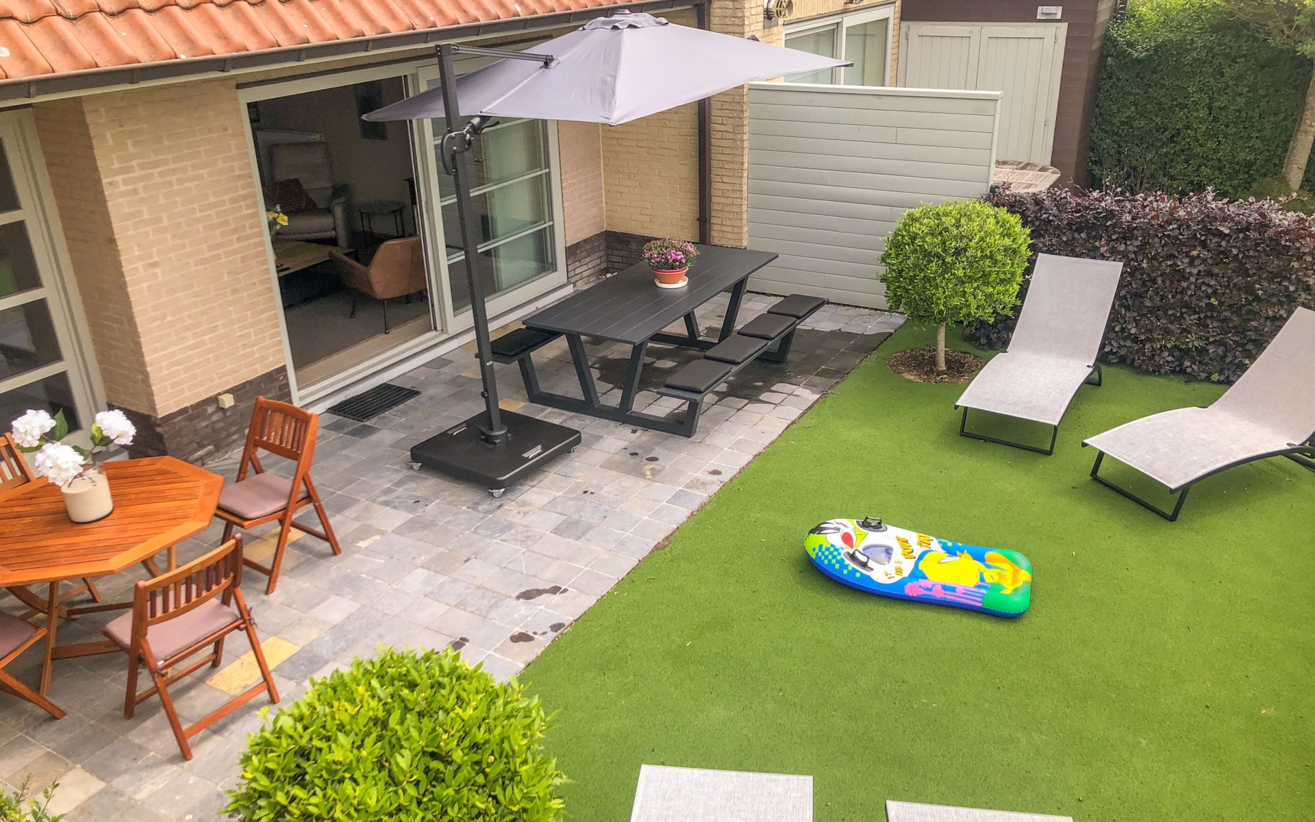De Haan aan Zee: Residenz "Boonenhove". Am Ortsrand, 900 m vom Zentrum von De Haan, alleinstehende, ruhige Lage, verkehrsberuhigte Zone, 1.5 km vom Meer, 1.5 km vom Strand. Im Hause: Zentralheizung. Supermarkt 300 m, Bar 1 km, Bäckerei 1 km, Fahrradverleih 1.5 km, Straßenbahn "De Haan Waterkasteellaan" 850 m, Bushaltestelle "De Haan aan Zee" 1 km, Bahnstation "Oostende" 13 m, Sandstrand "Strand De Haan" 1.5 km, Park "La Potinière" 1.5 km. Golfplatz (18 Loch) 2.5 km, Surfschule 2 km, Segelschule 2 km, Tennis 1.5 km, Tennishalle 3 km, Minigolf 1.5 km, Reitstall 500 m, Sportzentrum 3 km. Nahe gelegene Sehenswürdigkeiten: Brugge 18 km, Oostende 11 km, Blankenberge 10 km, Sea Life 11 km. Bitte beachten: geeignet für Familien. Der Besitzer akzeptiert keine Gruppen. Der Besitzer akzeptiert keine Jugendgruppen. Die Nachbarschaft ist sehr lärmempfindlich. Ruhe und gutes Benehmen wird erwartet.